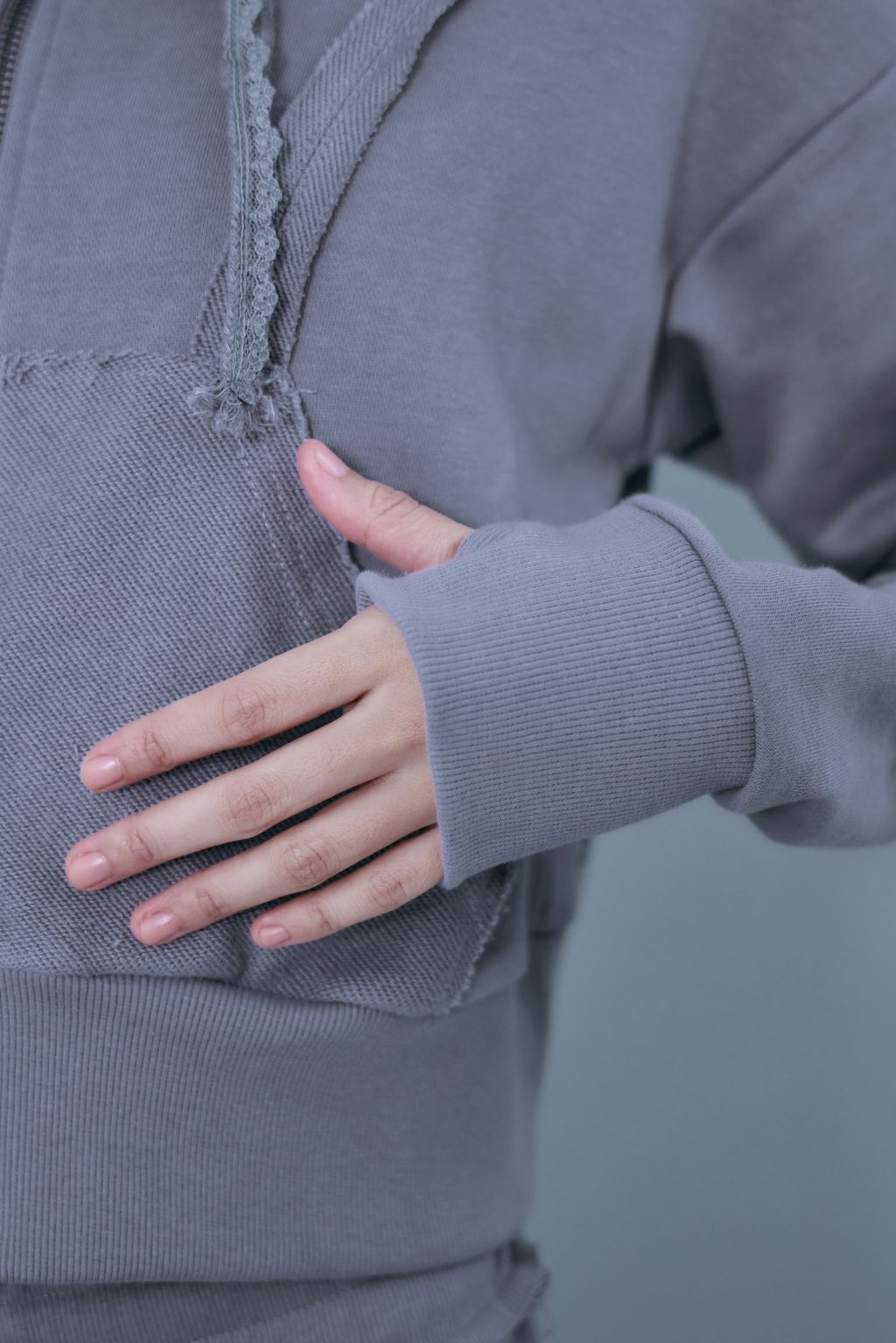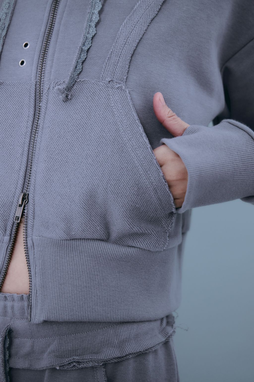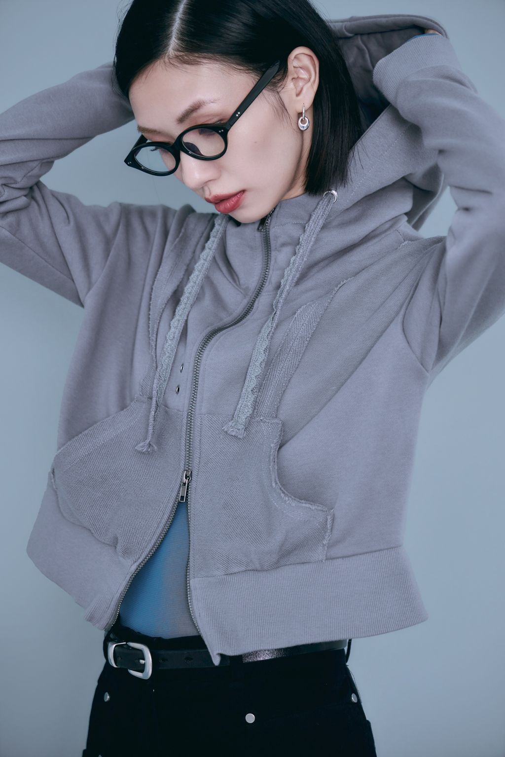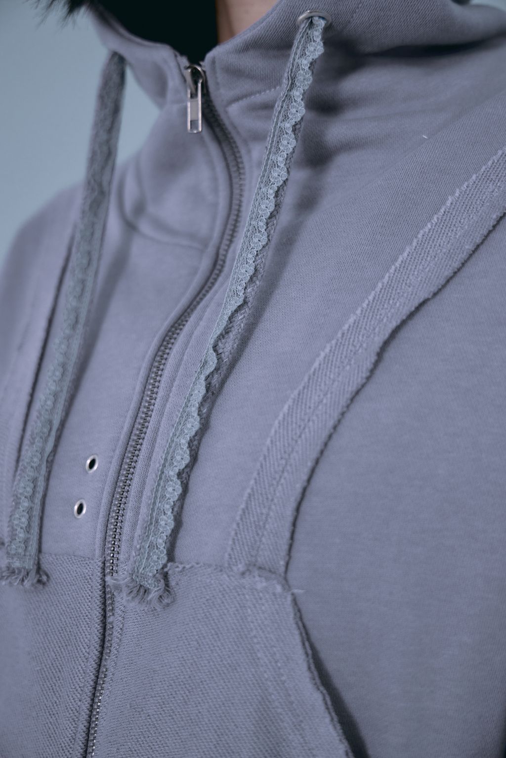 / BB.MADE / Lace Fringed Double Zipper Jacket