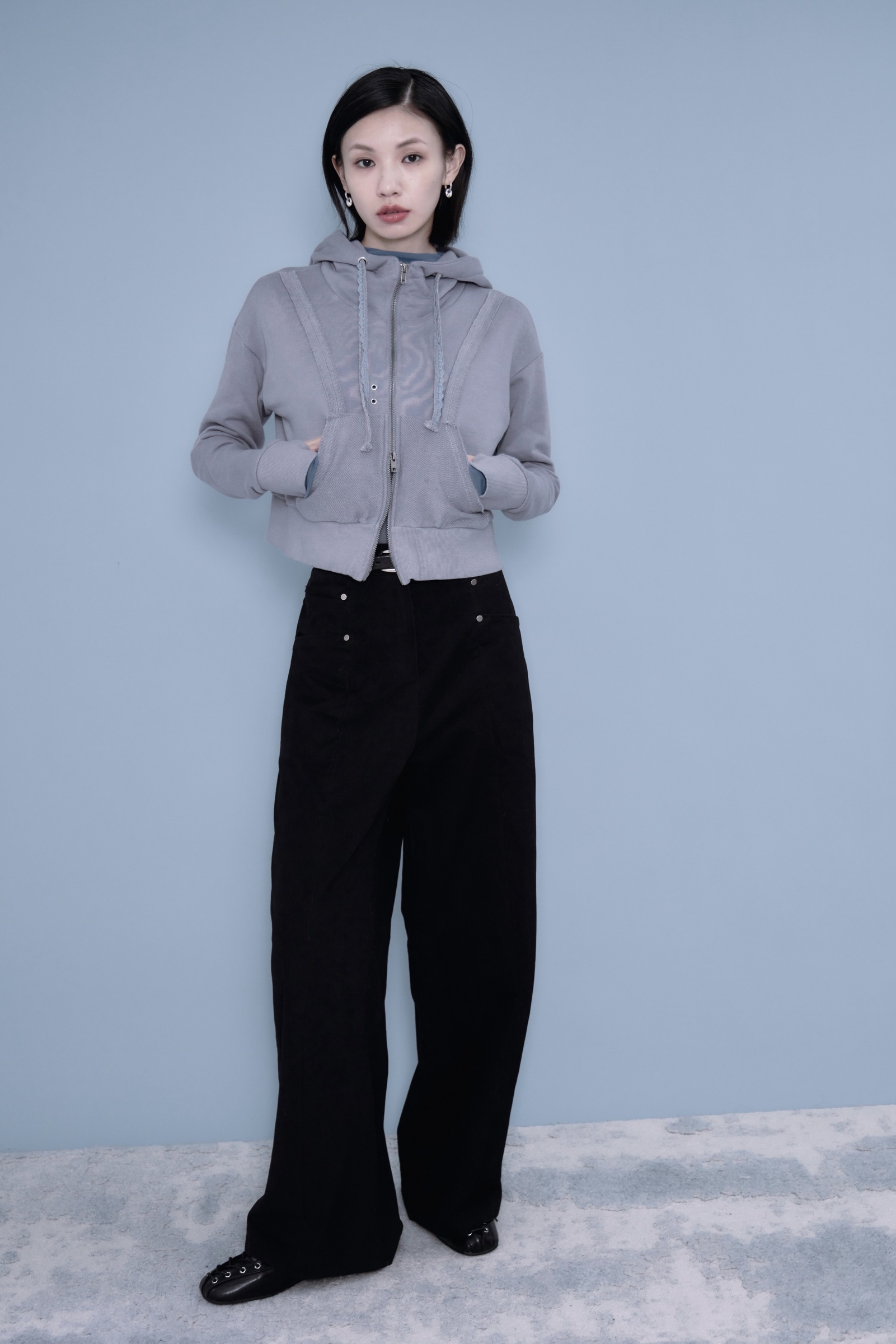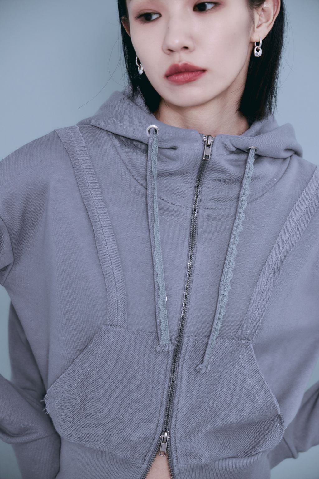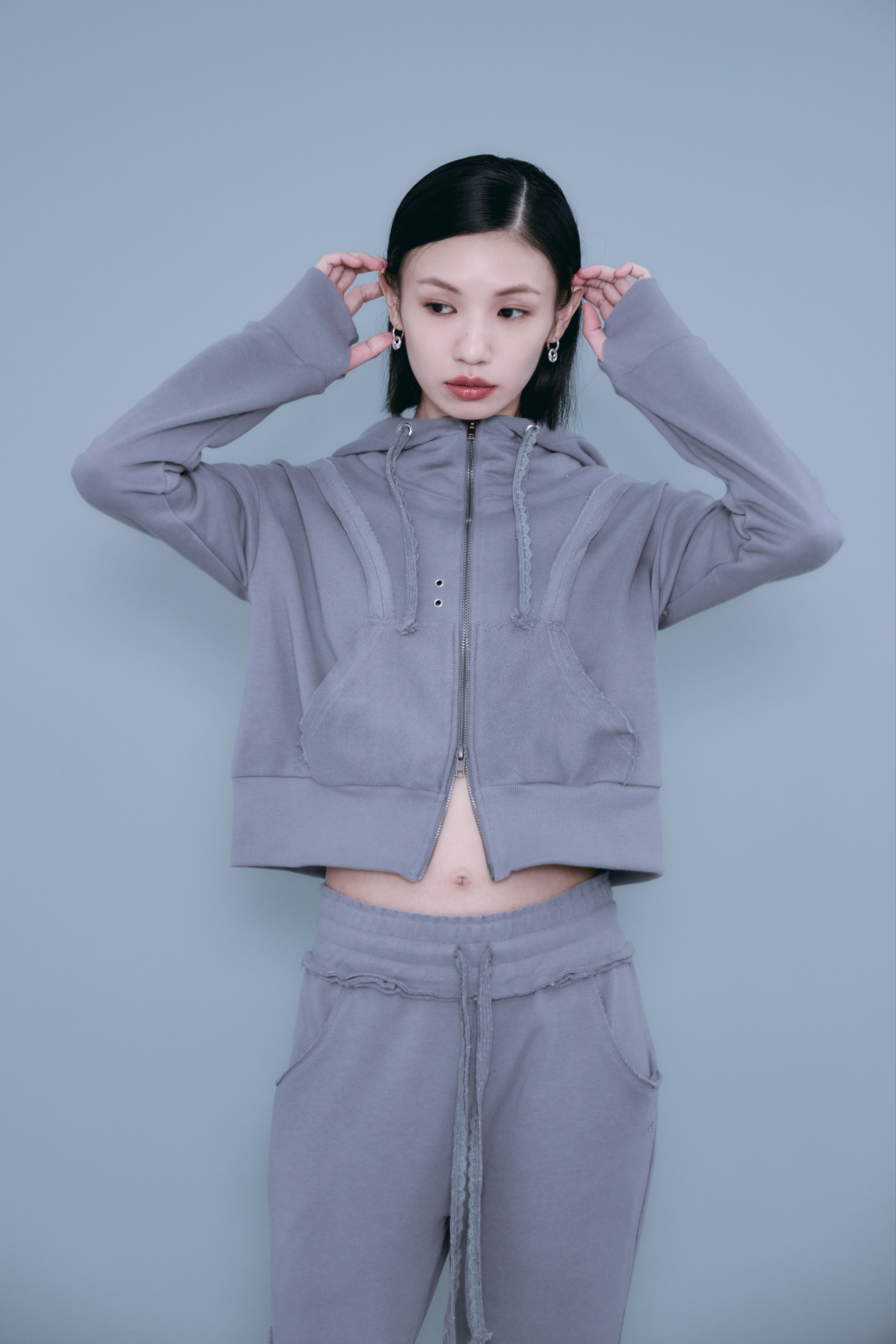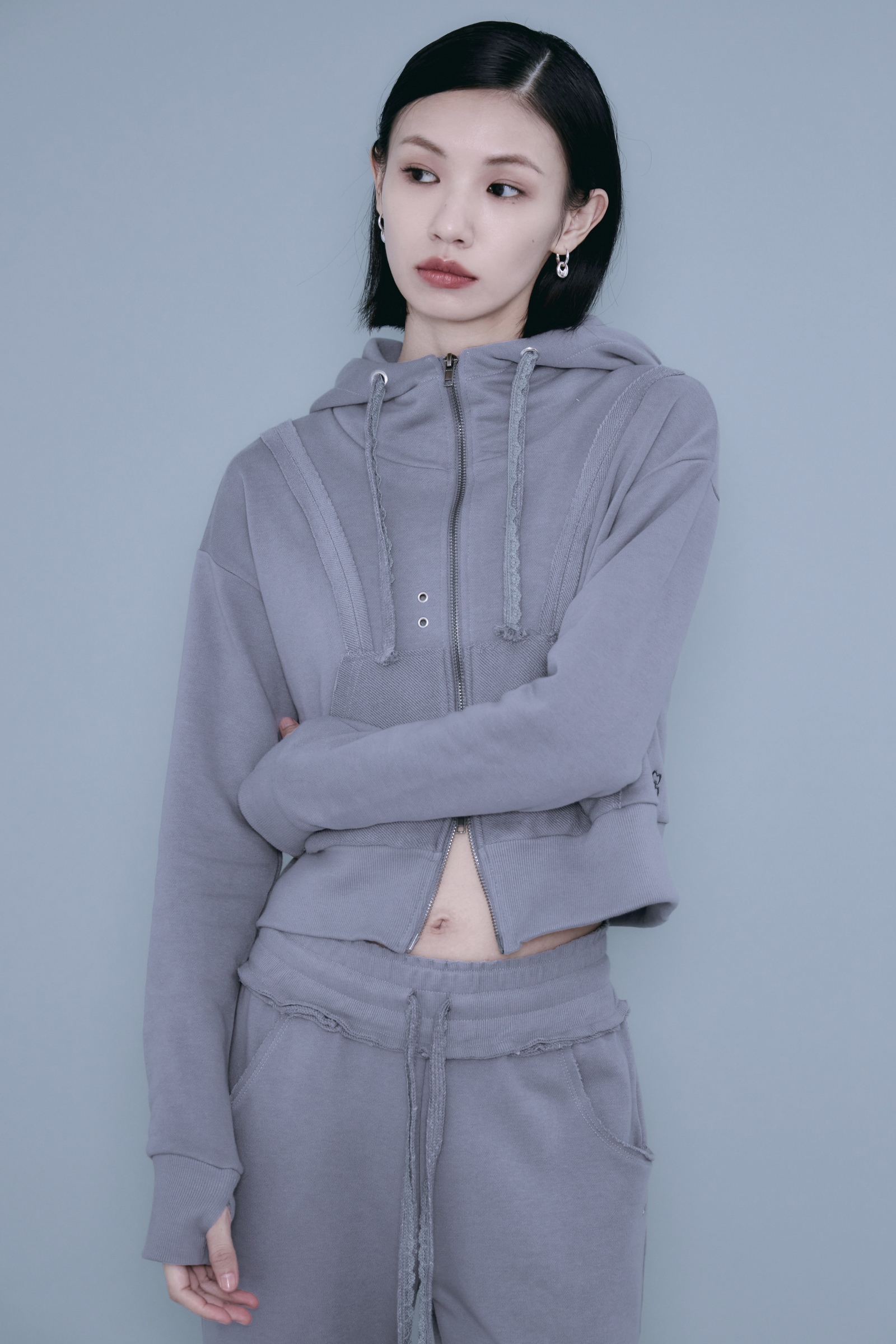 / BB.MADE / Lace Fringed Double Zipper Jacket