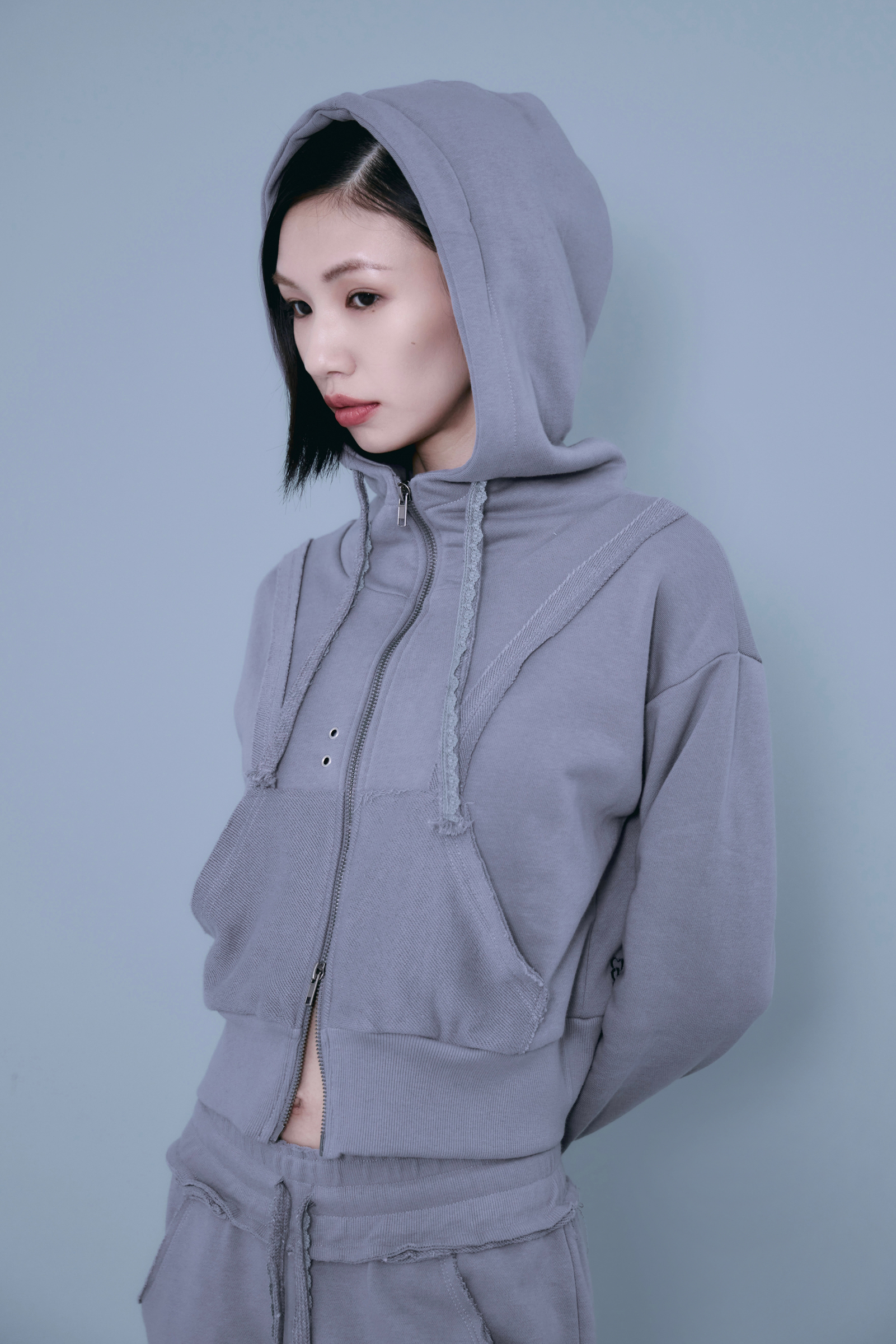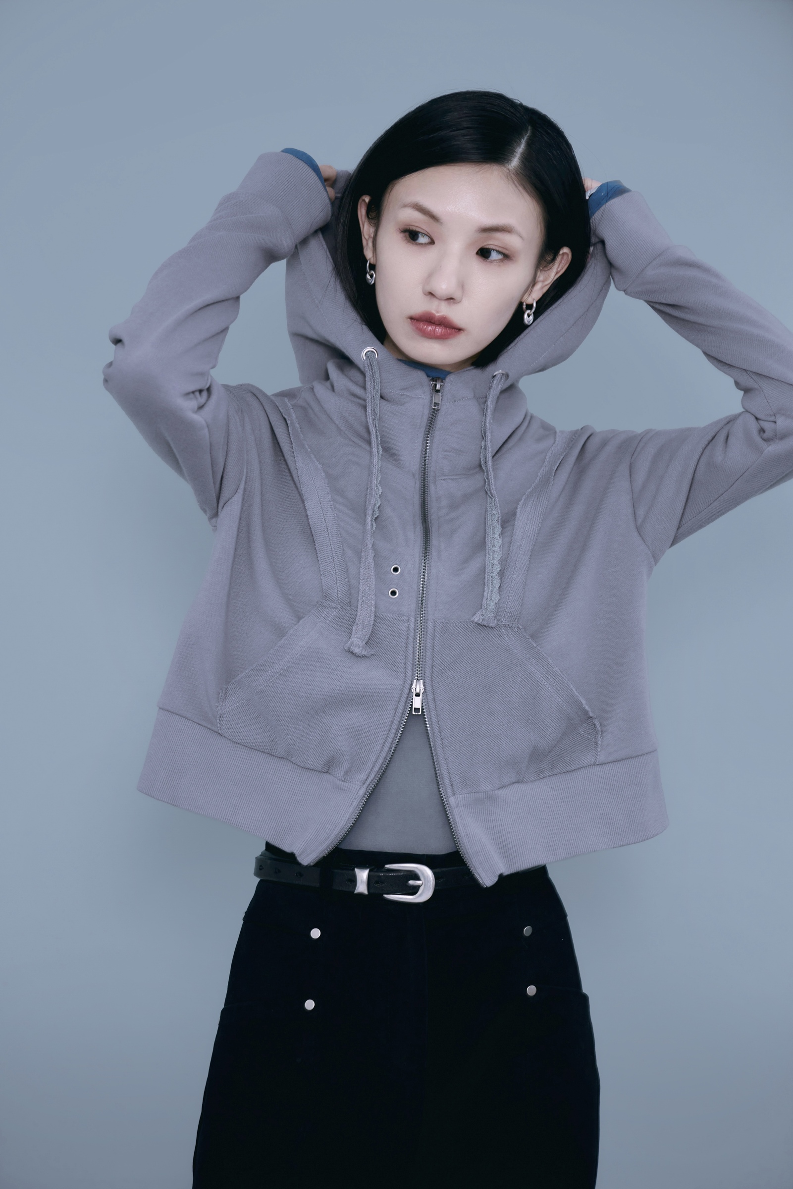 / BB.MADE / 蕾絲設計不收邊雙拉鍊外套 ( S / M )