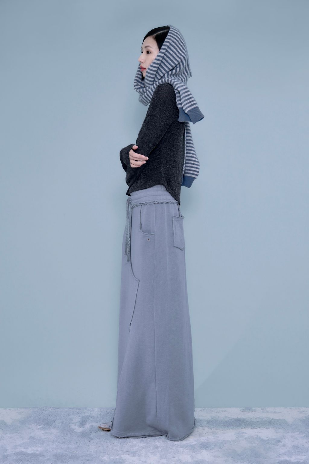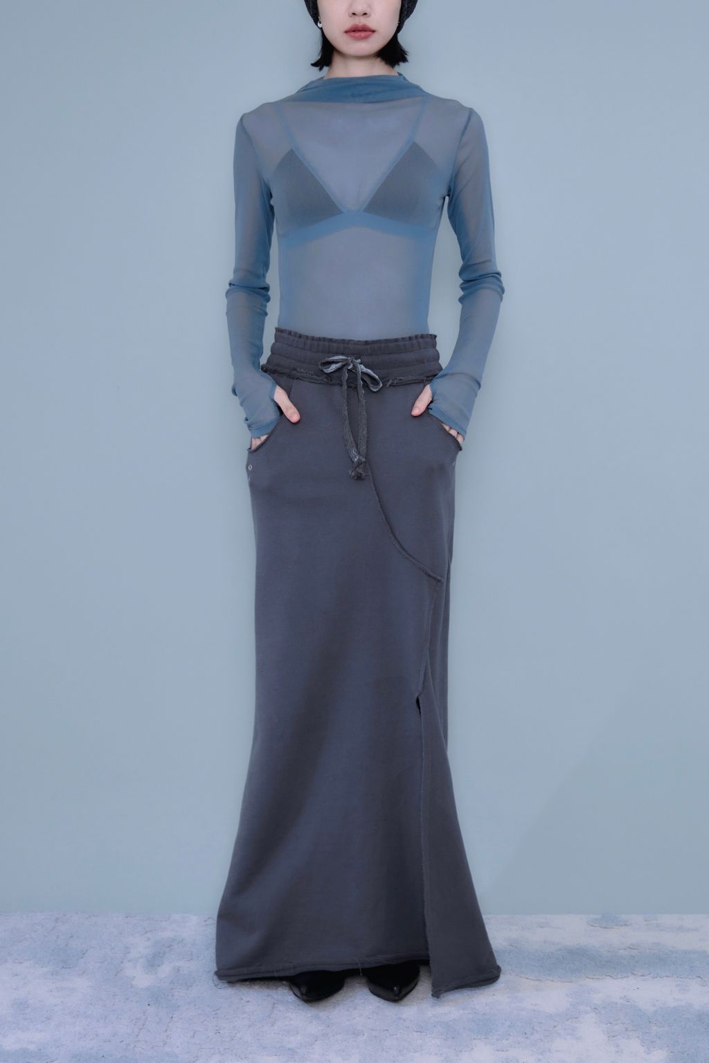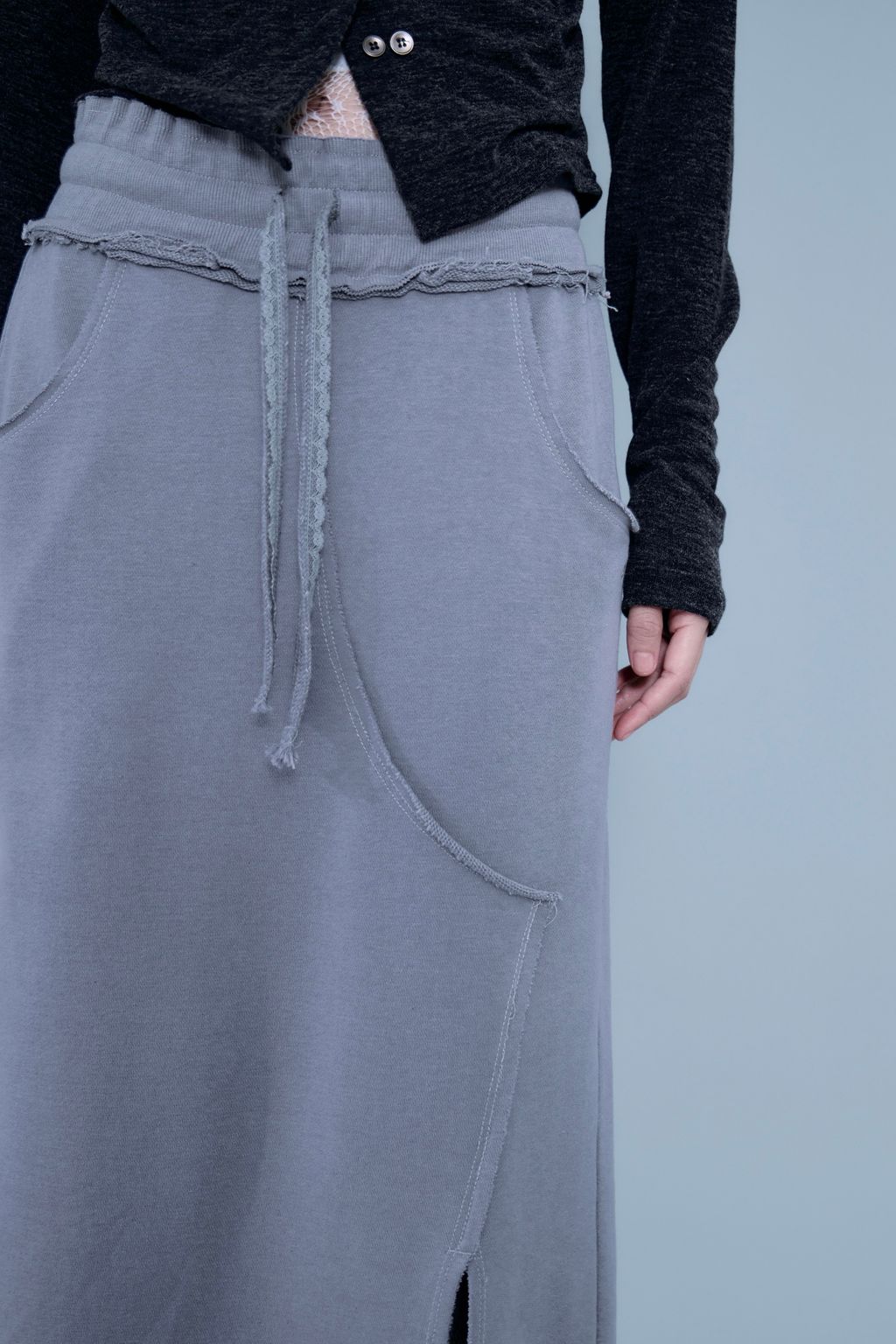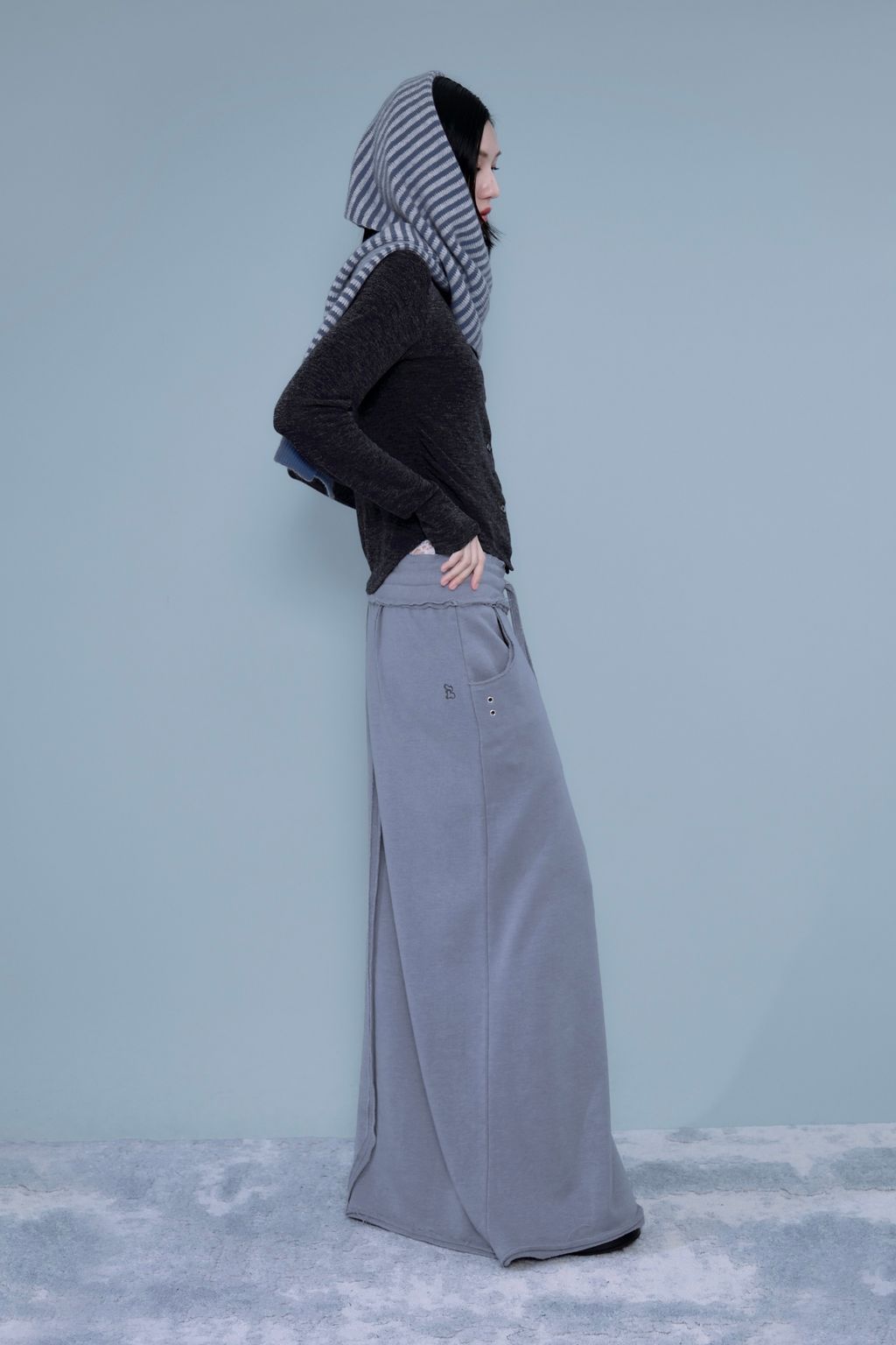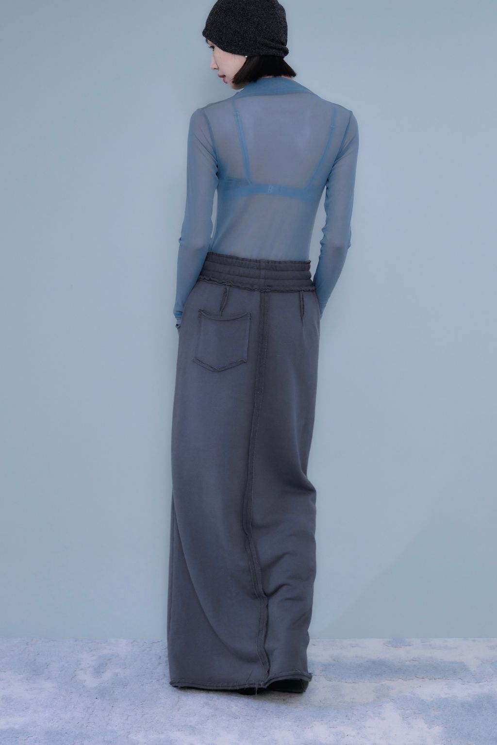 / BB.MADE / 設計不規則開衩休閒長裙 - 灰藍 / 深灰