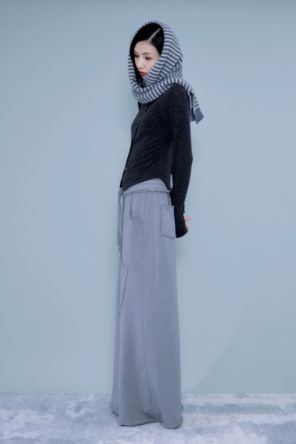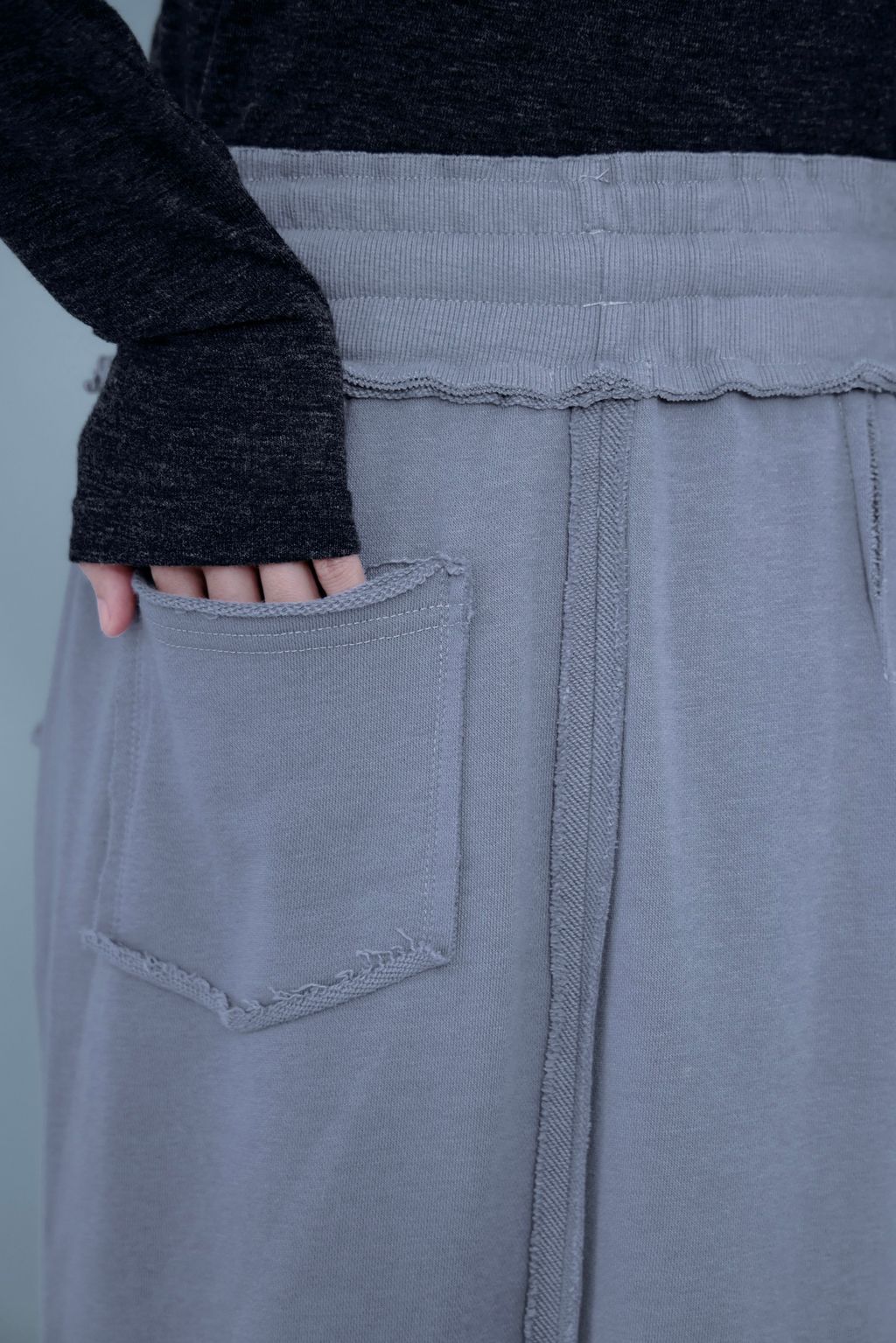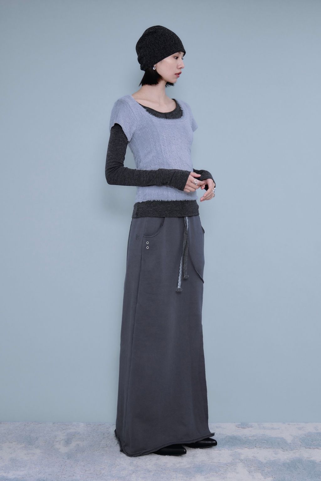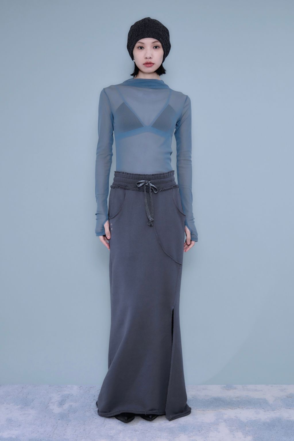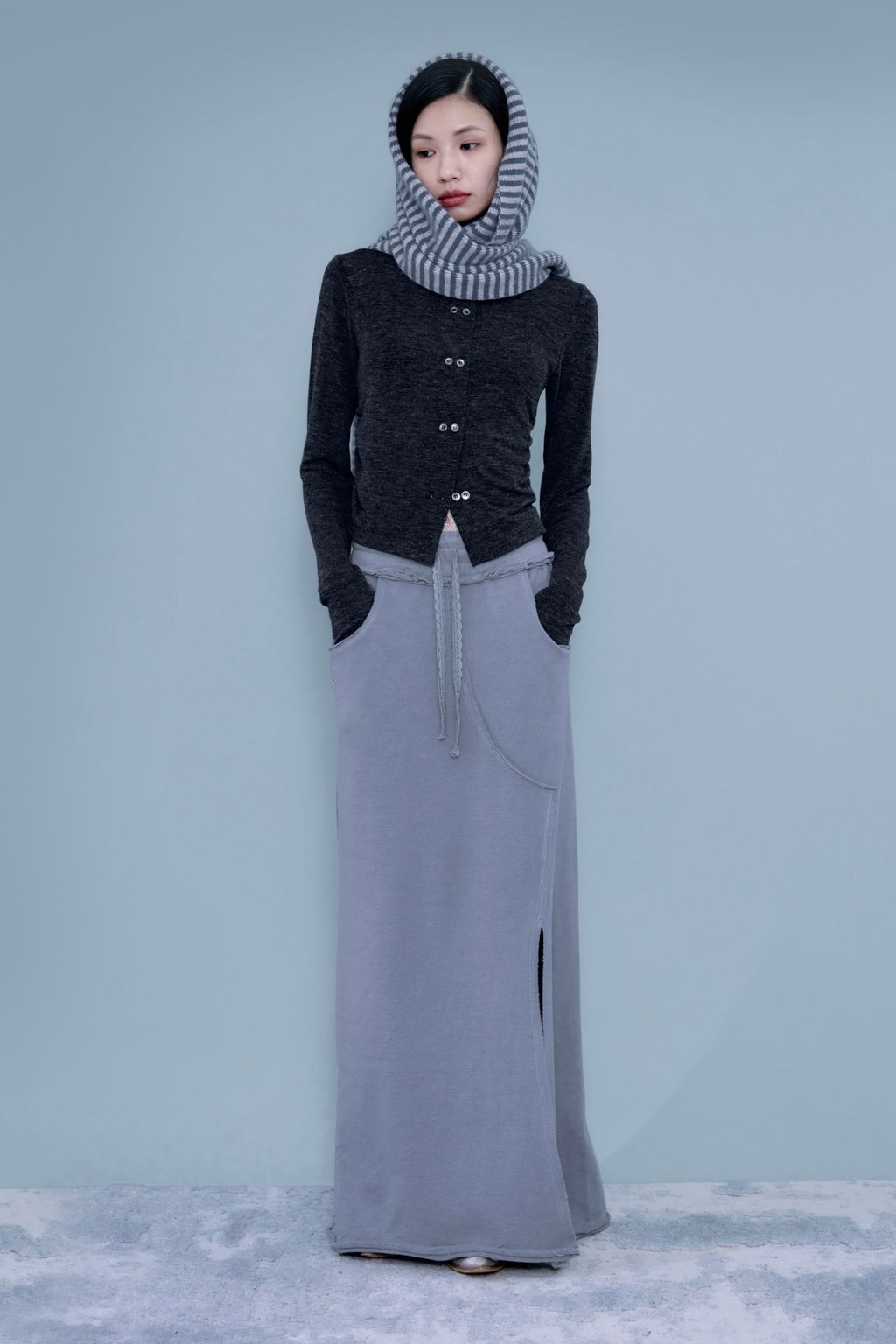 / BB.MADE / 設計不規則開衩休閒長裙 - 灰藍 / 深灰