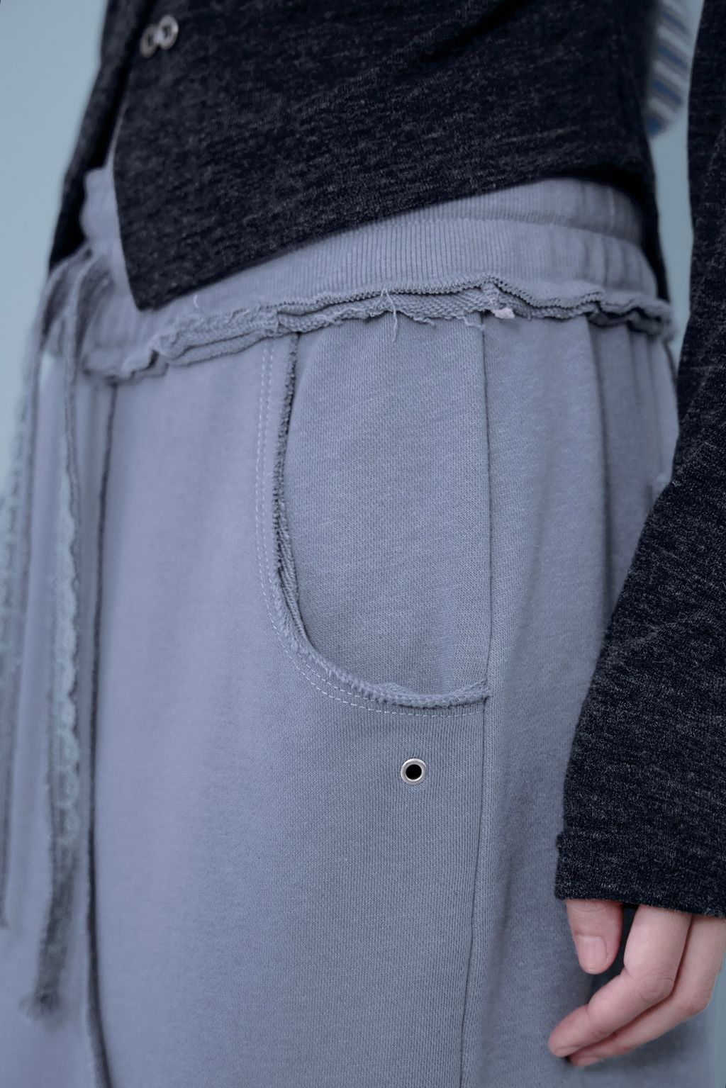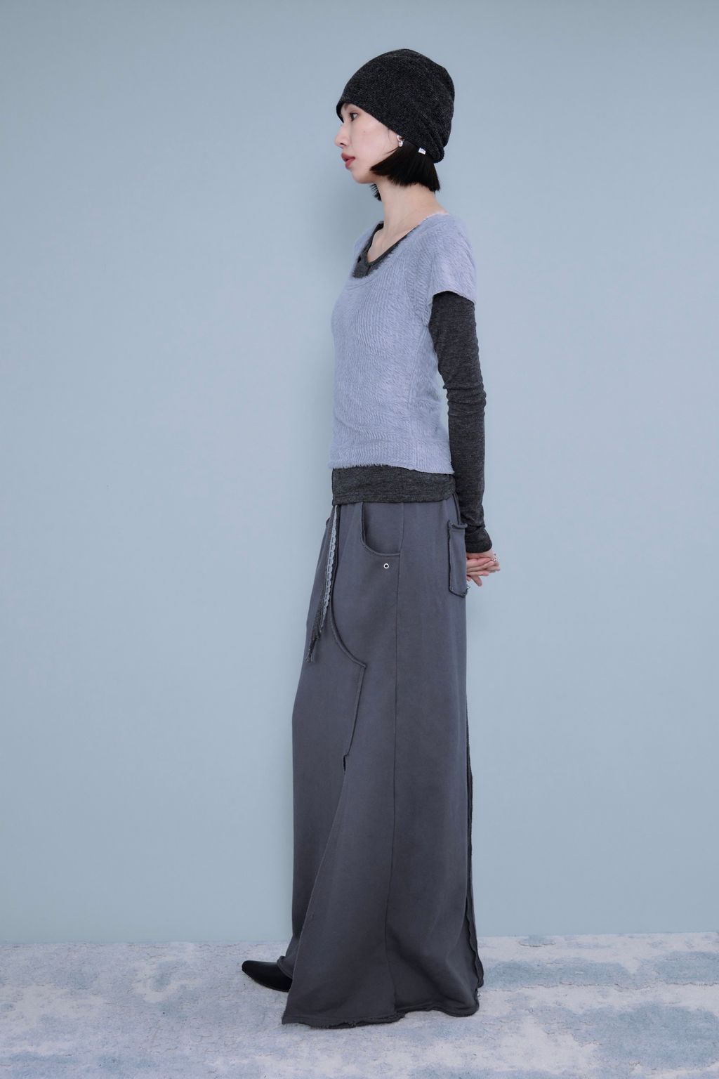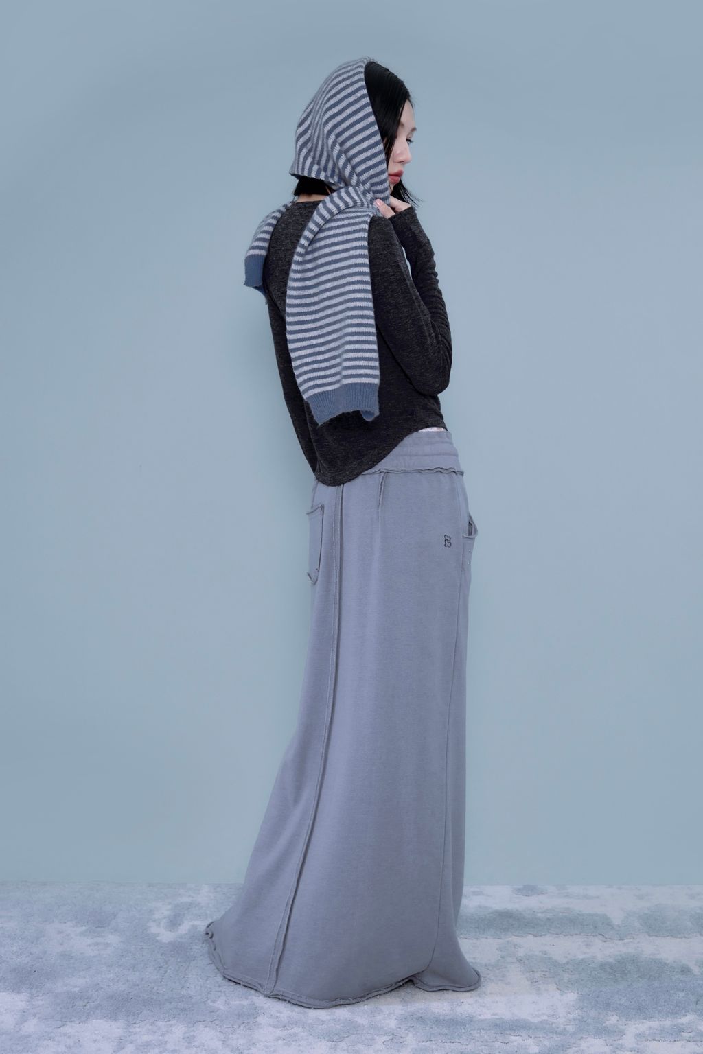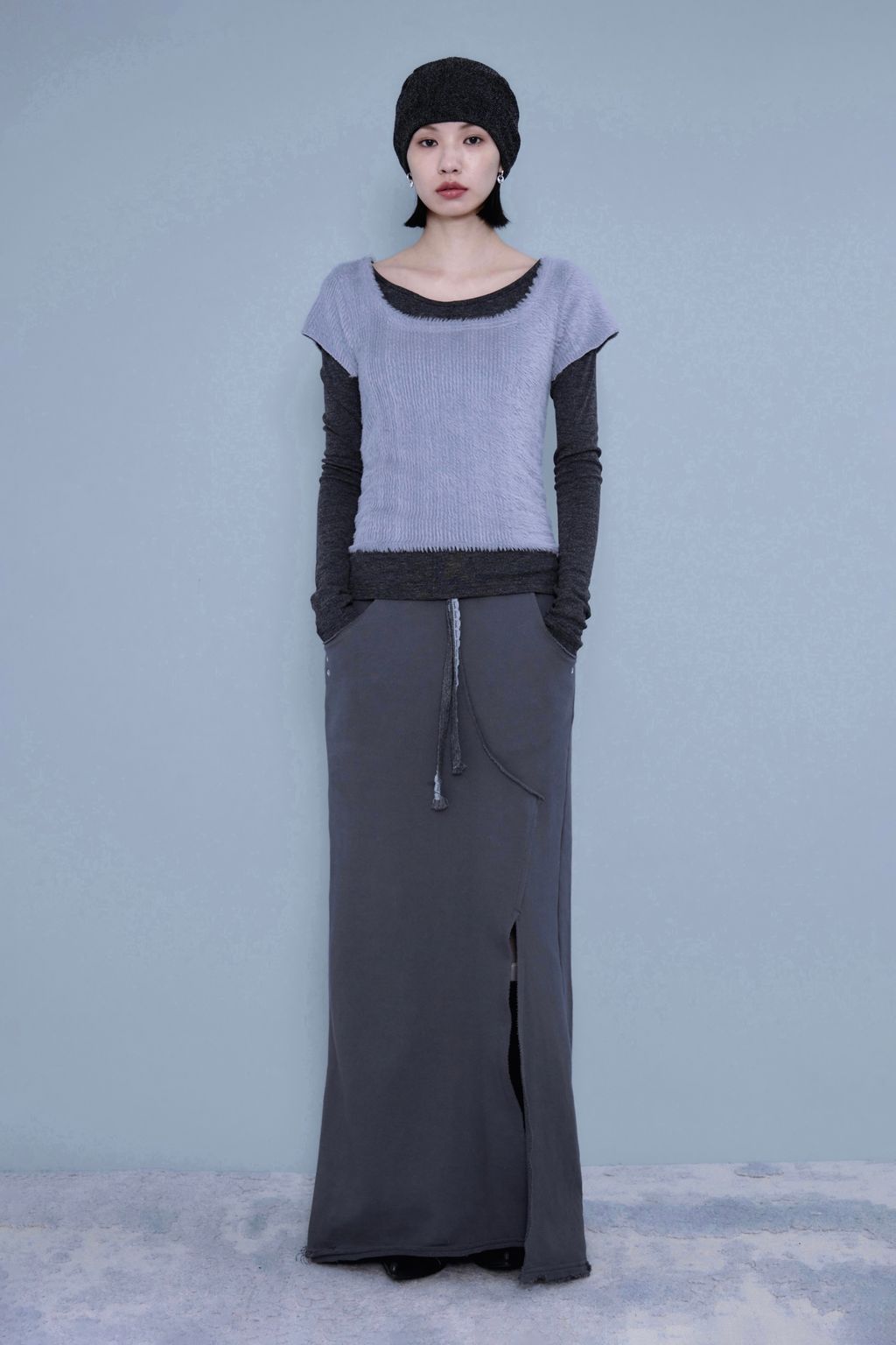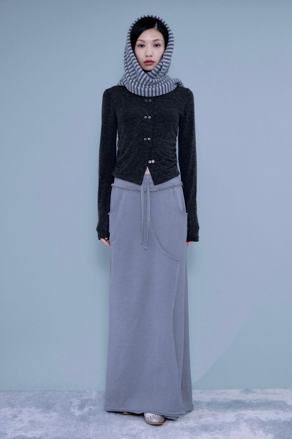 / BB.MADE / 設計不規則開衩休閒長裙 - 灰藍 / 深灰