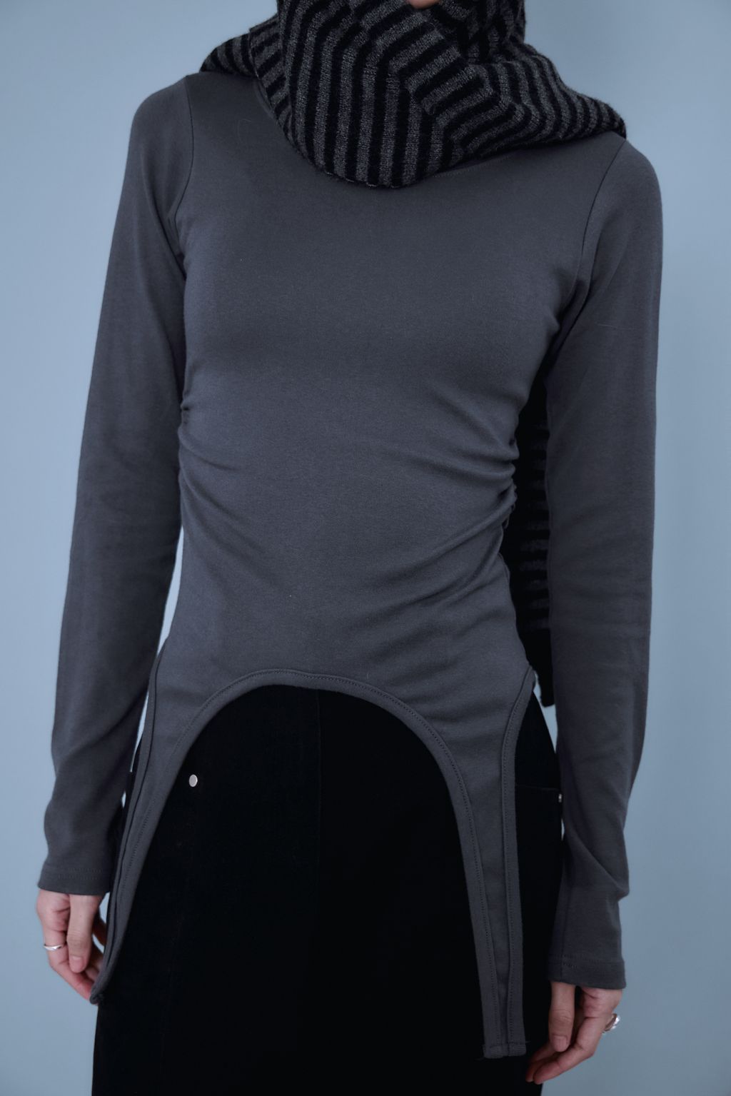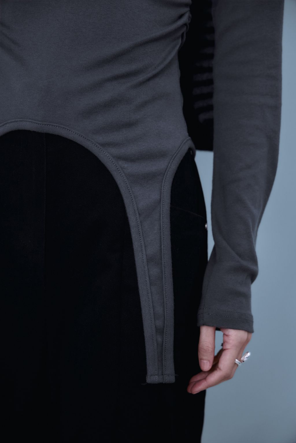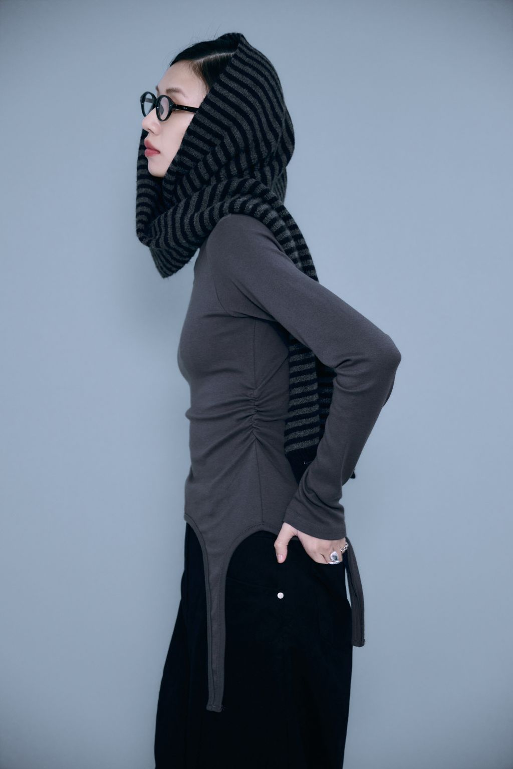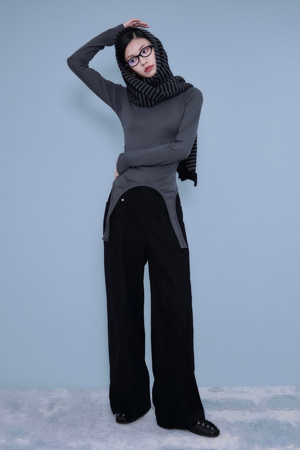 / 韓國設計師品牌 / 親膚垂線設計上衣 - 灰 / 黑