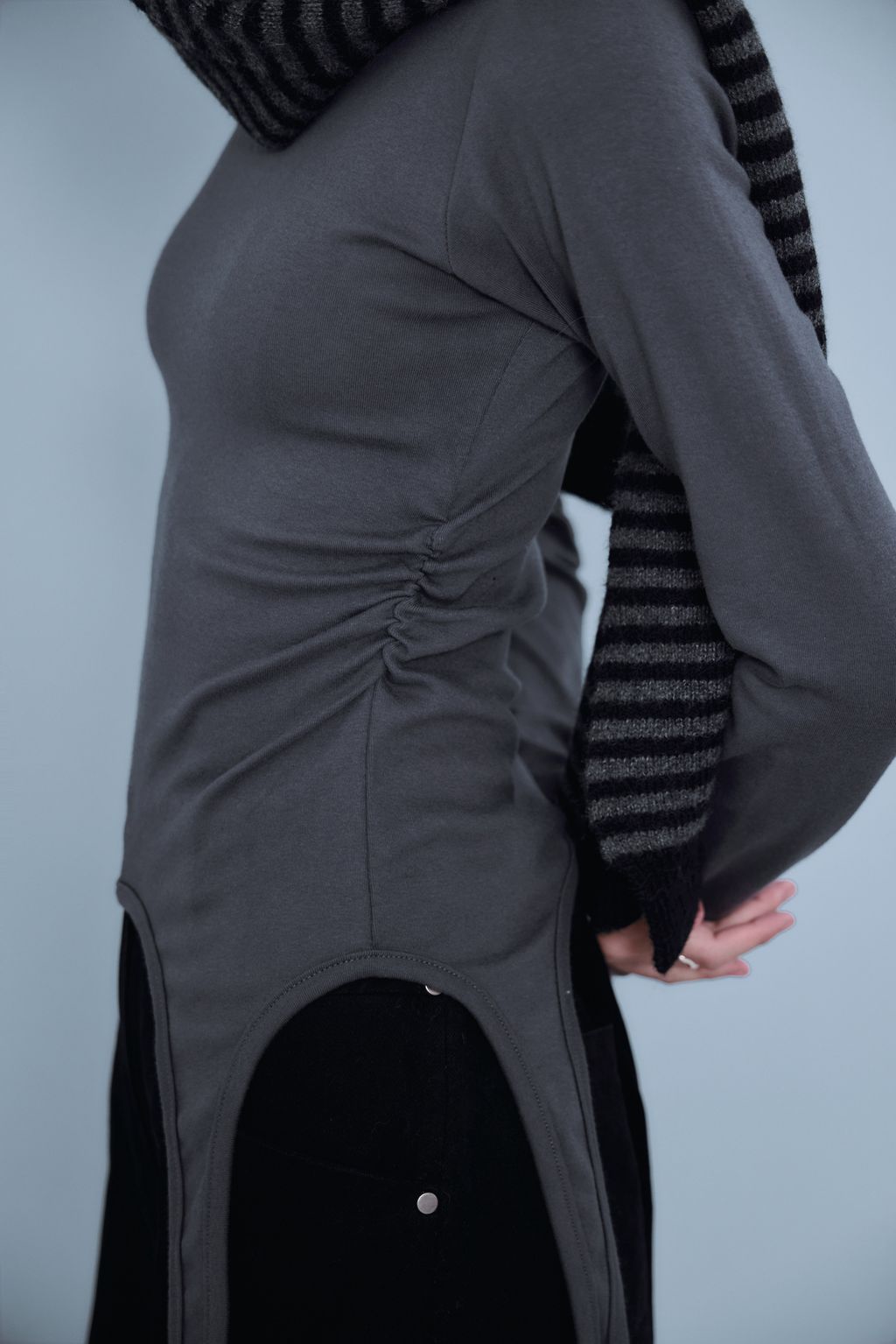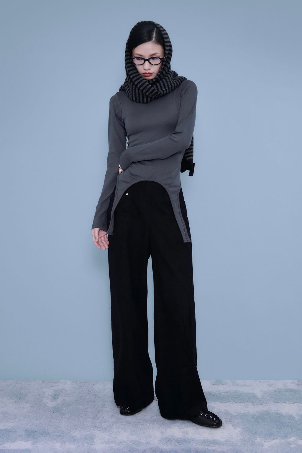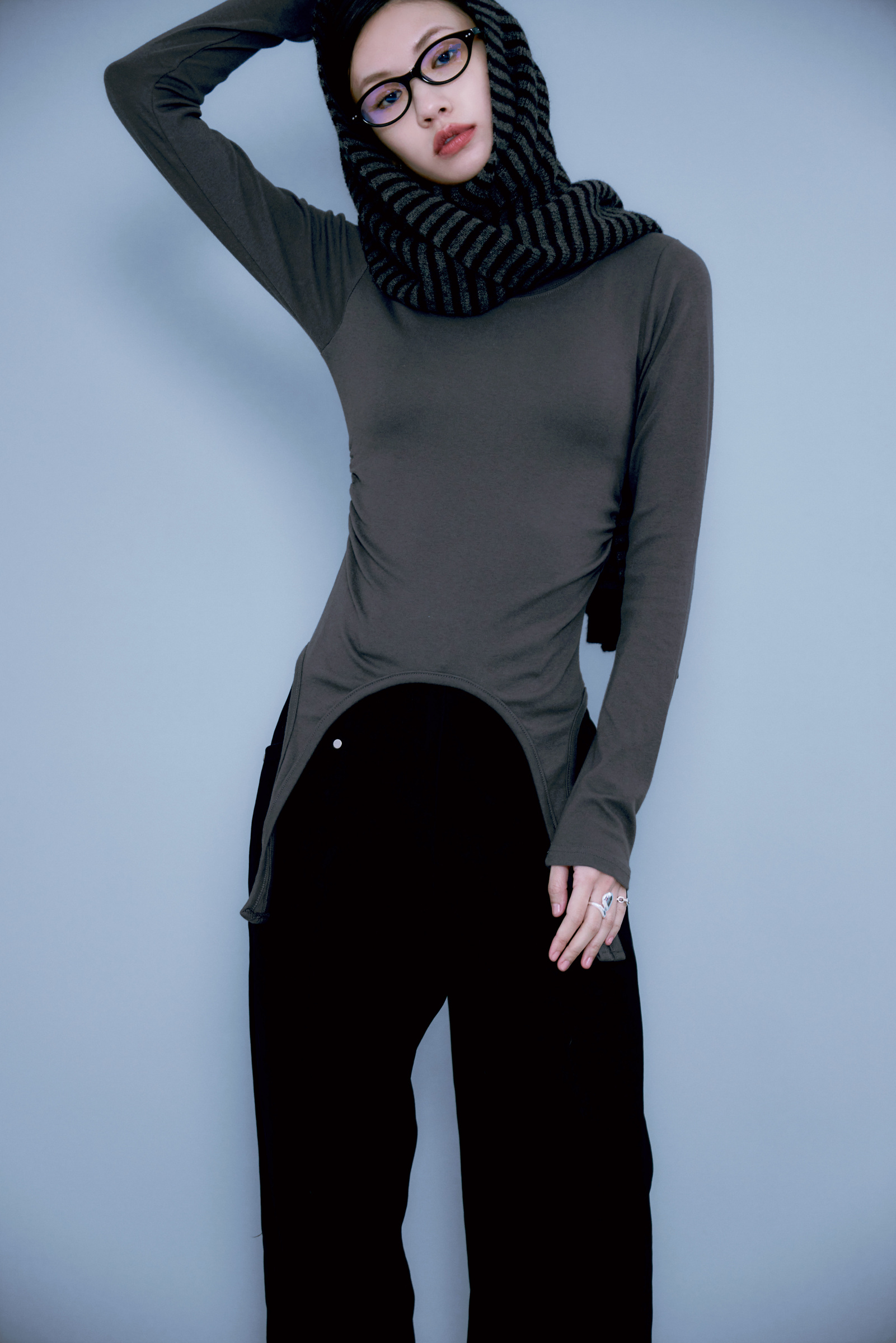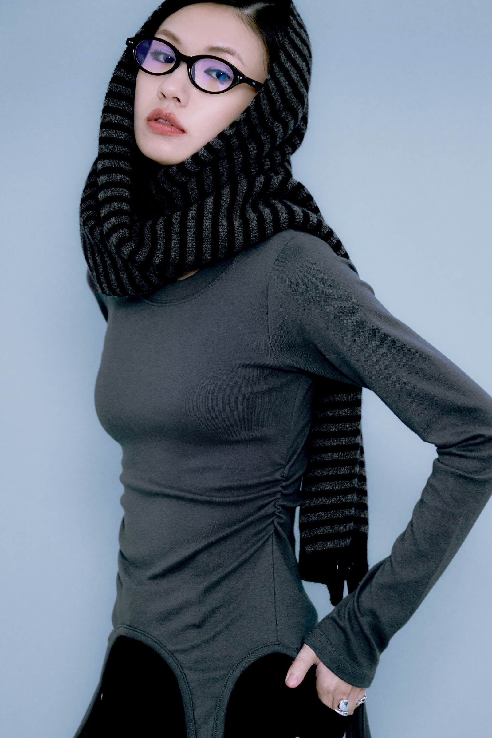 / 韓國設計師品牌 / 親膚垂線設計上衣 - 灰 / 黑