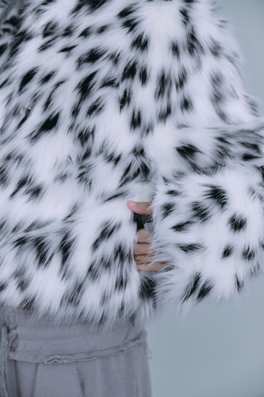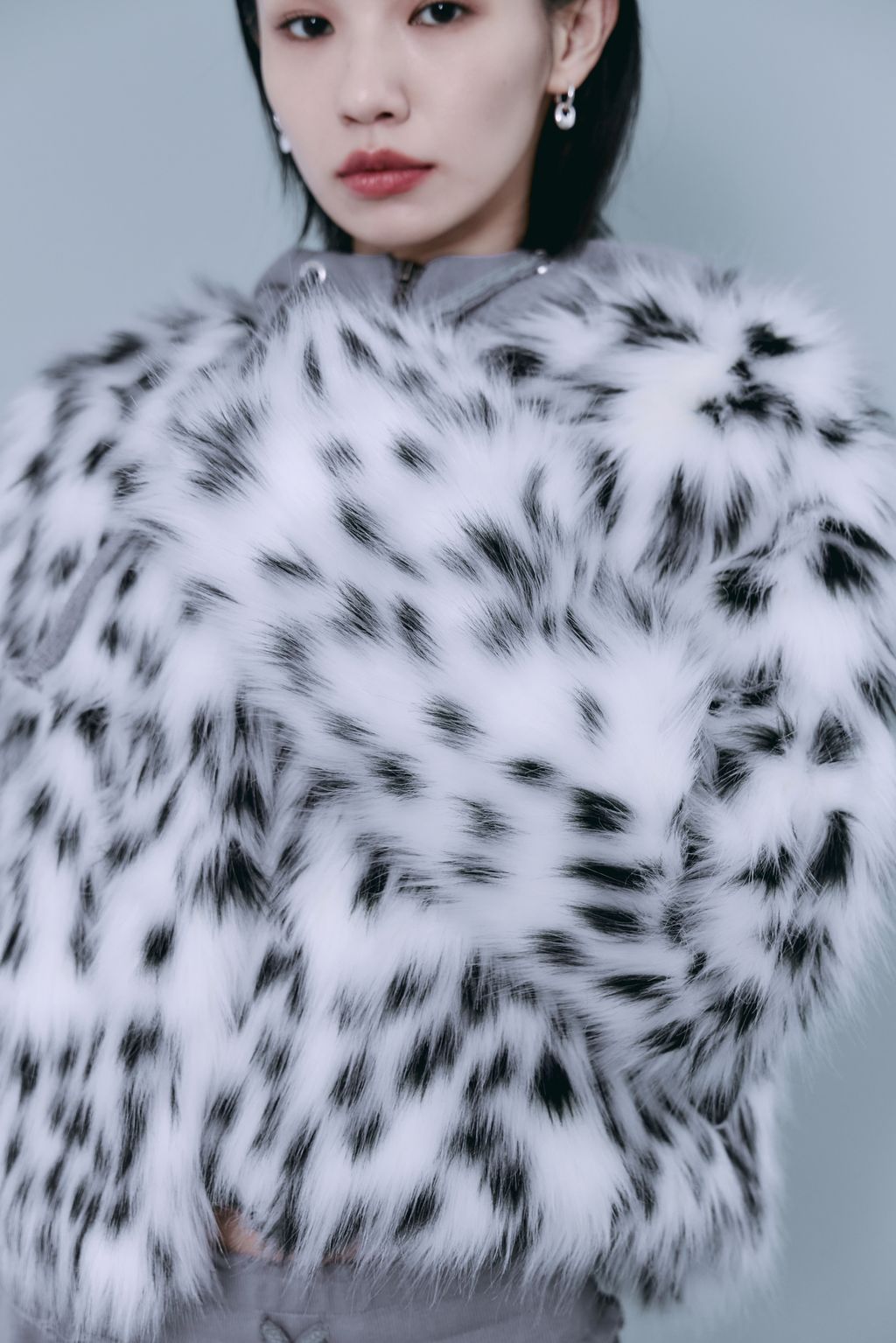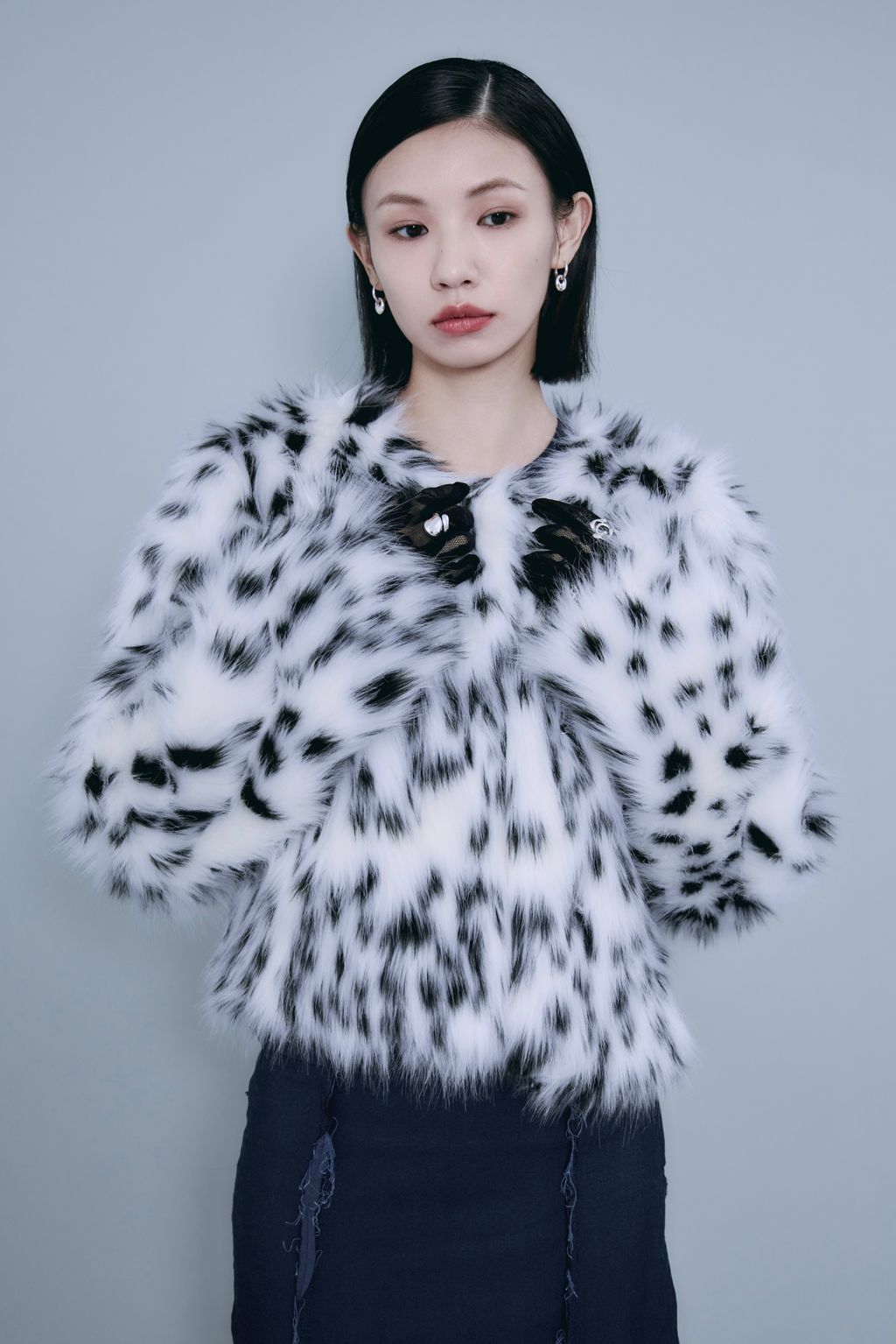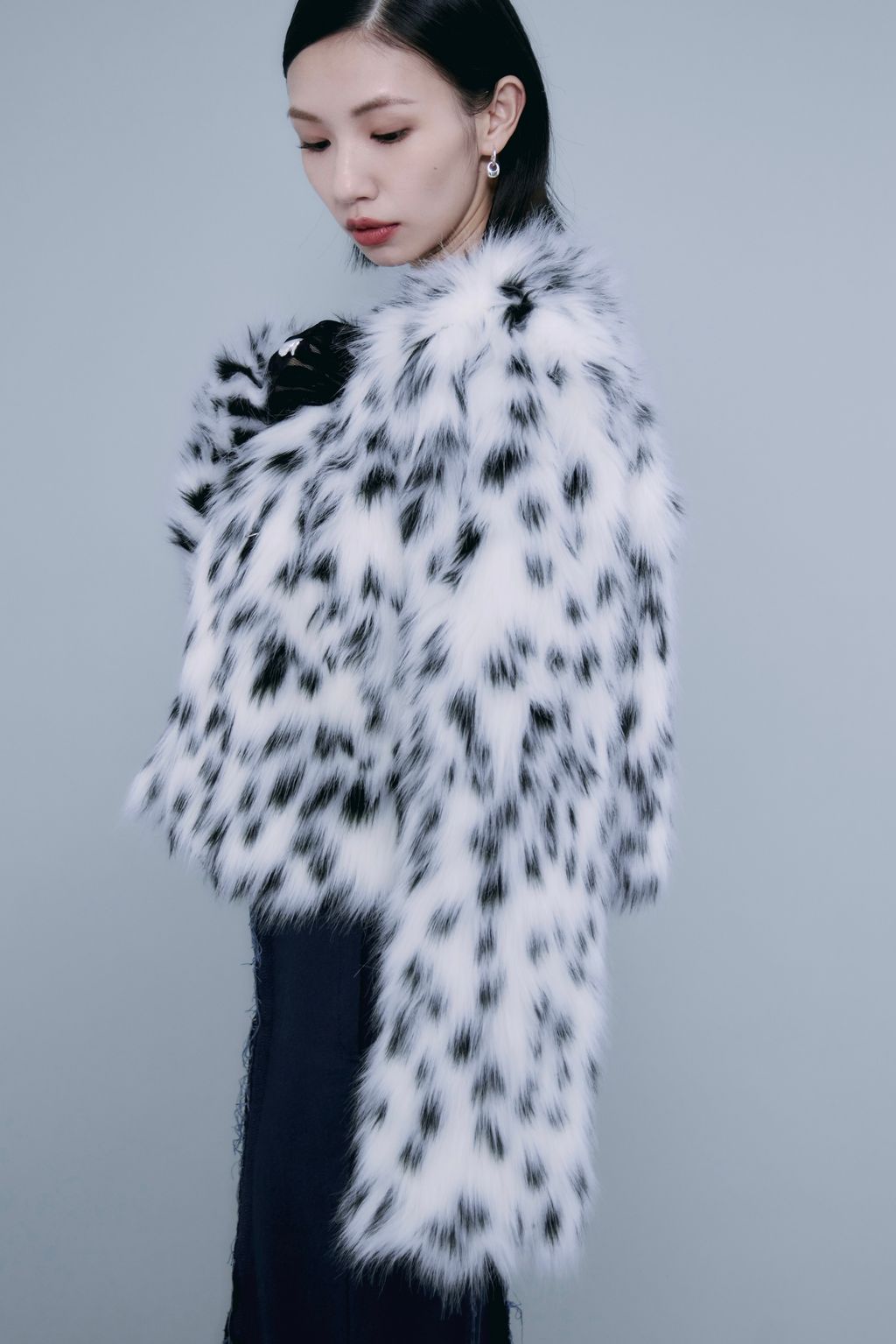 / 韓國設計師品牌 / 質感不規則花紋毛毛外套 - 大麥町(黑白) / 三花貓(棕米白)