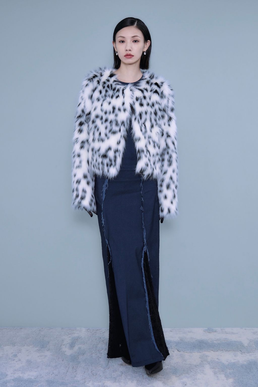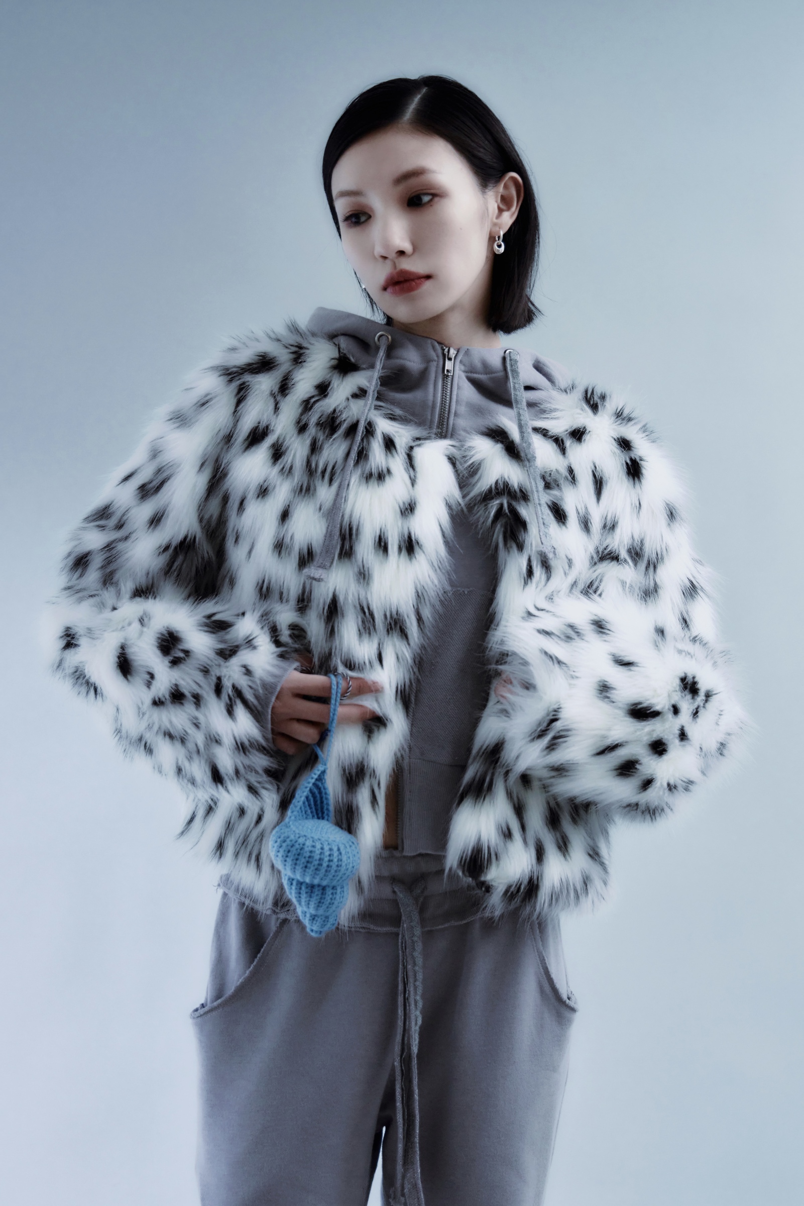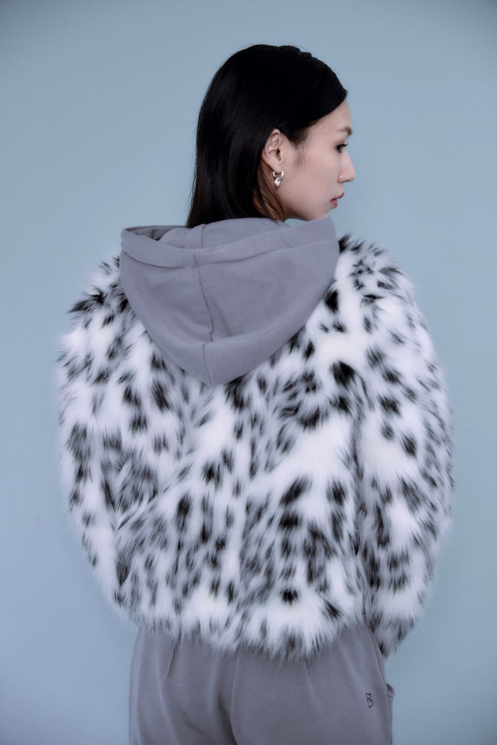 / 韓國設計師品牌 / 質感不規則花紋毛毛外套 - 大麥町(黑白) / 三花貓(棕米白)