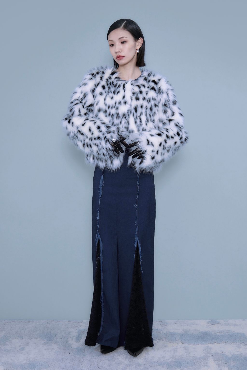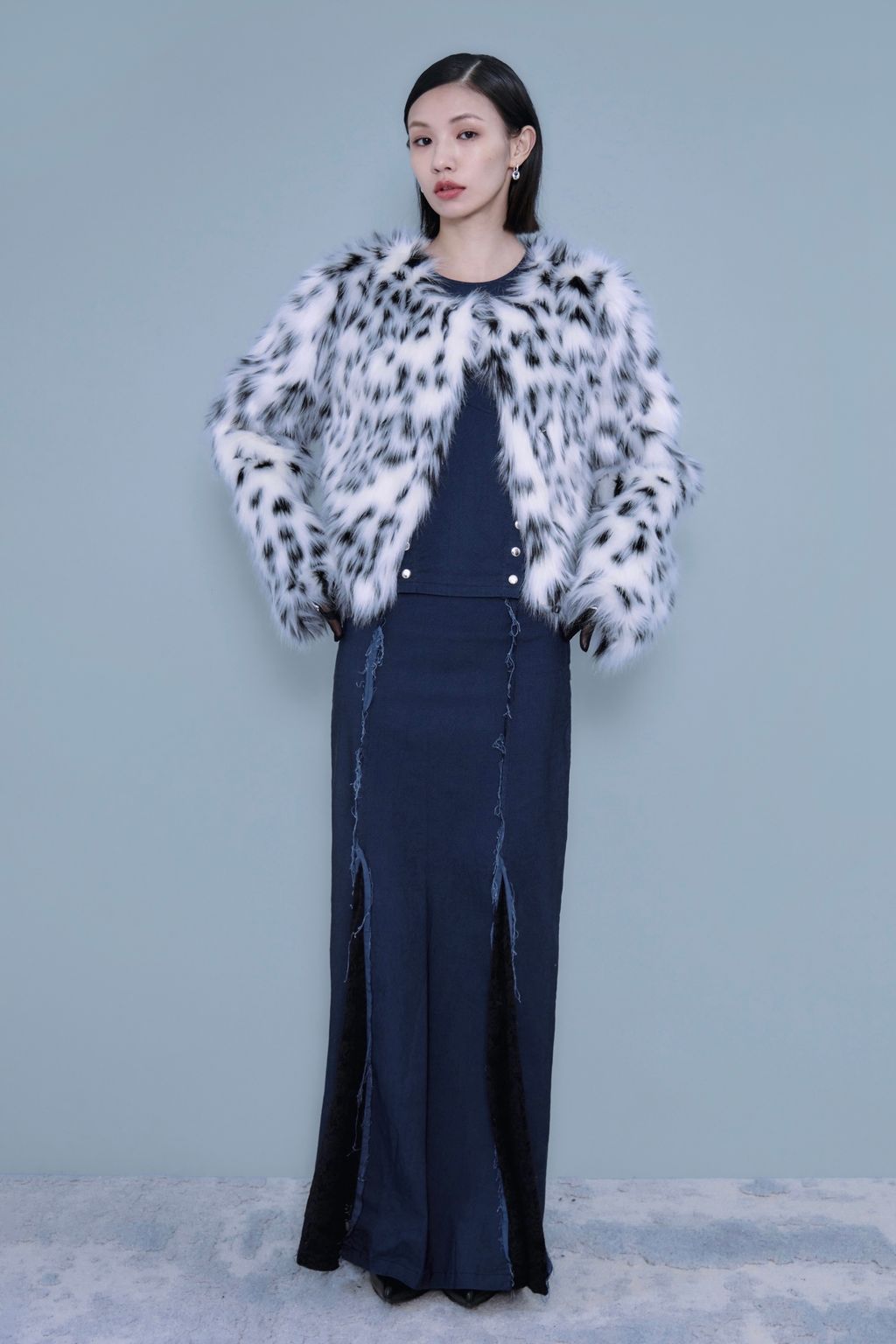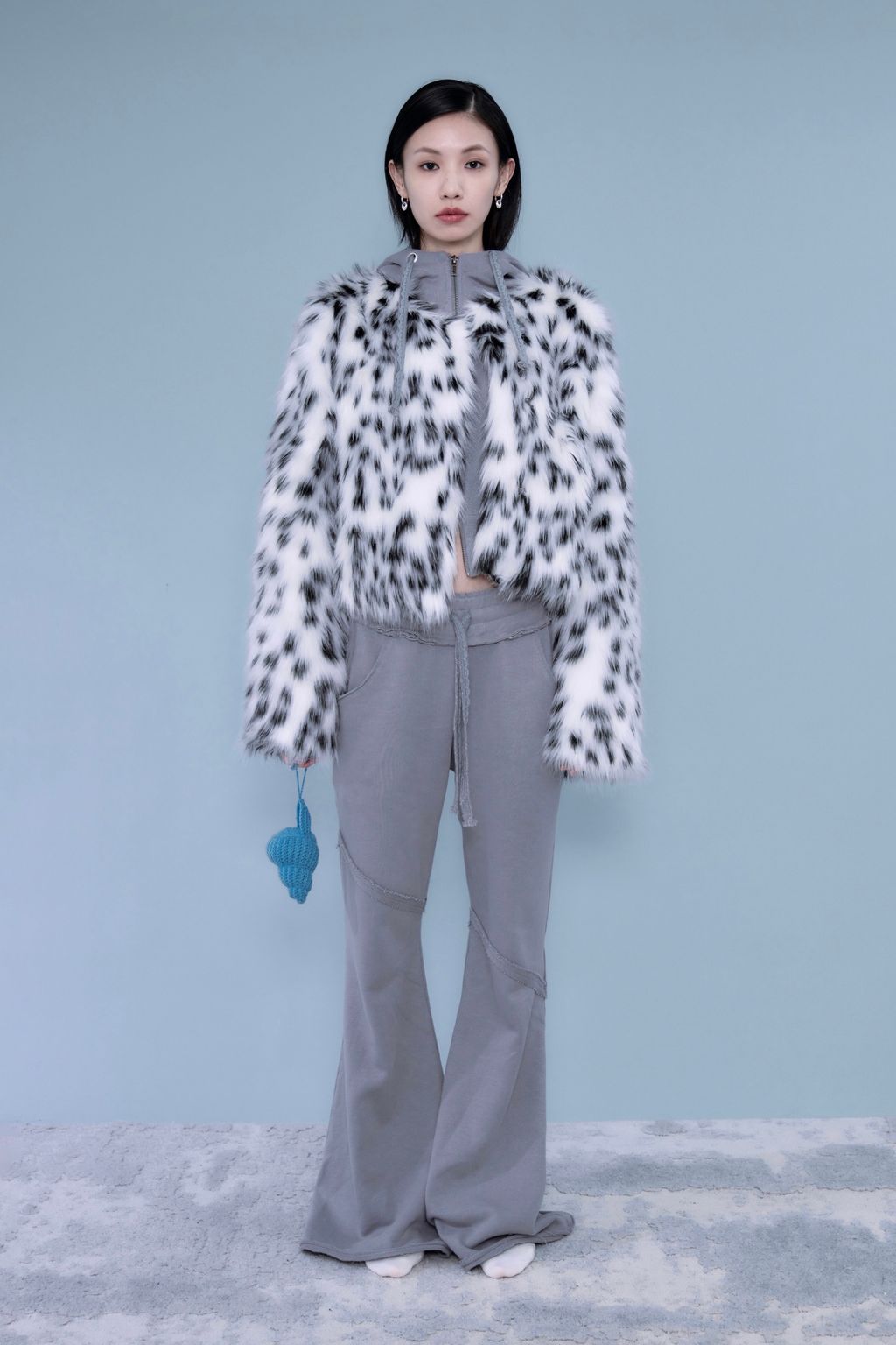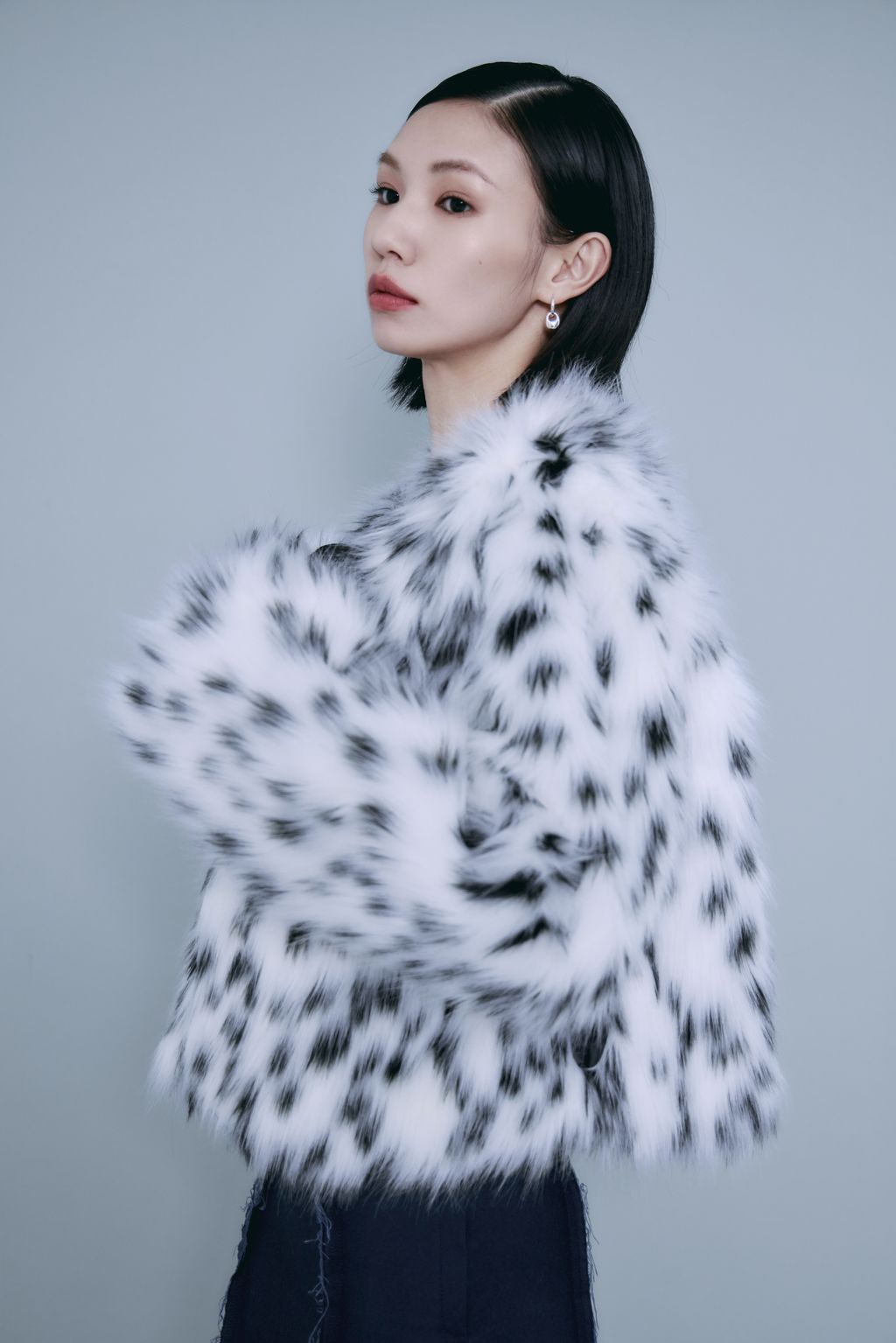 / 韓國設計師品牌 / 質感不規則花紋毛毛外套 - 大麥町(黑白) / 三花貓(棕米白)