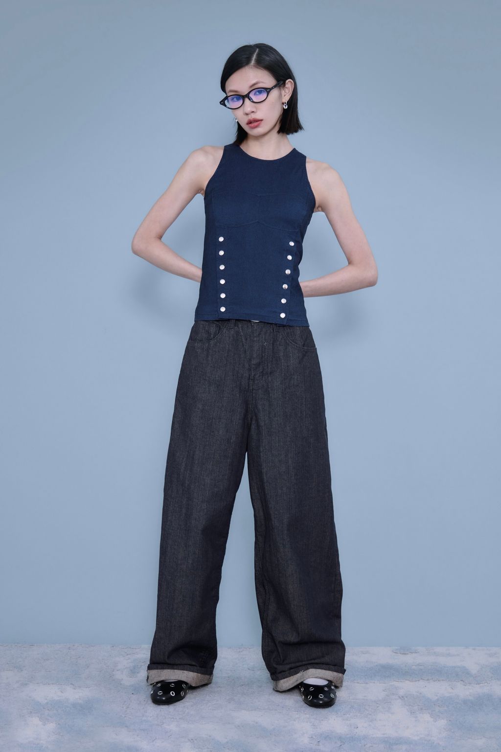 / 韓國設計師品牌 / 百搭直筒牛仔寬褲 ( S / M )