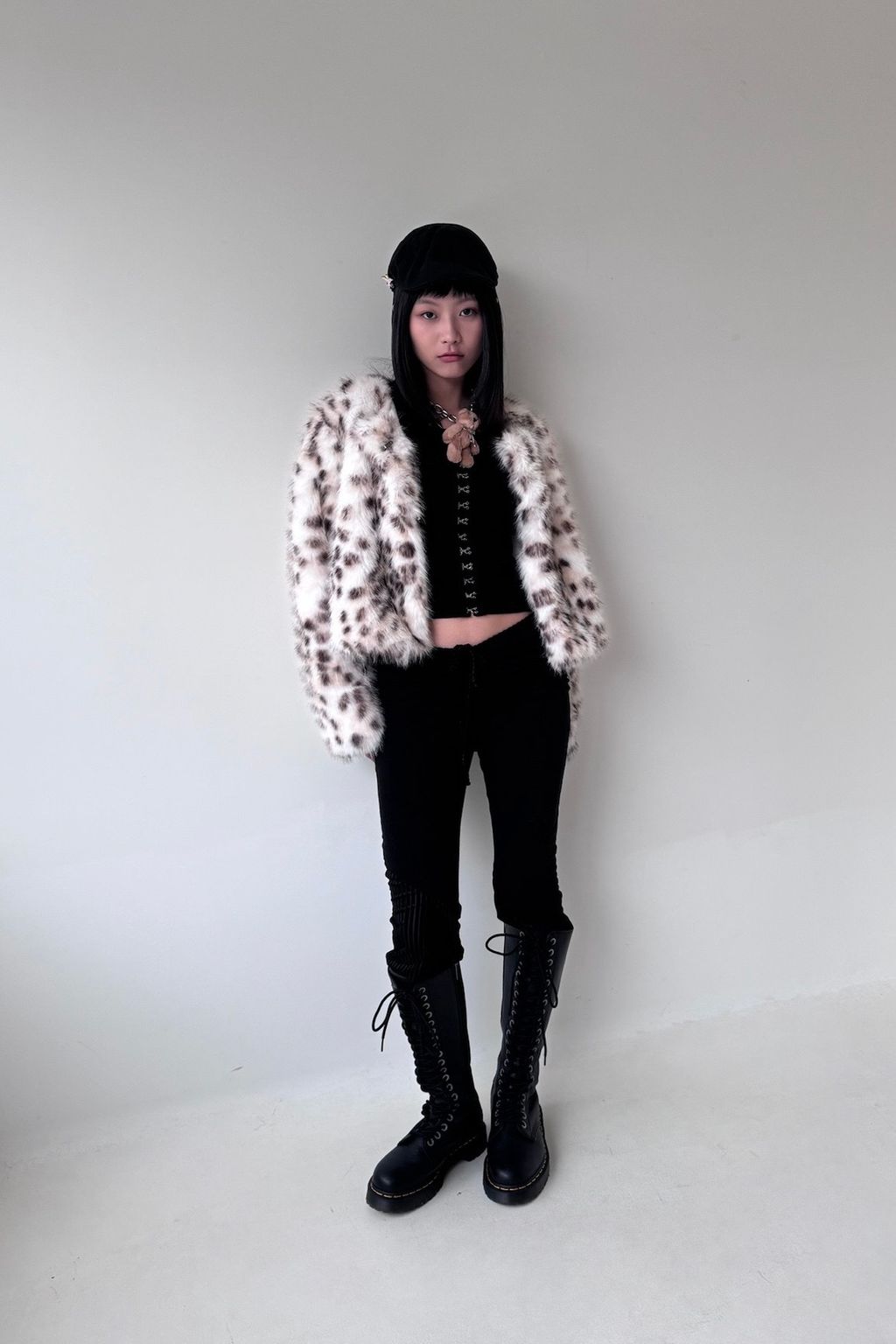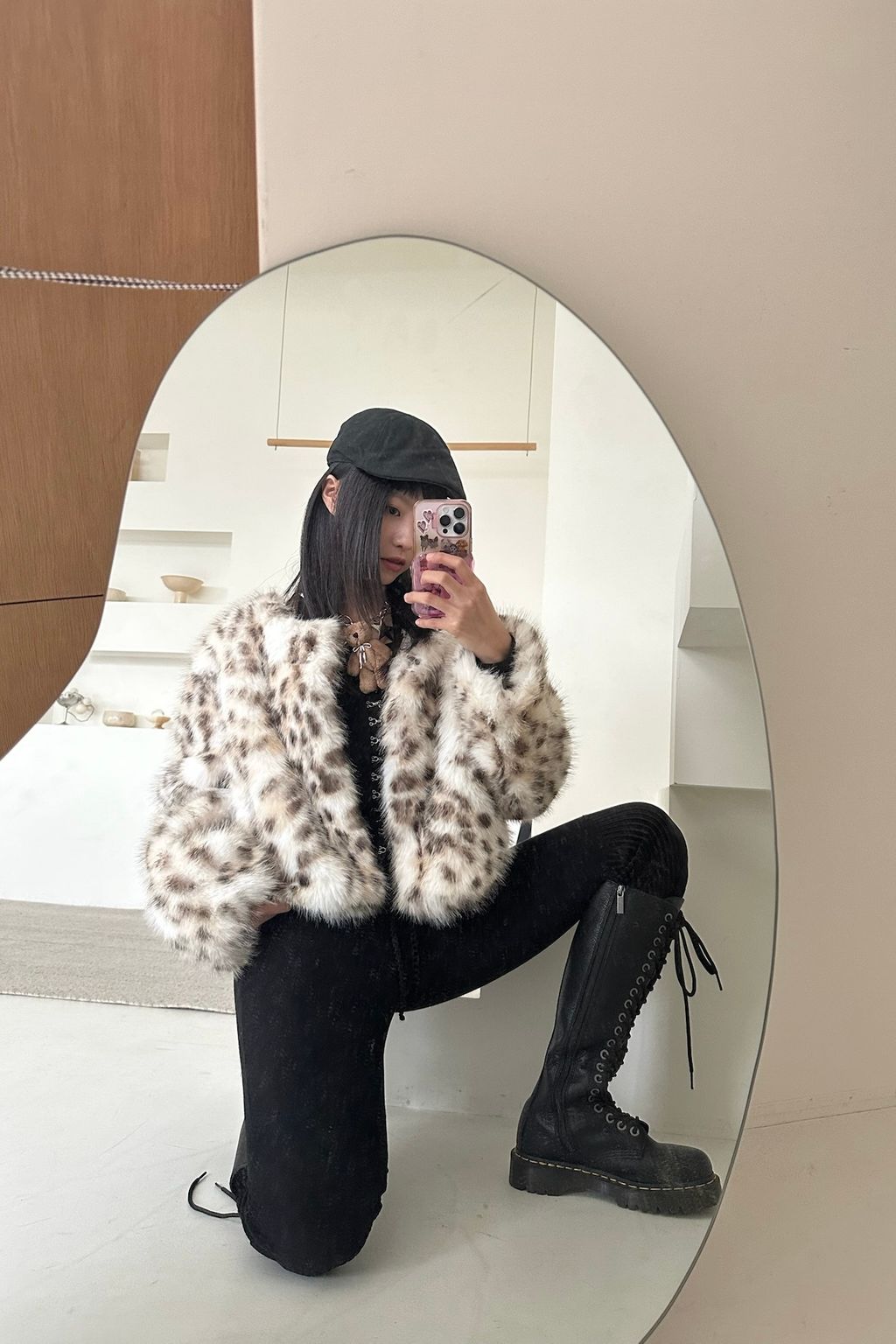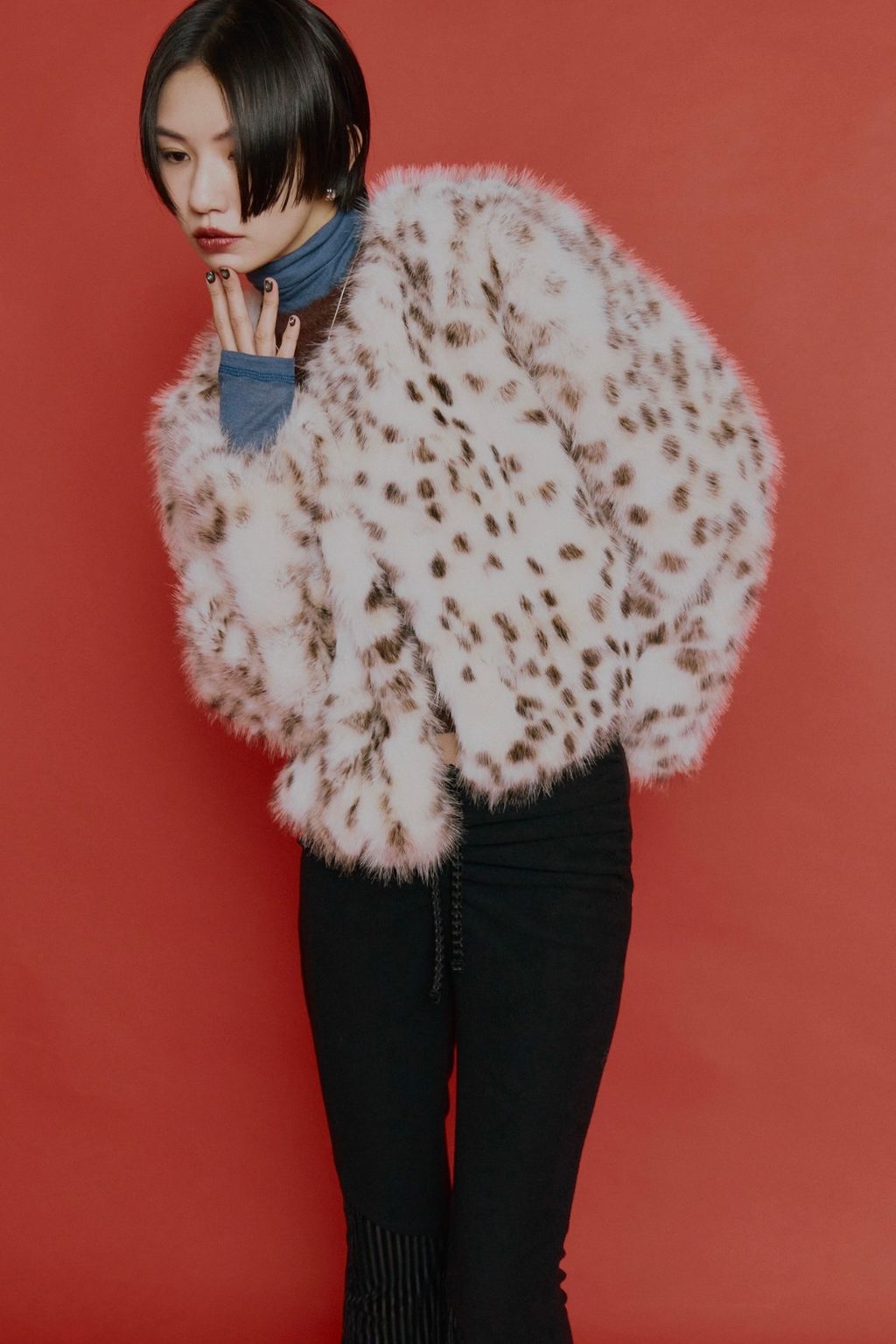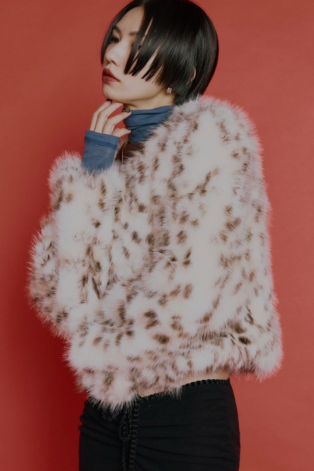 / 韓國設計師品牌 / 質感不規則花紋毛毛外套(預購)