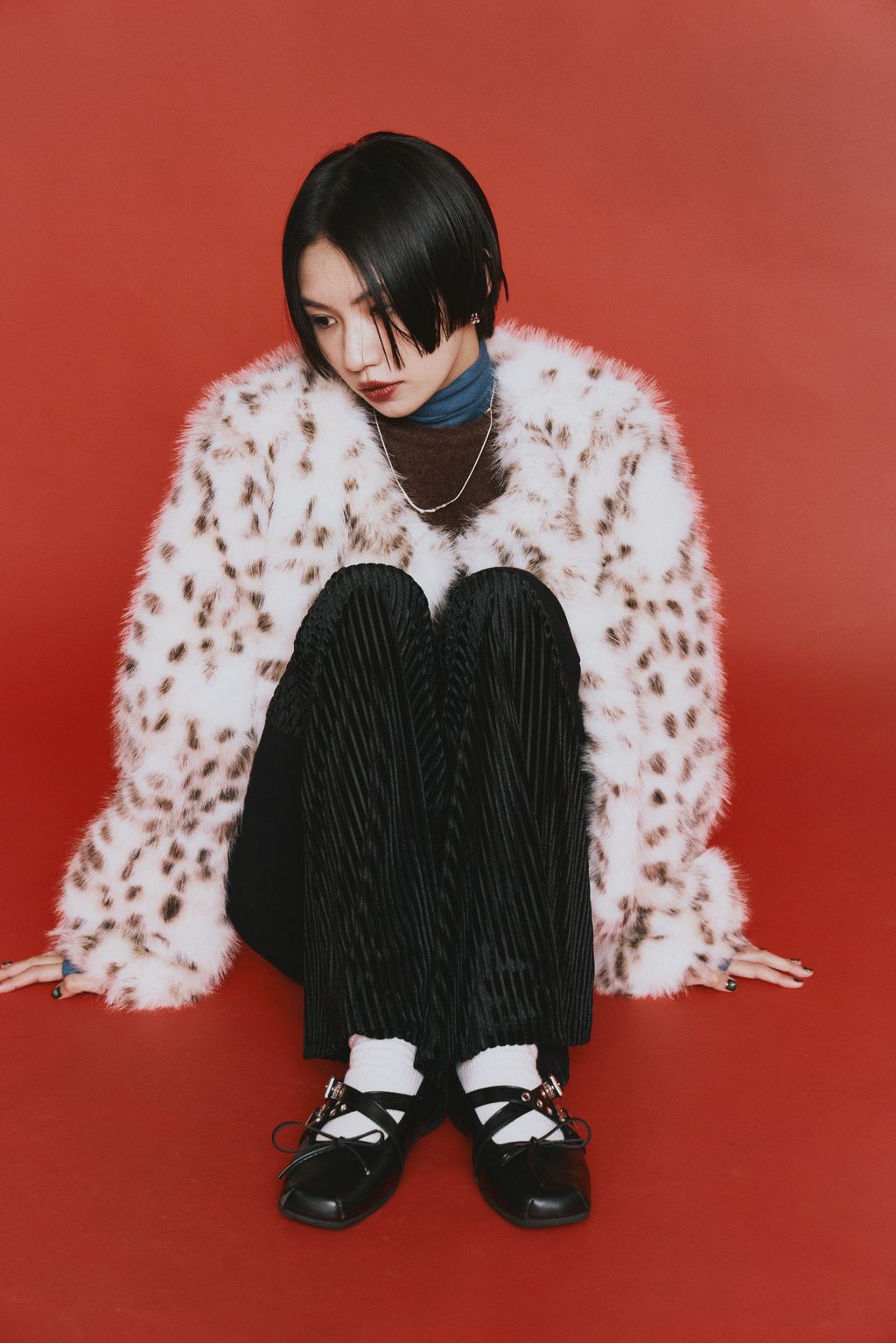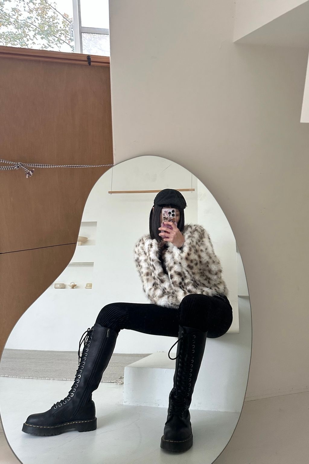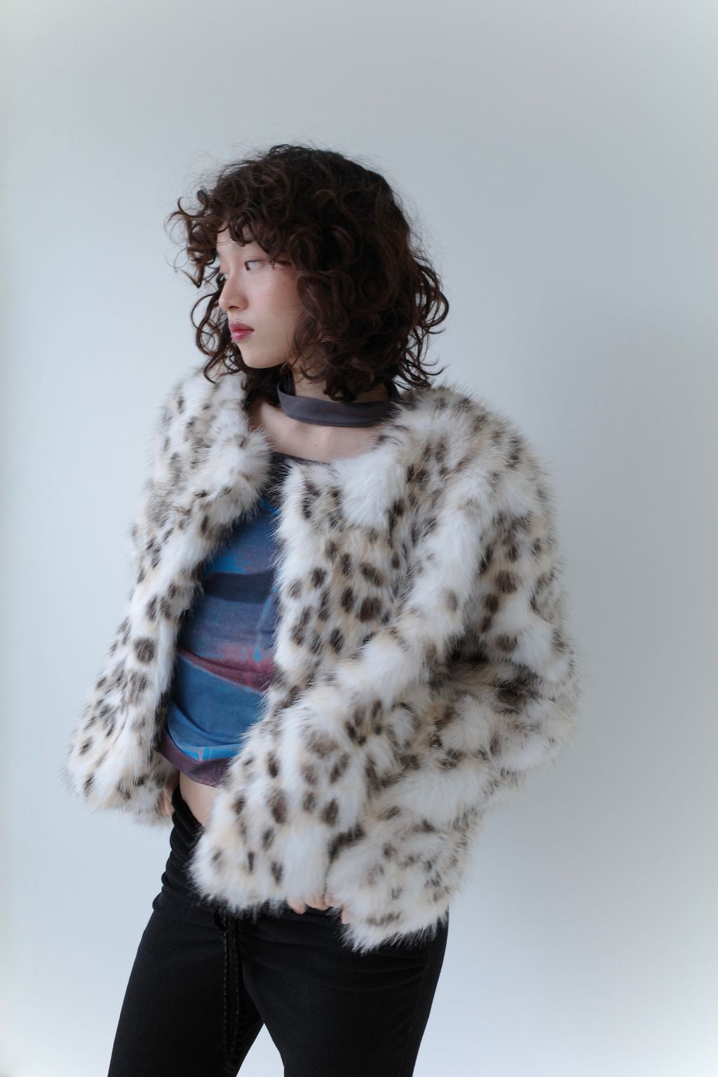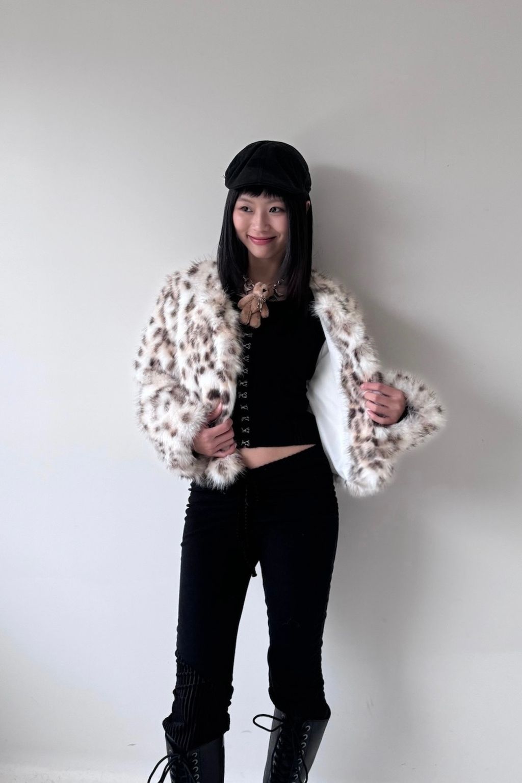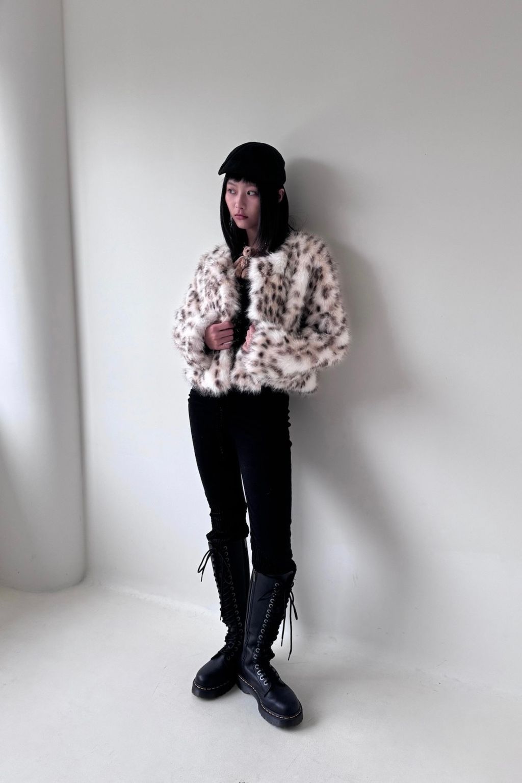 / 韓國設計師品牌 / 質感不規則花紋毛毛外套(預購)