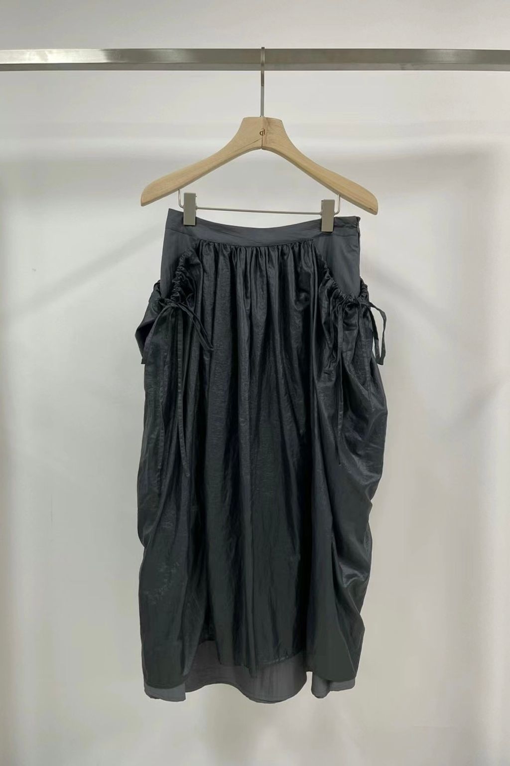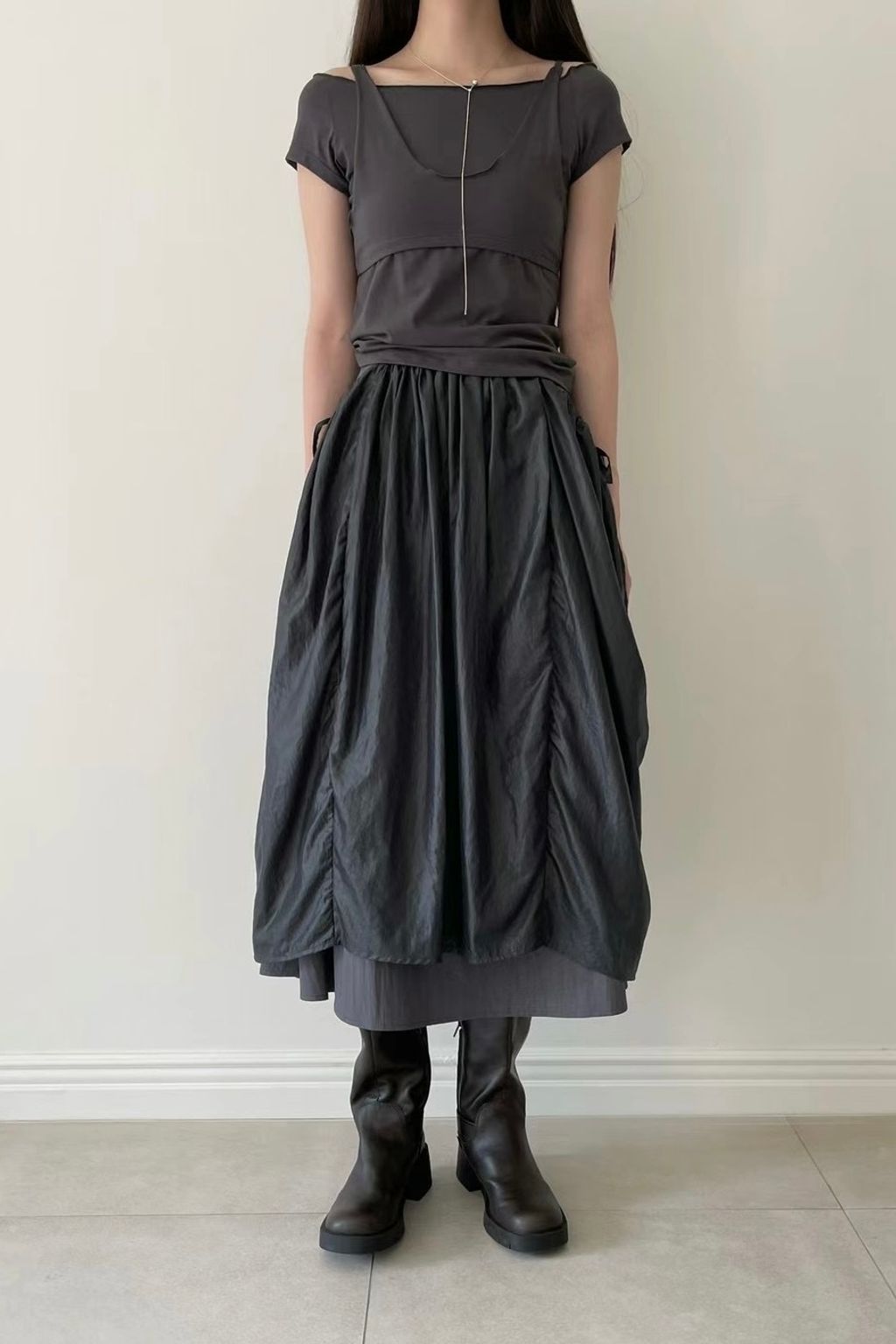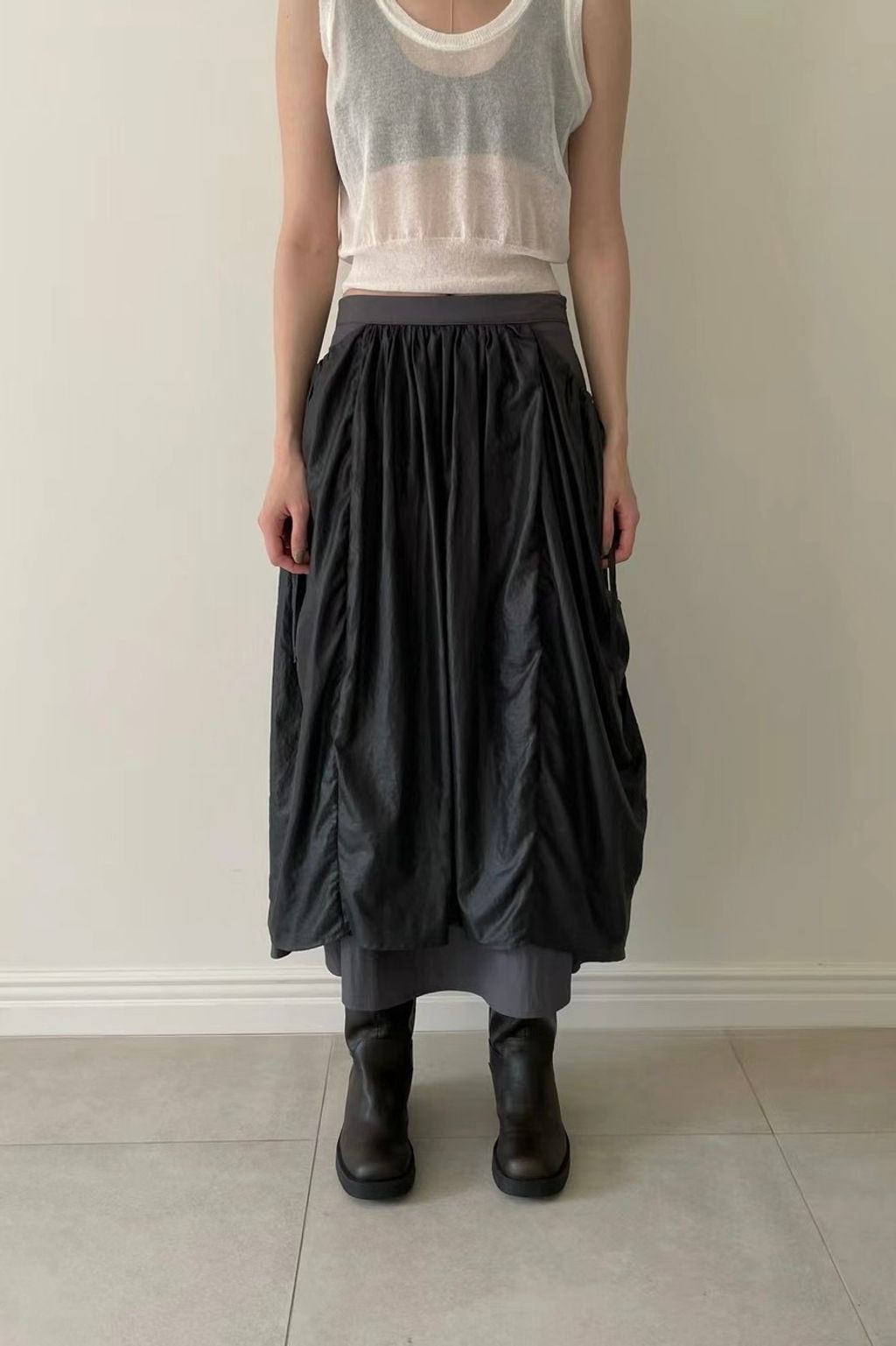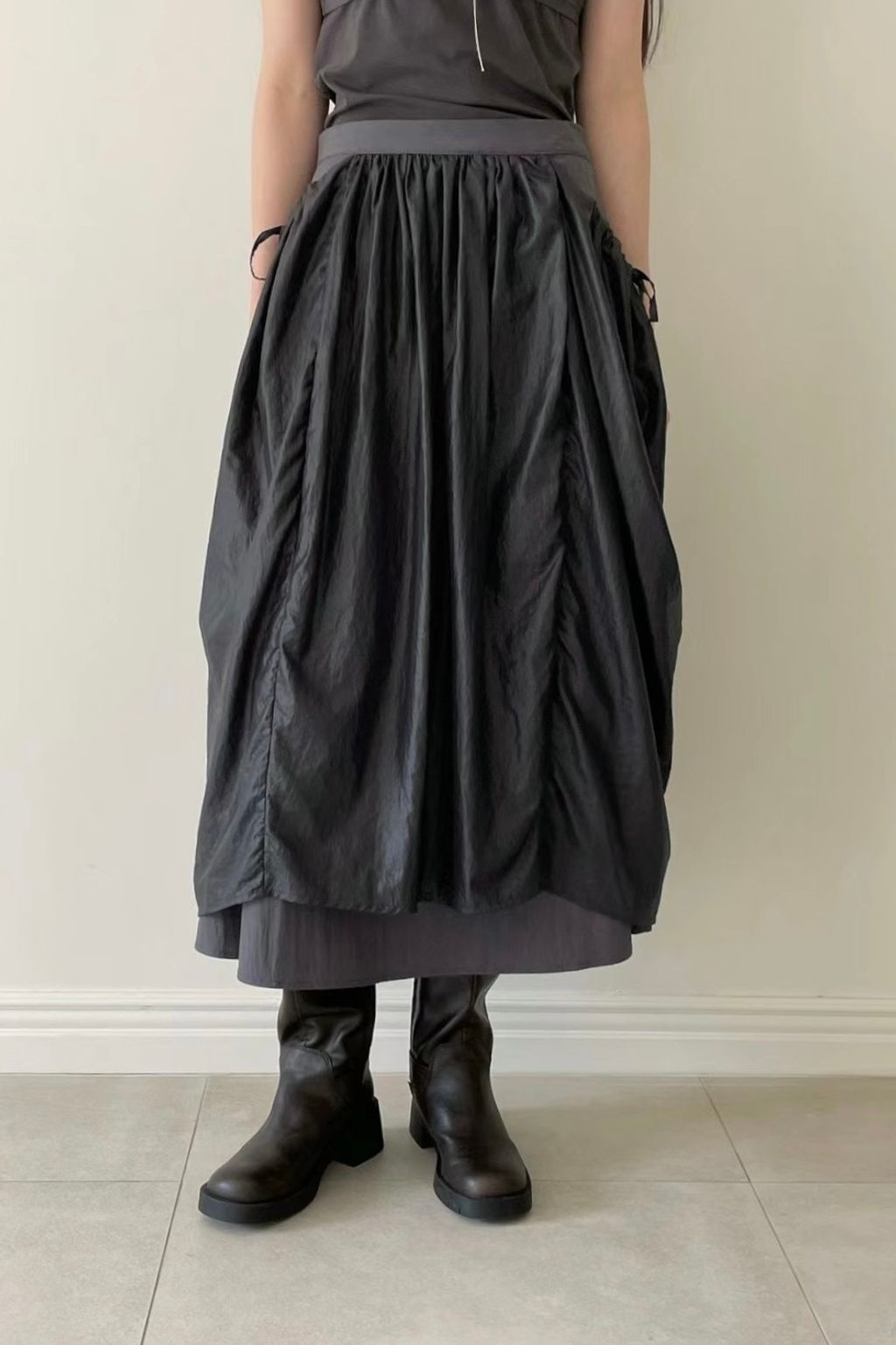 / 韓國設計師品牌 / 雙層抽皺設計花苞裙 - 黑色 / 卡其色