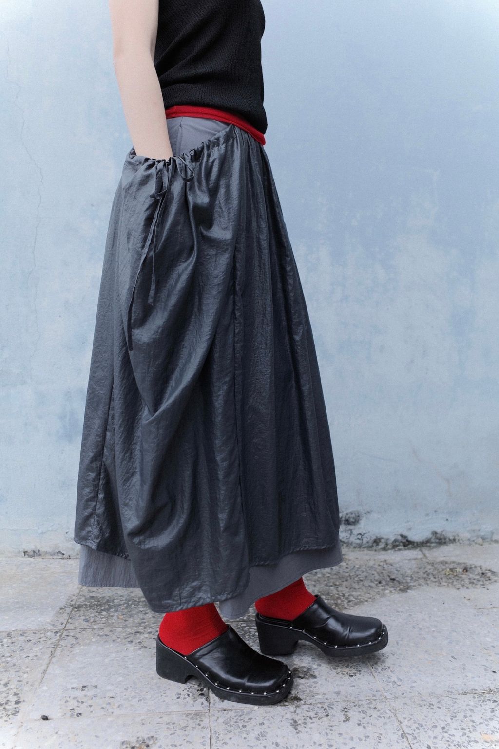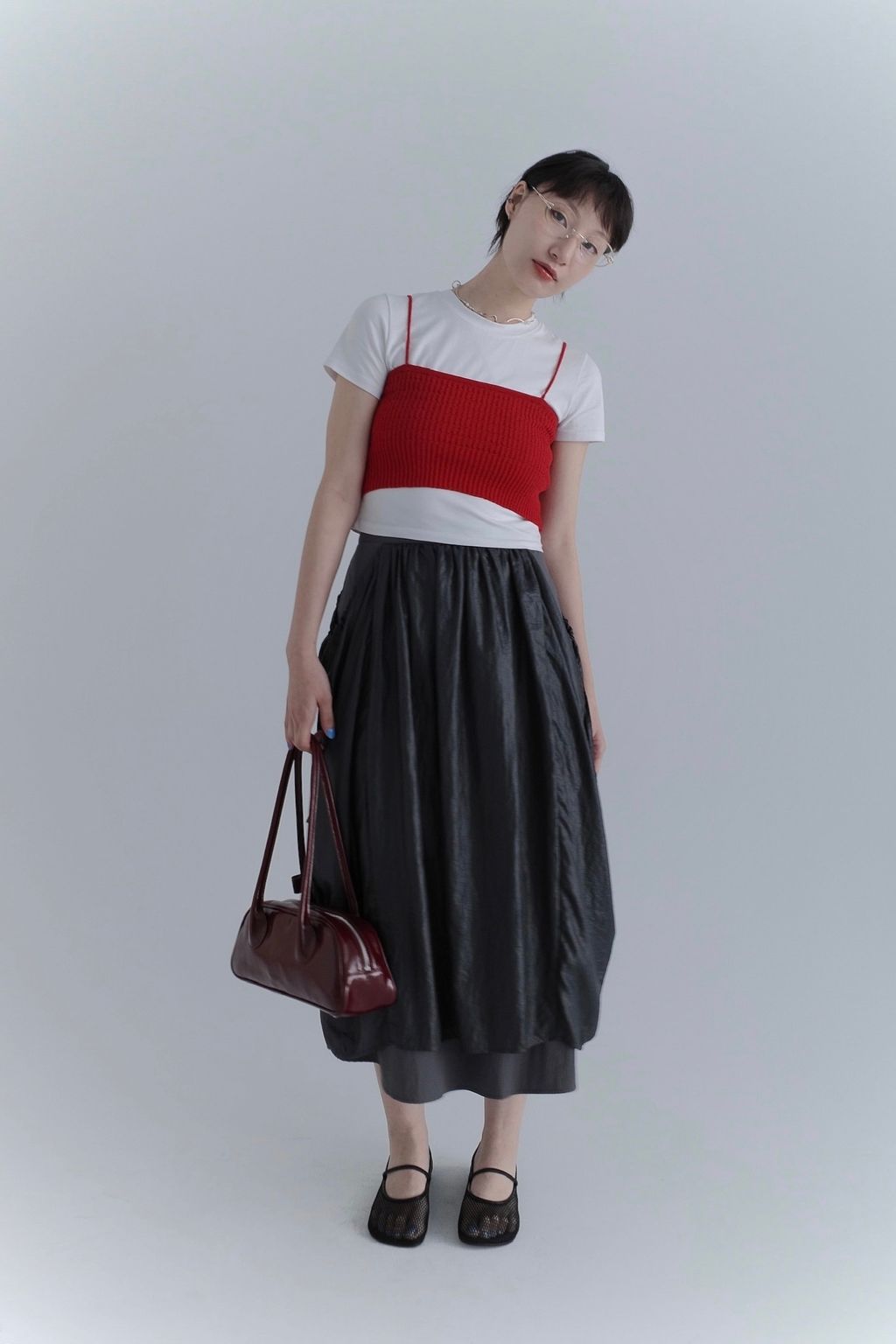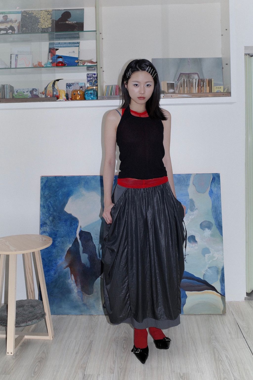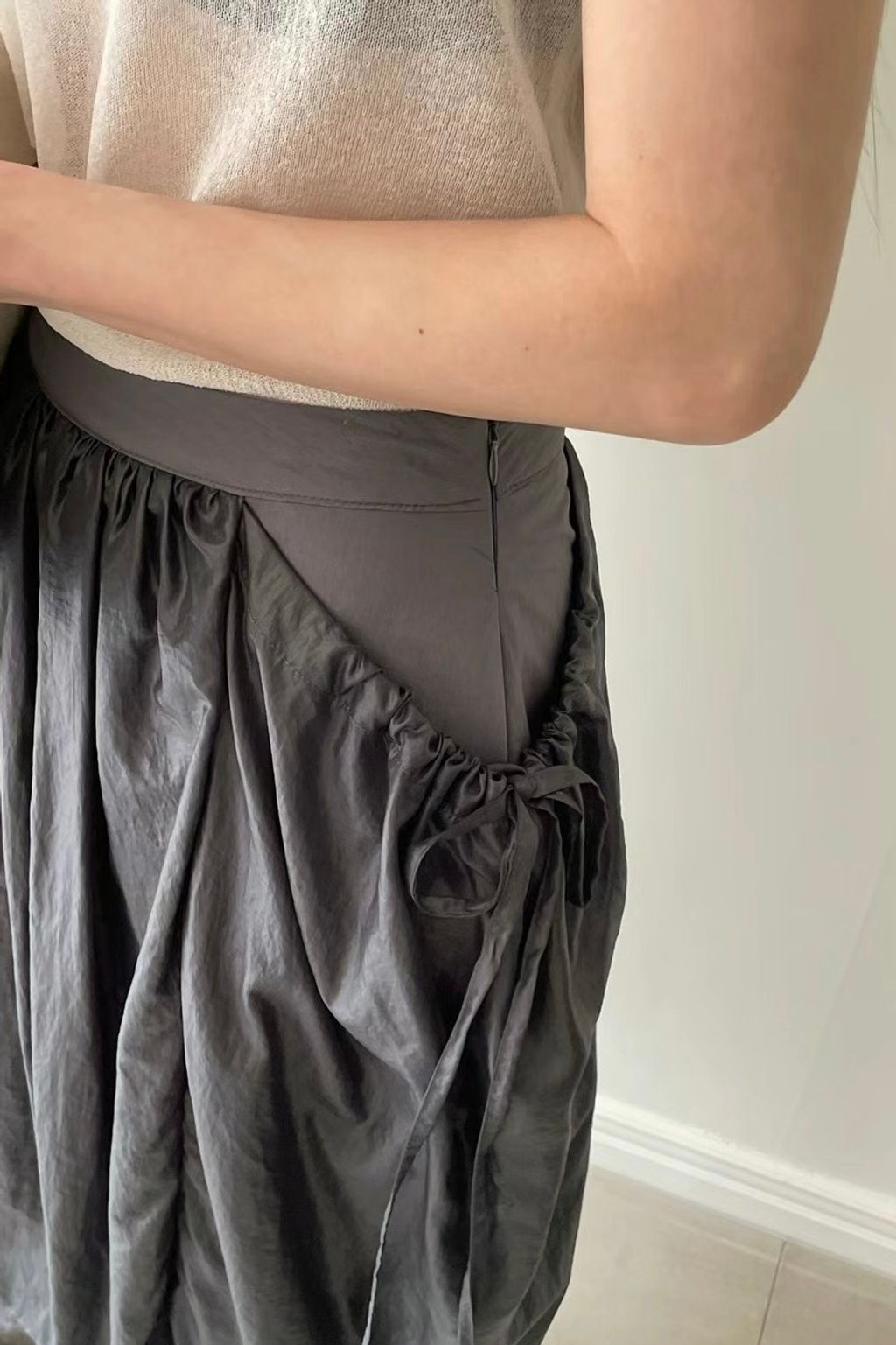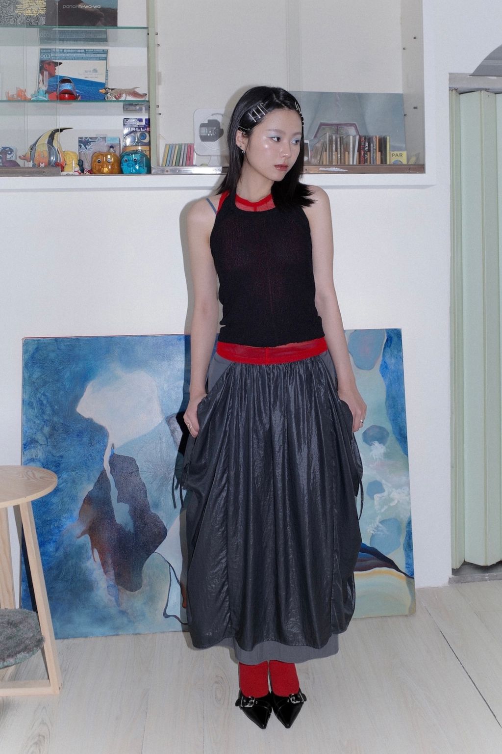 / 韓國設計師品牌 / 雙層抽皺設計花苞裙 - 黑色 / 卡其色