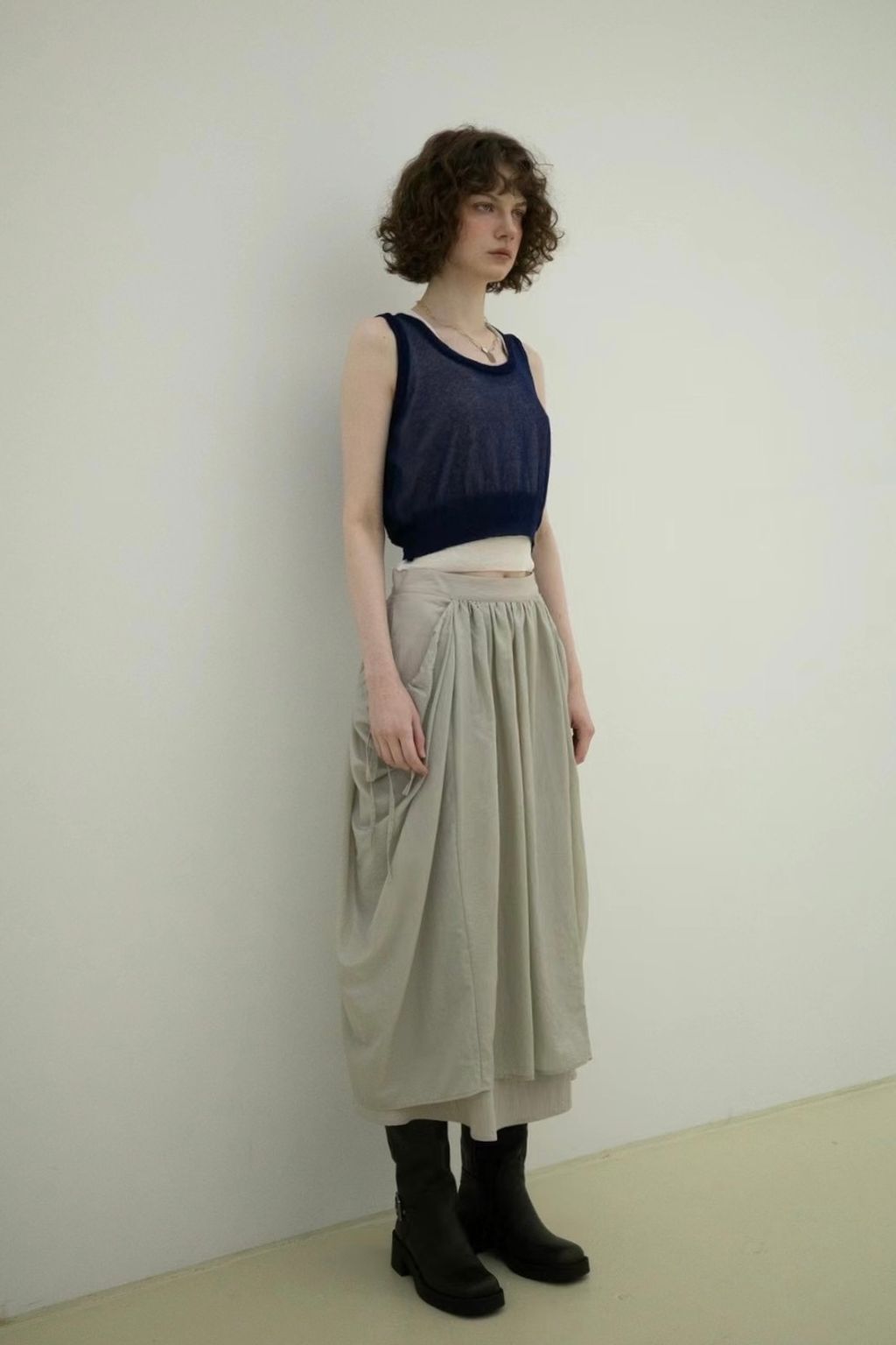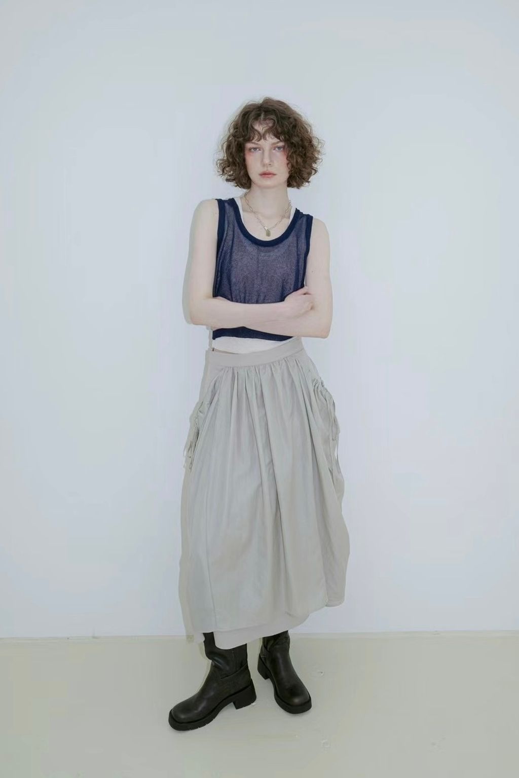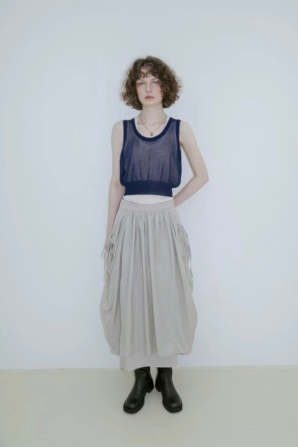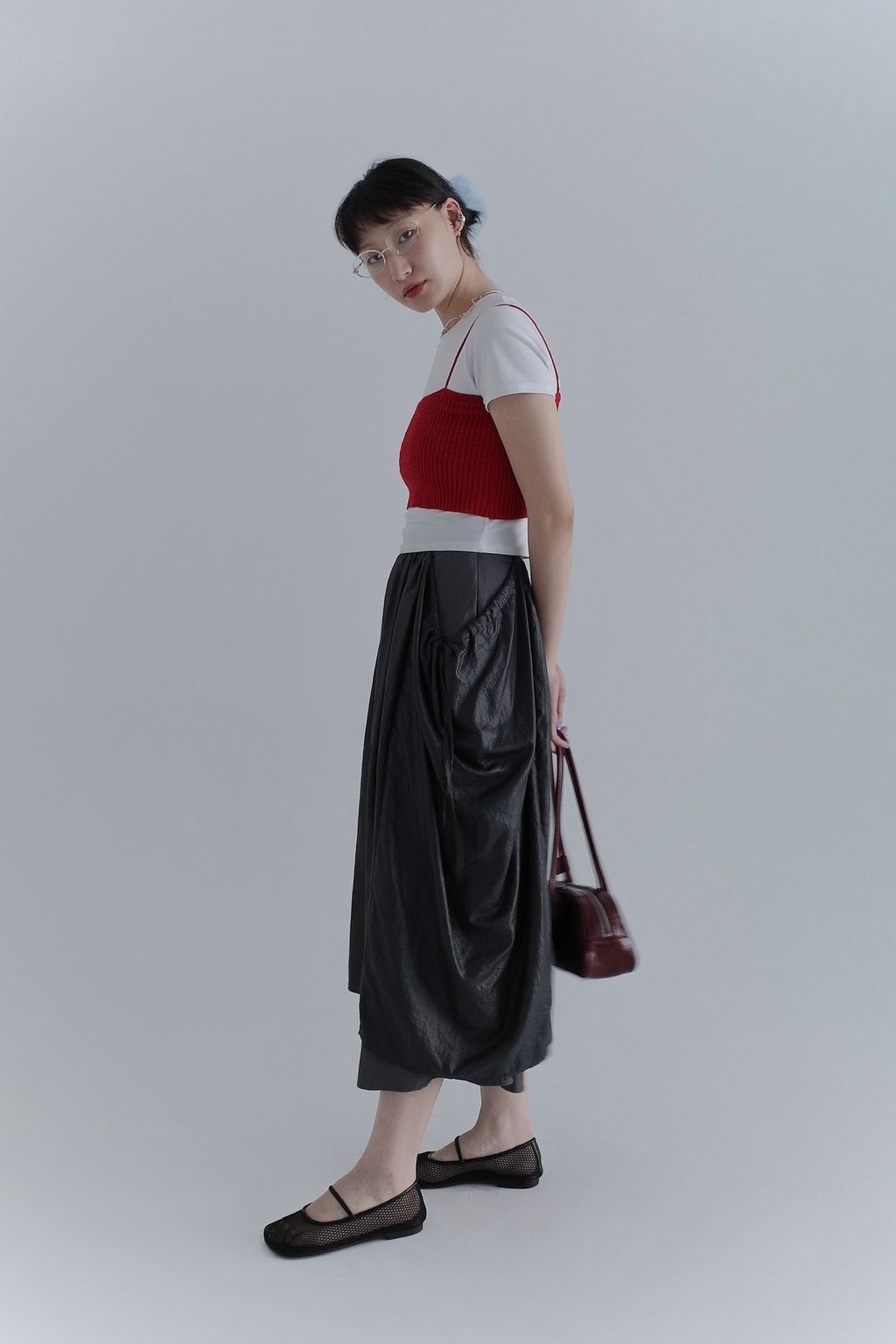 / 韓國設計師品牌 / 雙層抽皺設計花苞裙 - 黑色 / 卡其色