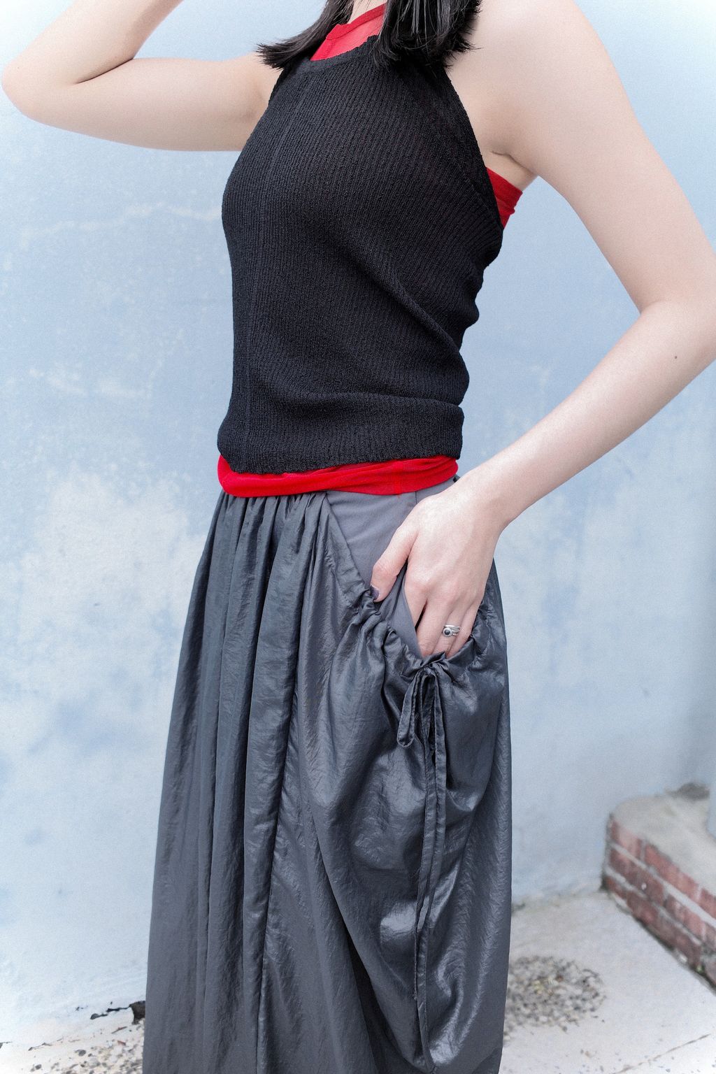 Double-layered Ruffled Bud Skirt - Black / Khaki