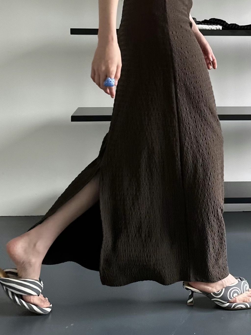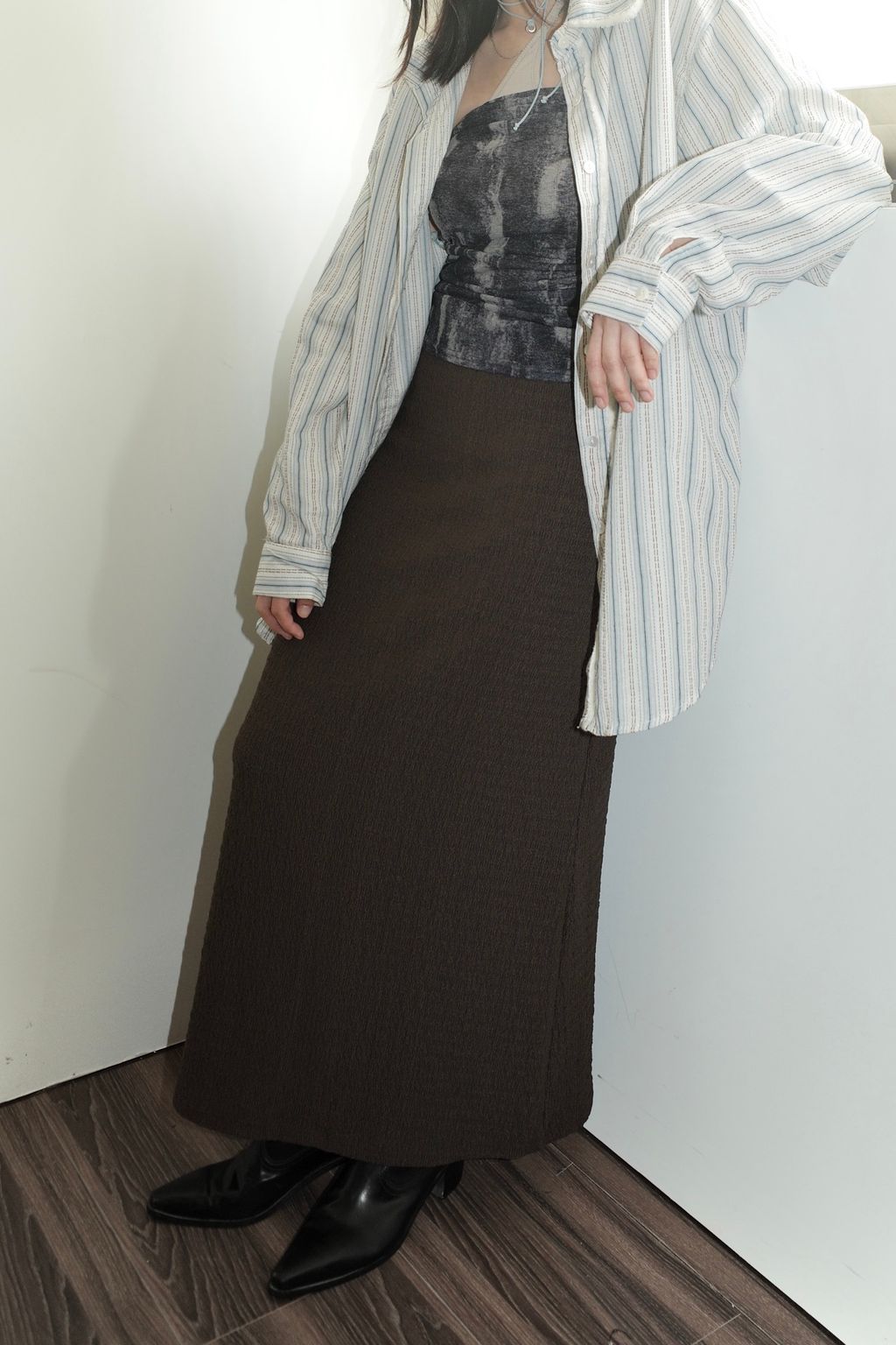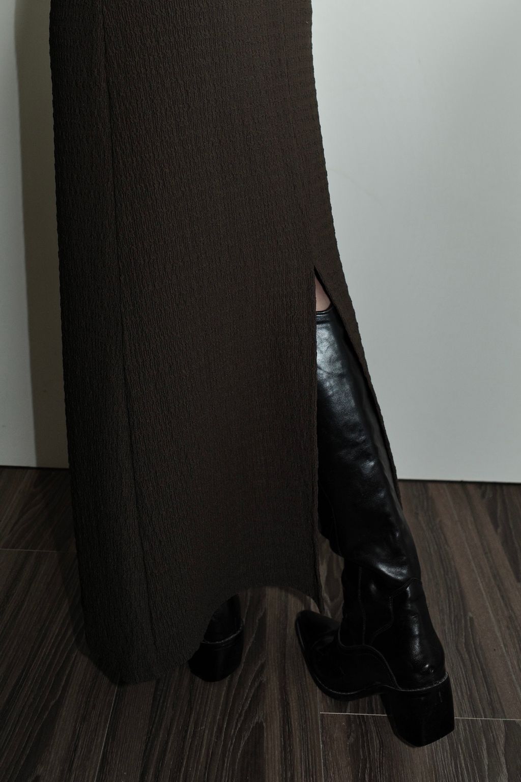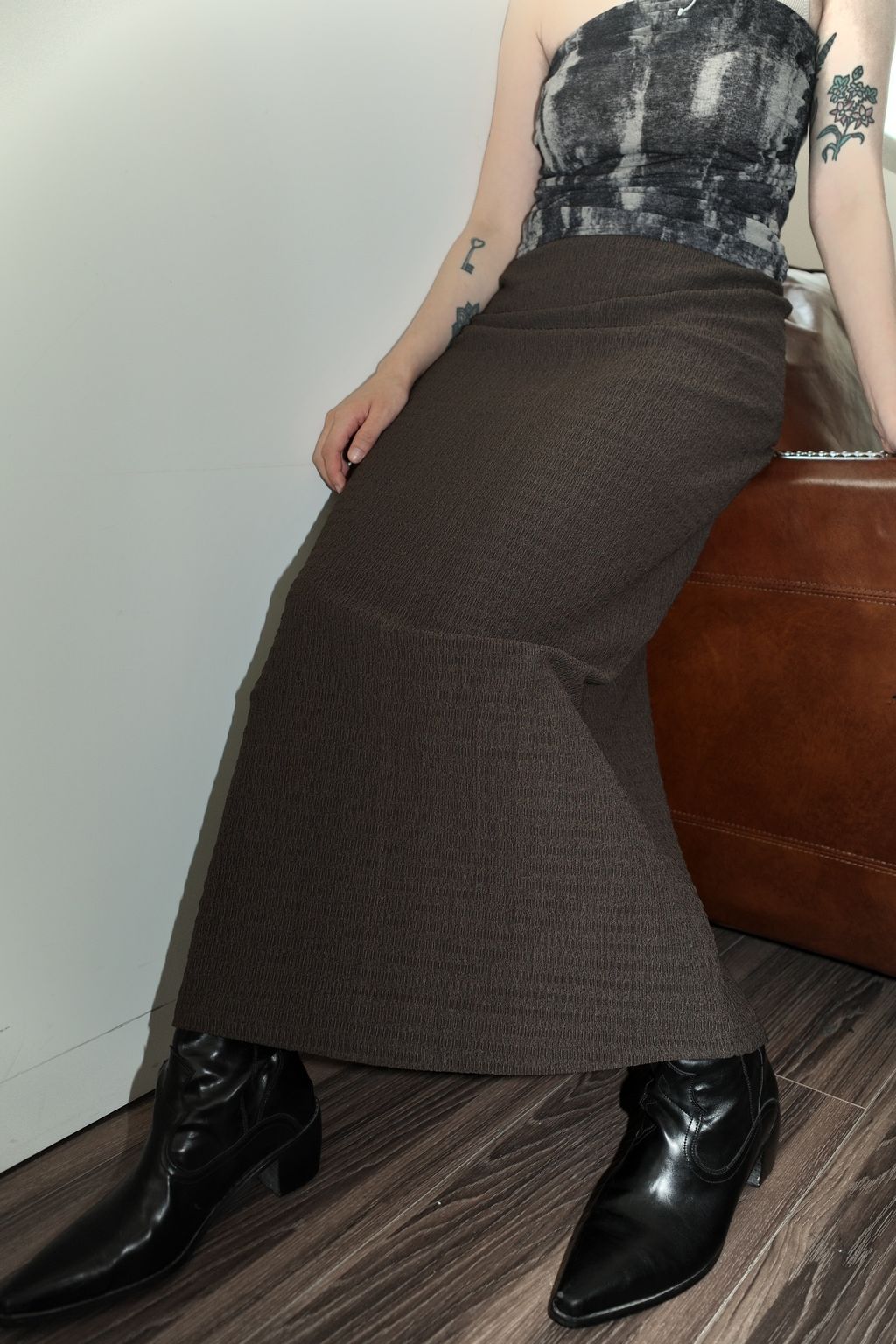 / 韓國設計師品牌 /質感木紋修身長裙