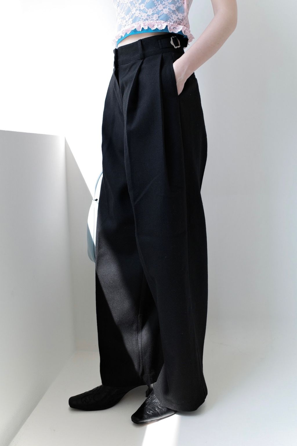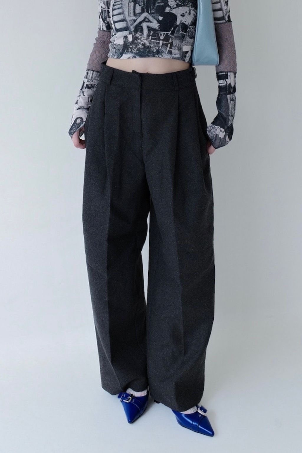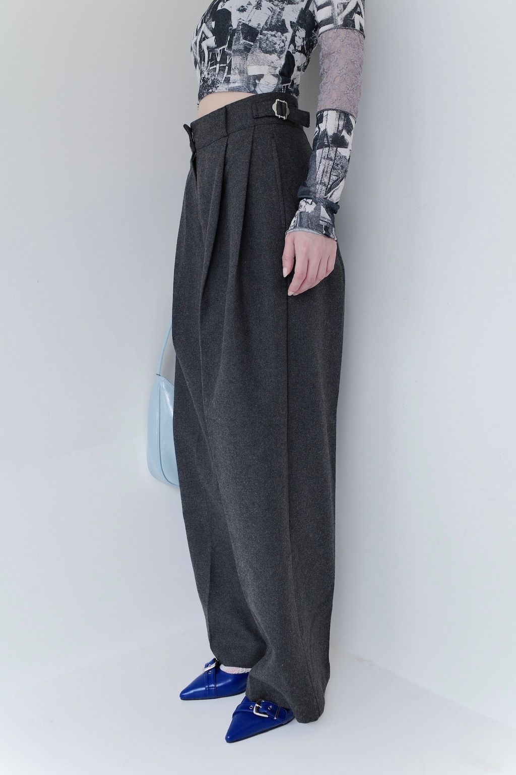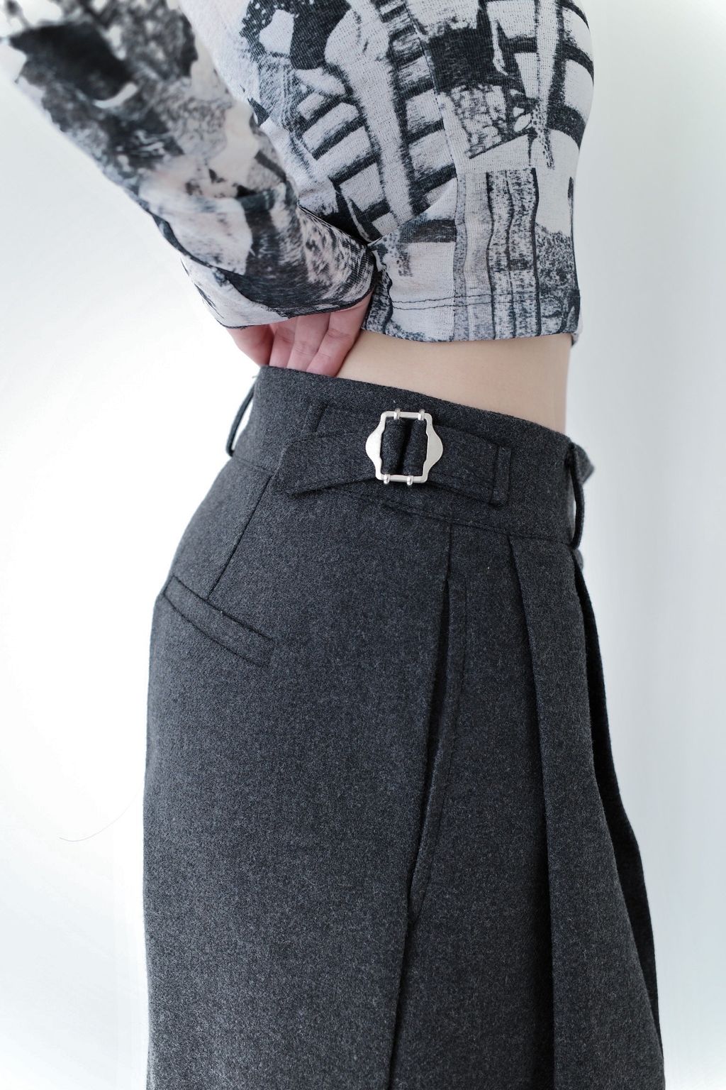 / 韓國設計師品牌 / 復古腰扣設計毛呢打折褲 - 黑色 / 灰色