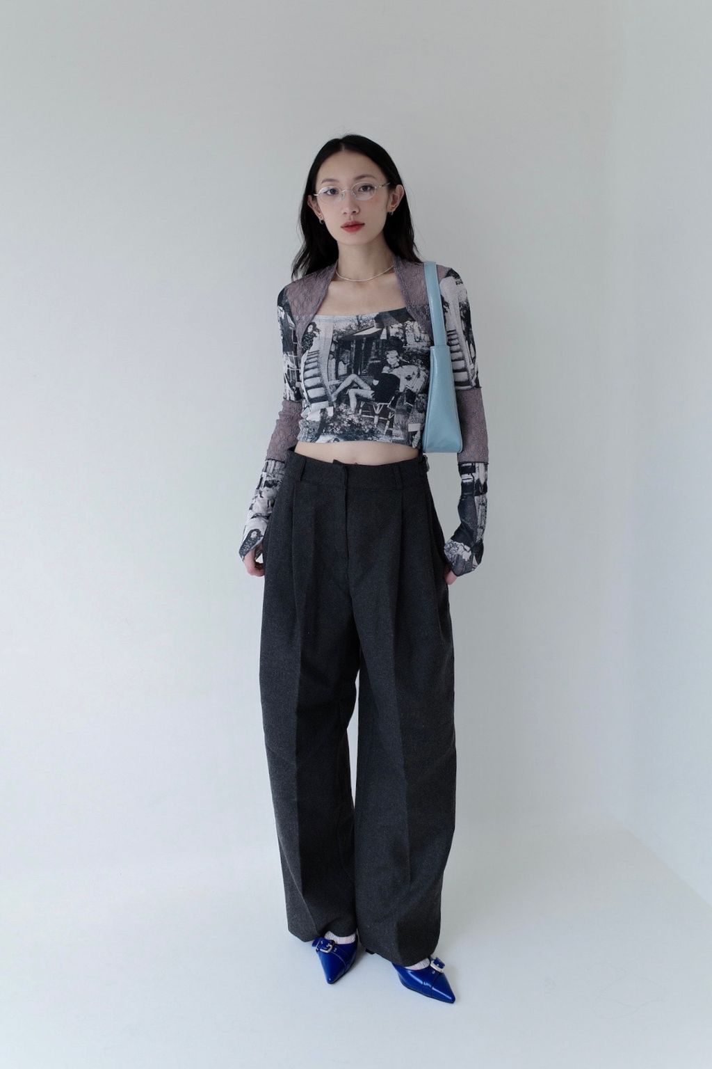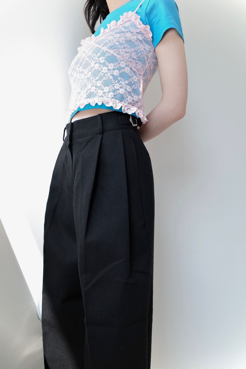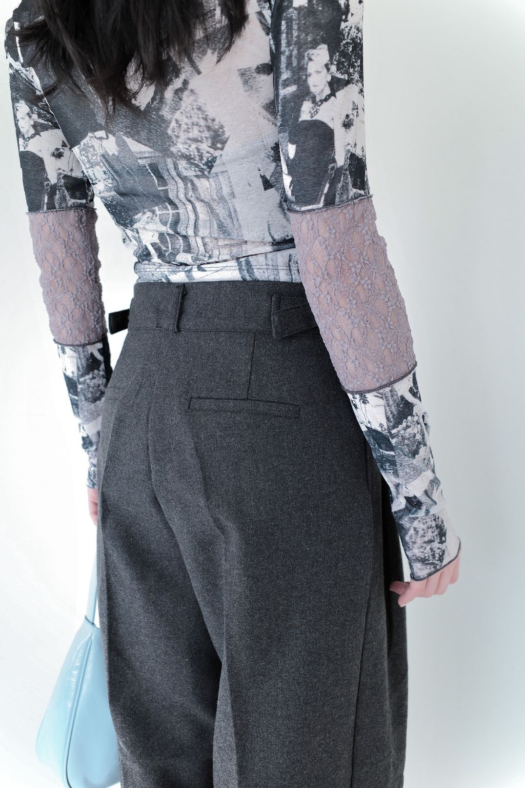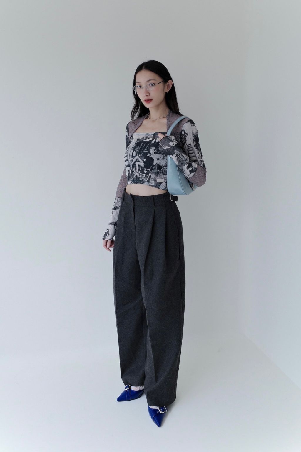 / 韓國設計師品牌 / 復古腰扣設計毛呢打折褲 - 黑色 / 灰色