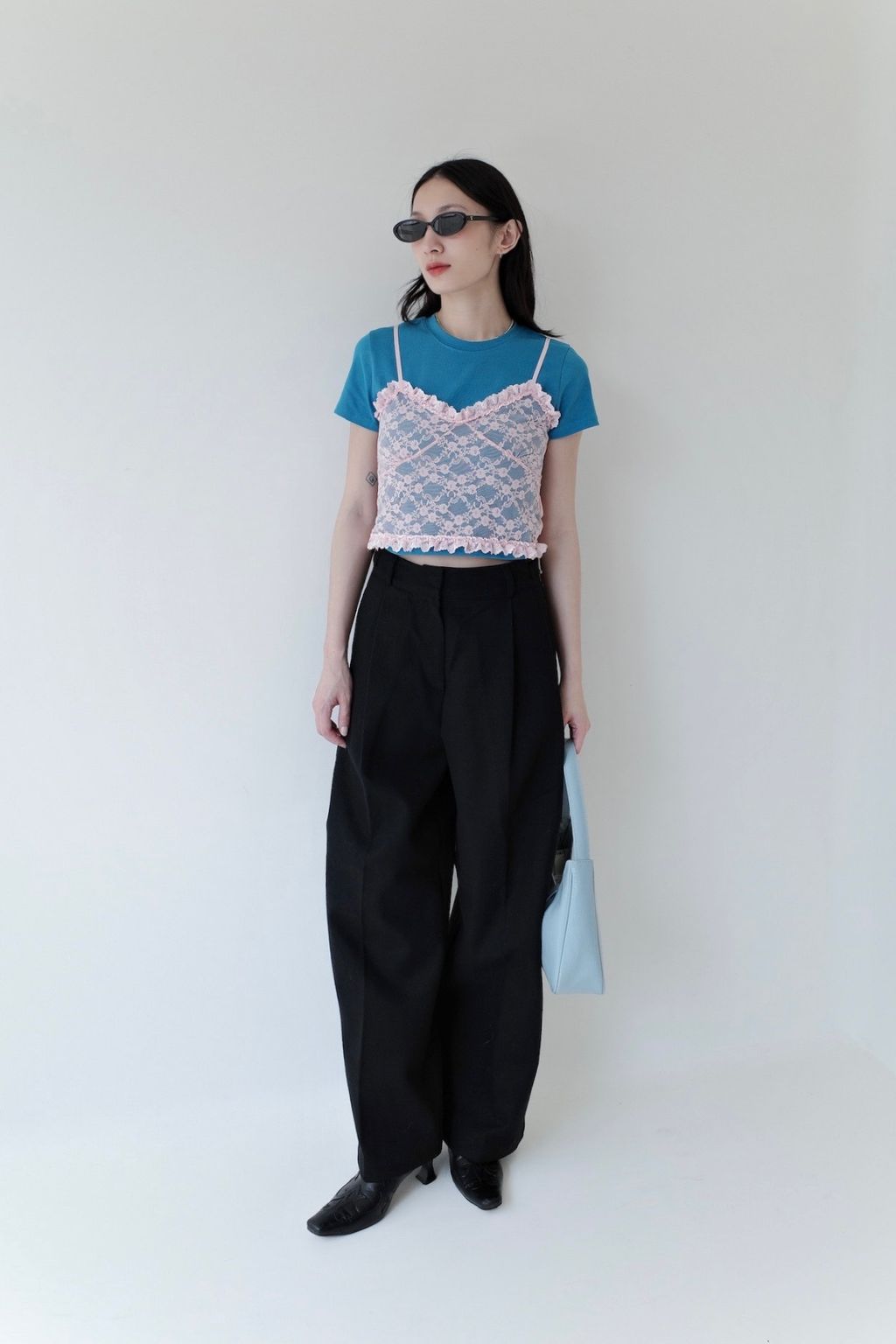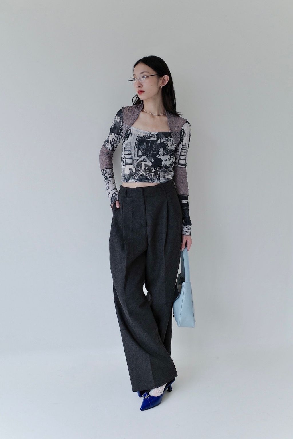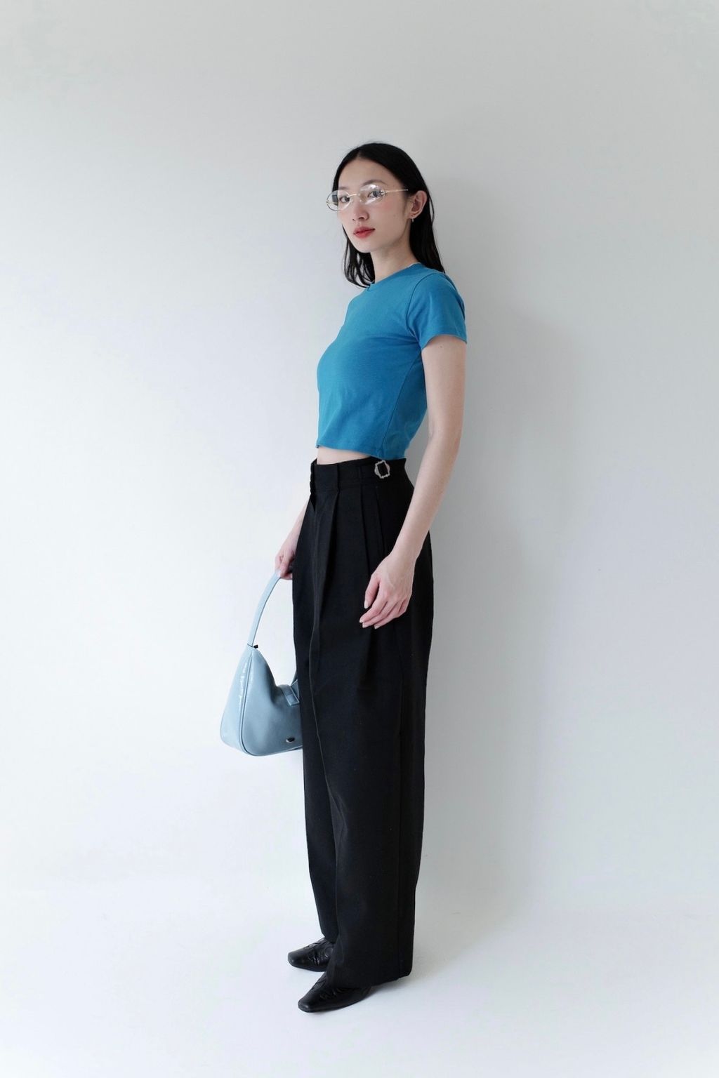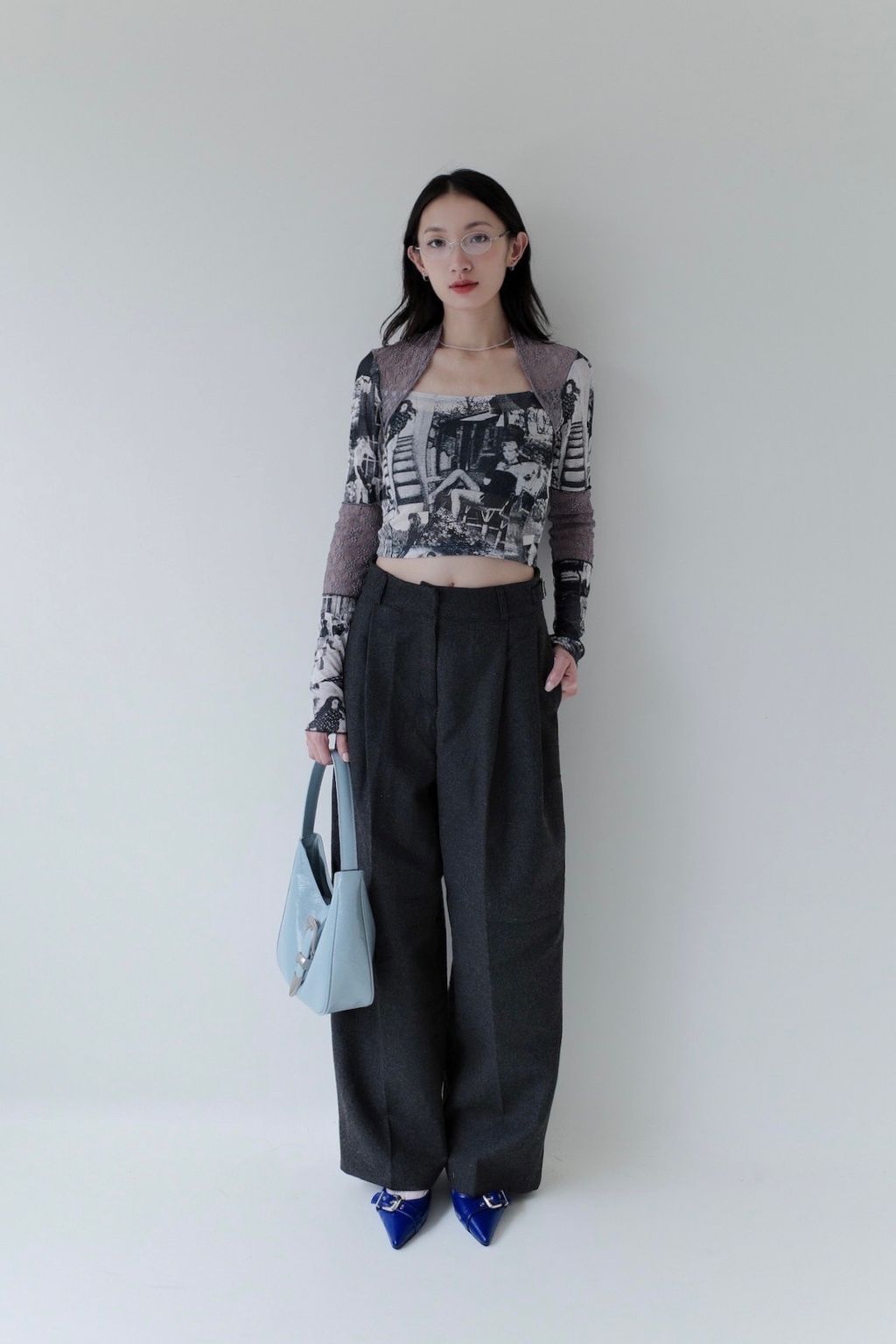 / 韓國設計師品牌 / 復古腰扣設計毛呢打折褲 - 黑色 / 灰色