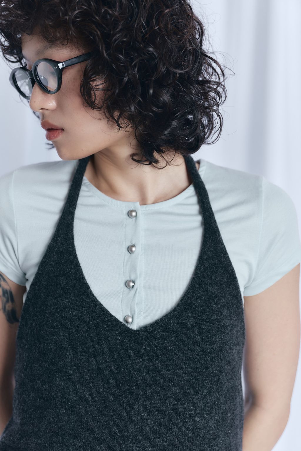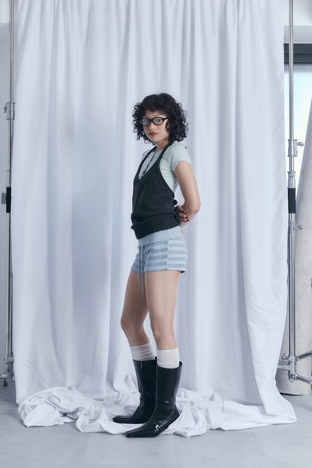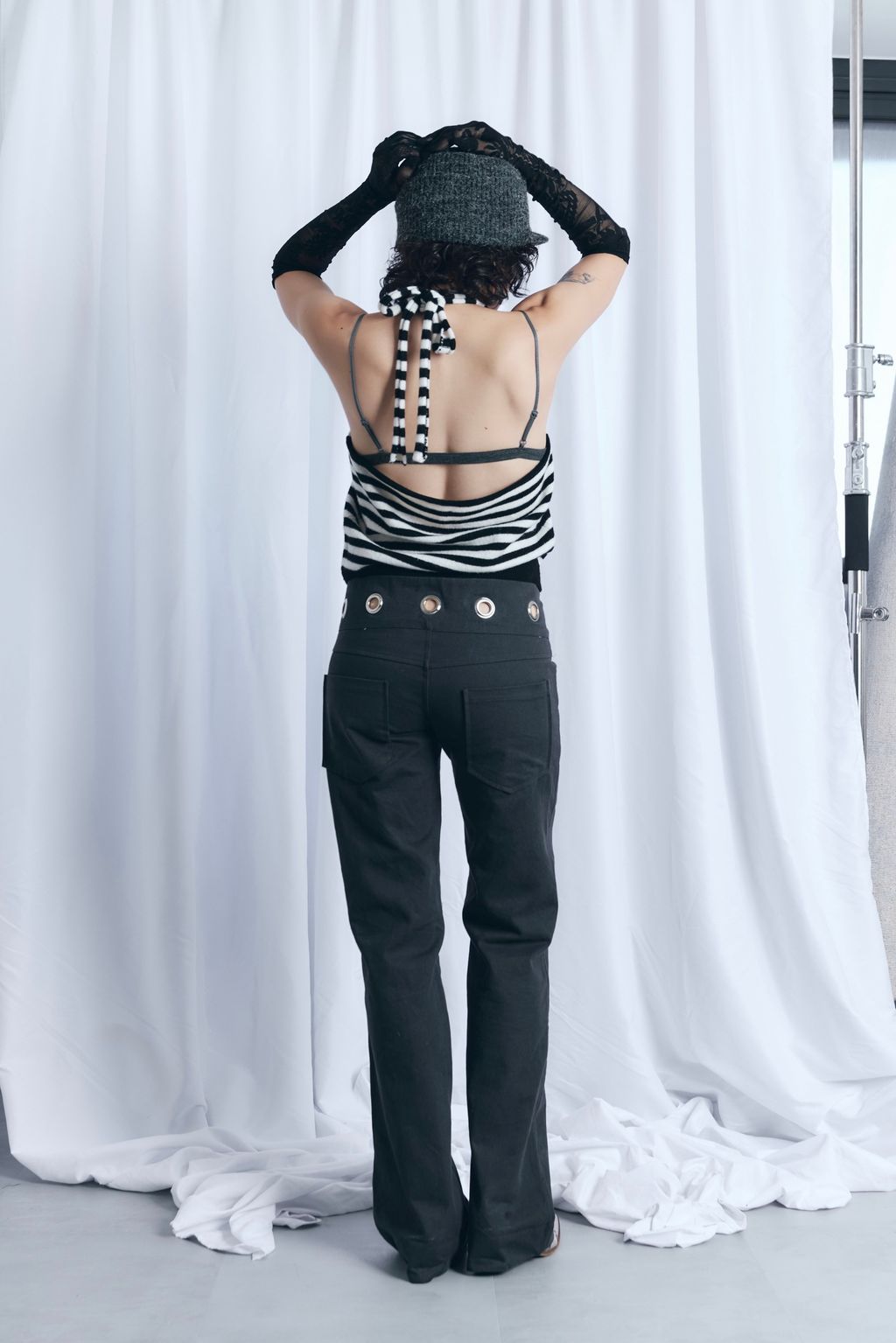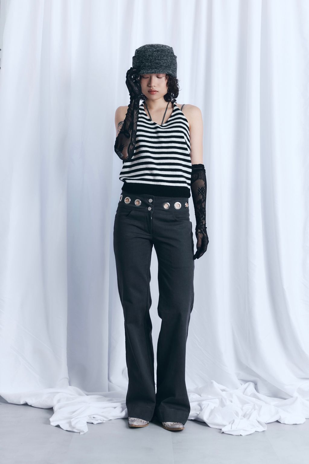 / 韓國設計師品牌 / 暖呼繞脖綁帶背心 - 炭灰 / 條紋