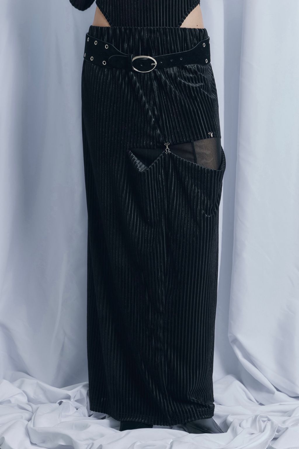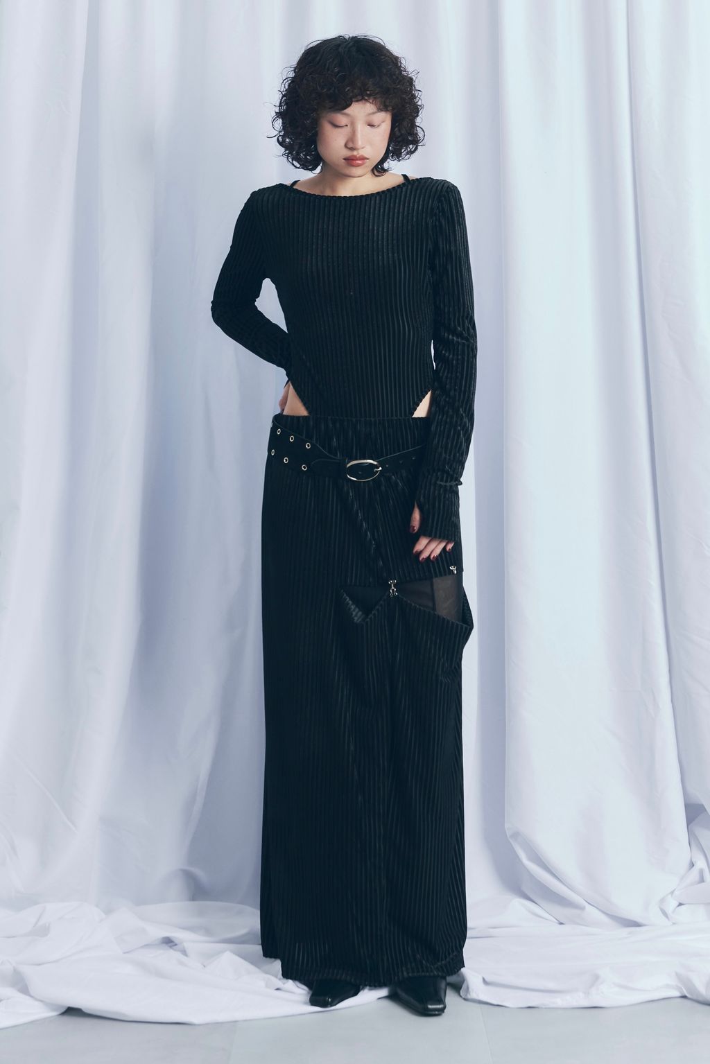 / BB.MADE / 個性切破條紋休閒長裙 (Free Size)