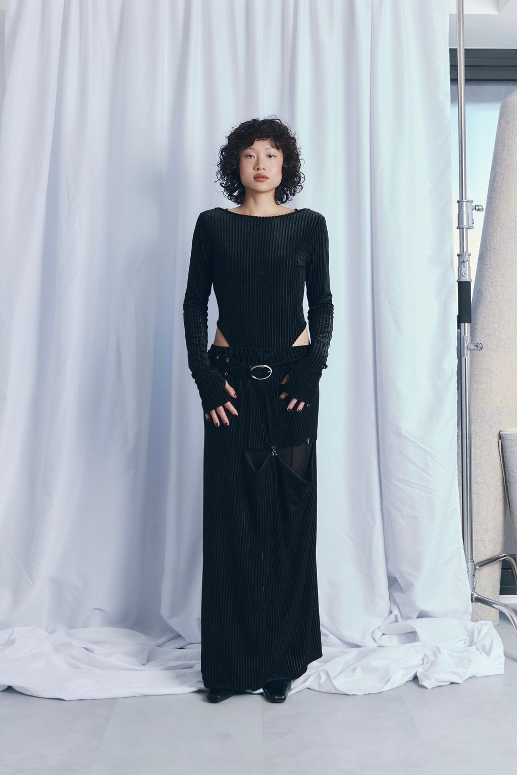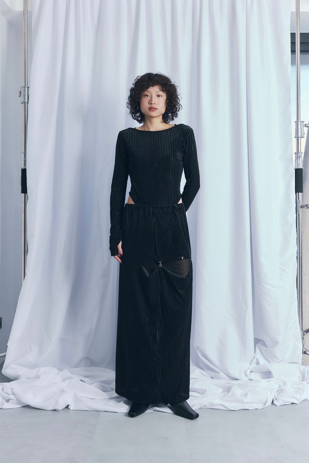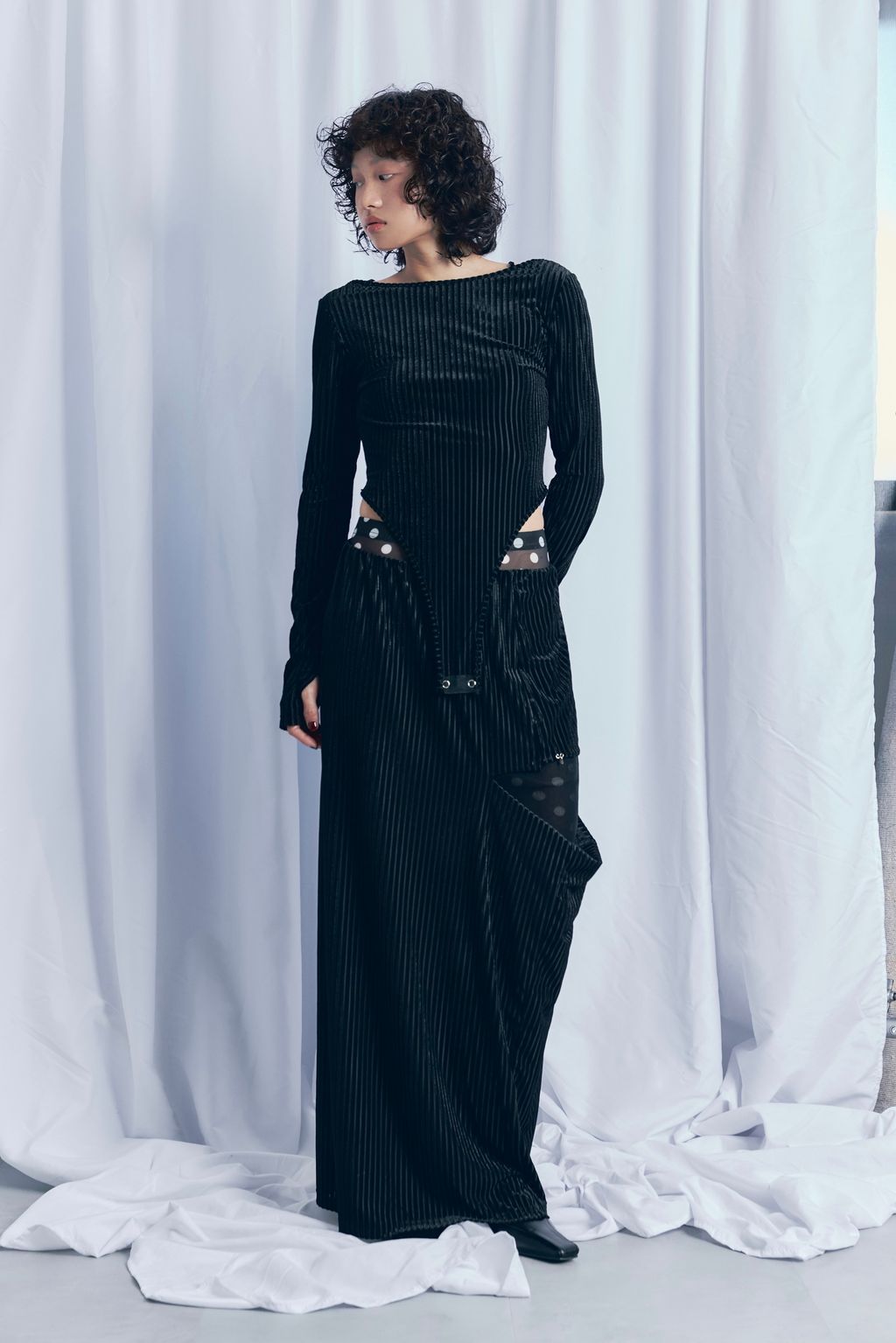 / BB.MADE / Unique Ripped Striped Casual Maxi Dress