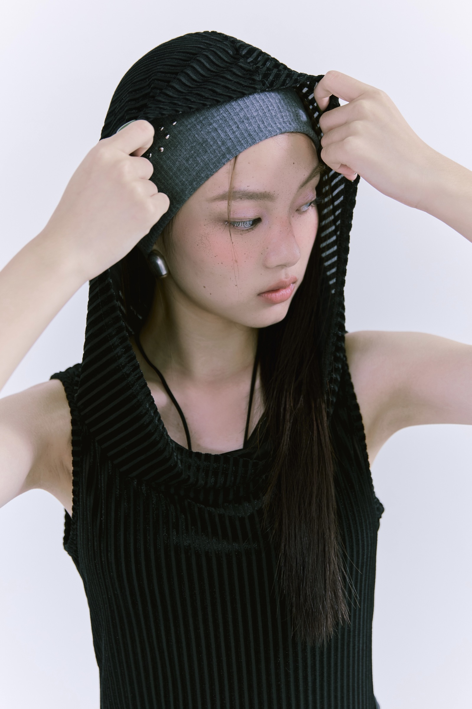 / BB. MADE / 時髦條紋透膚連帽洋裝
