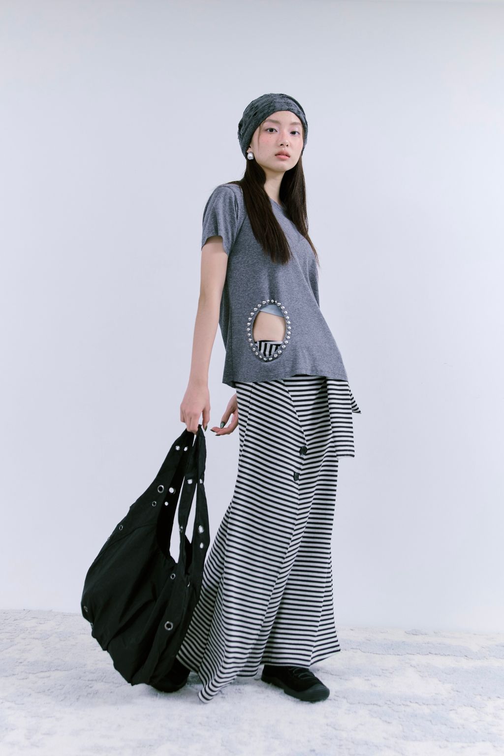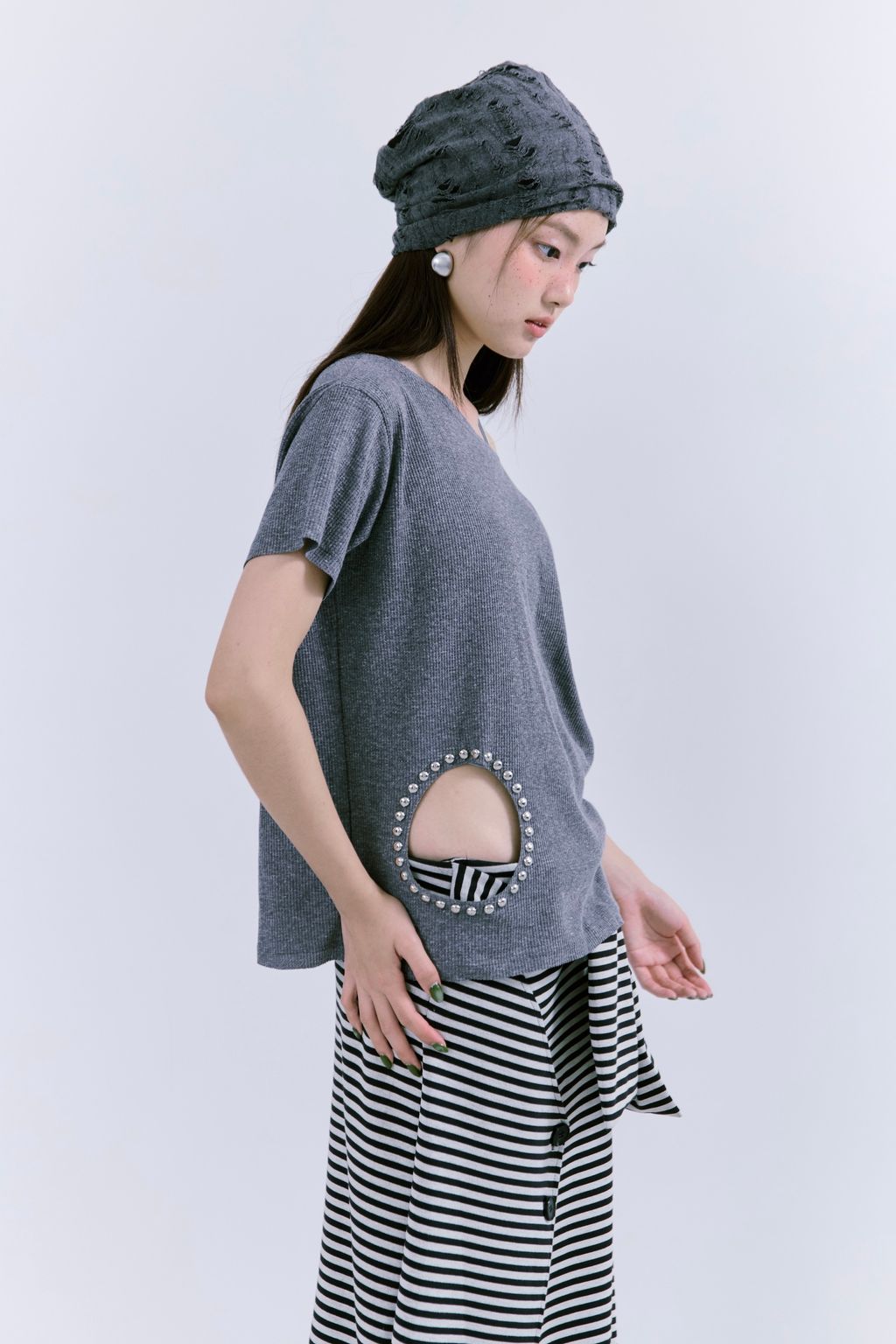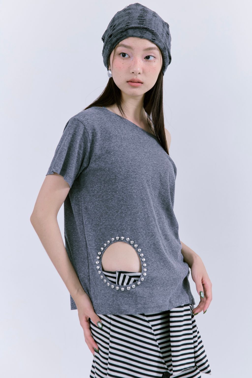 / 韓國設計師品牌 / 側挖洞金屬設計短袖上衣 - 灰