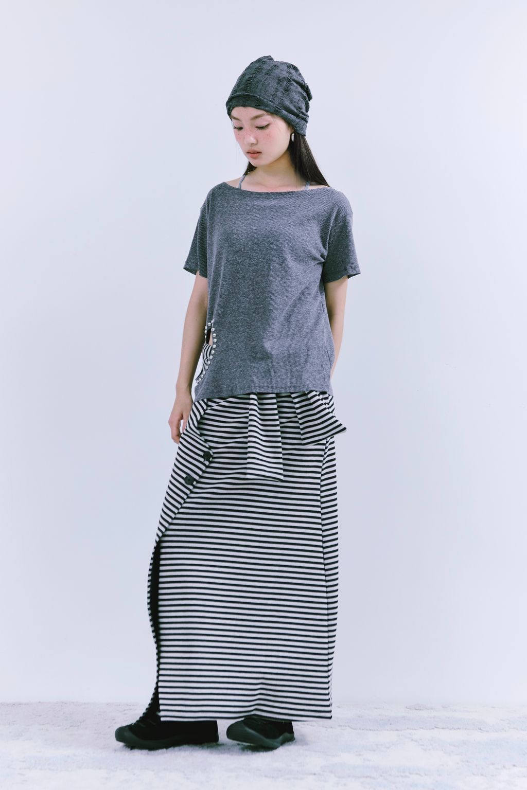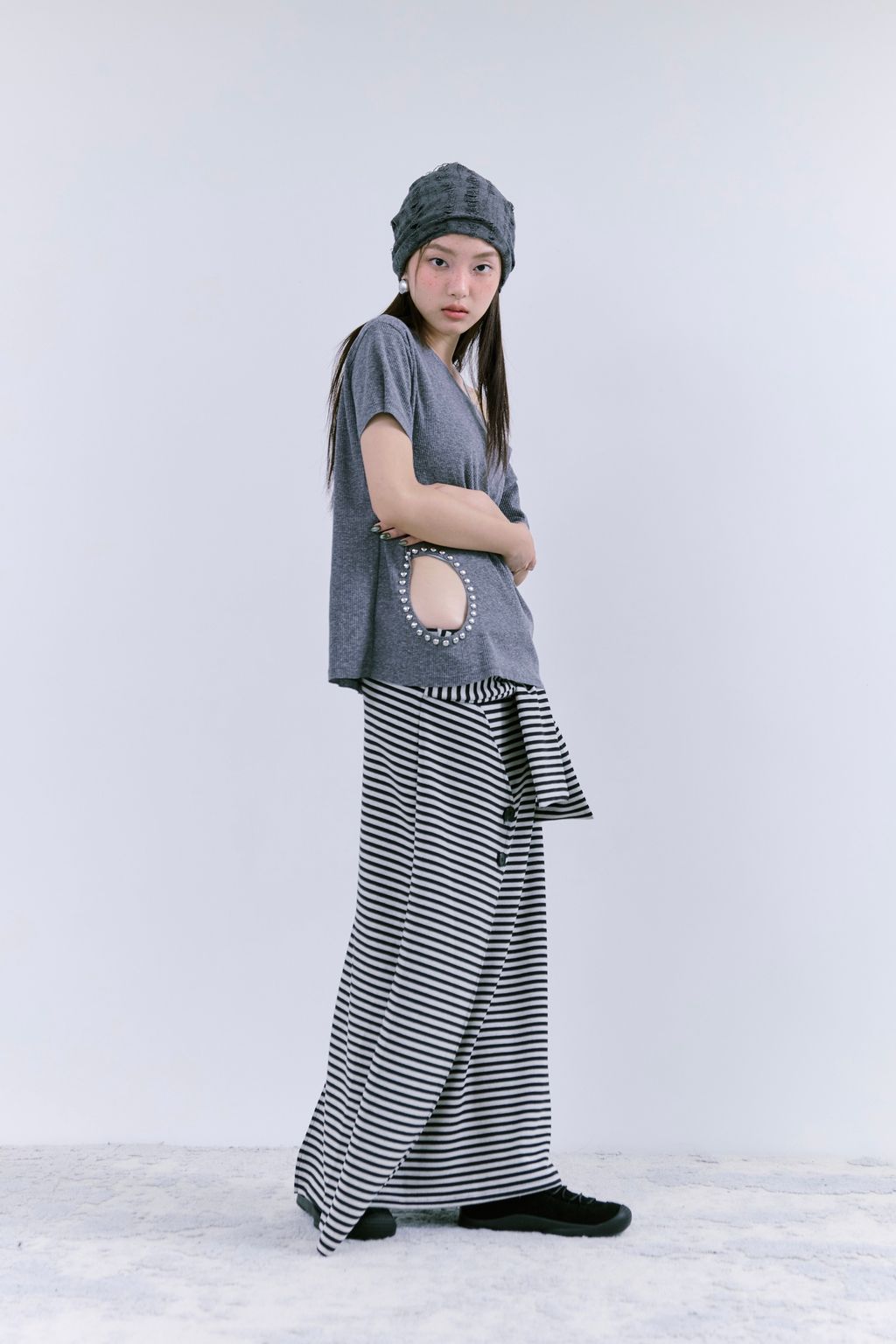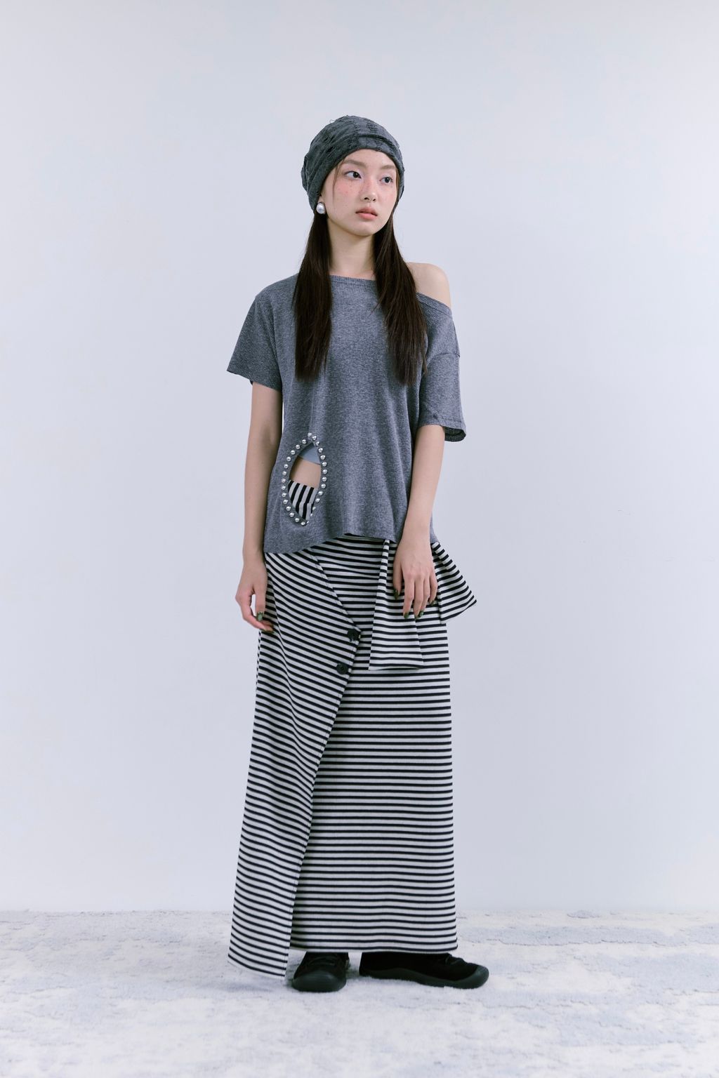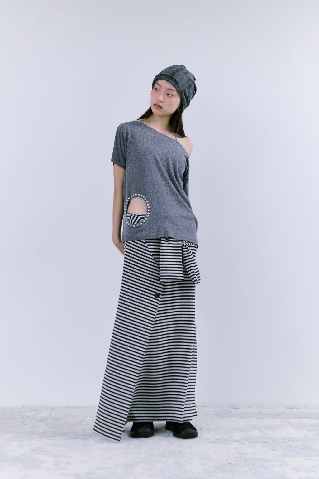 / 韓國設計師品牌 / 側挖洞金屬設計短袖上衣 - 灰
