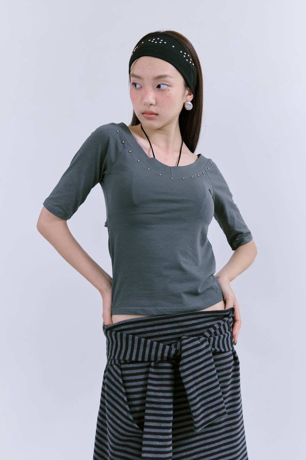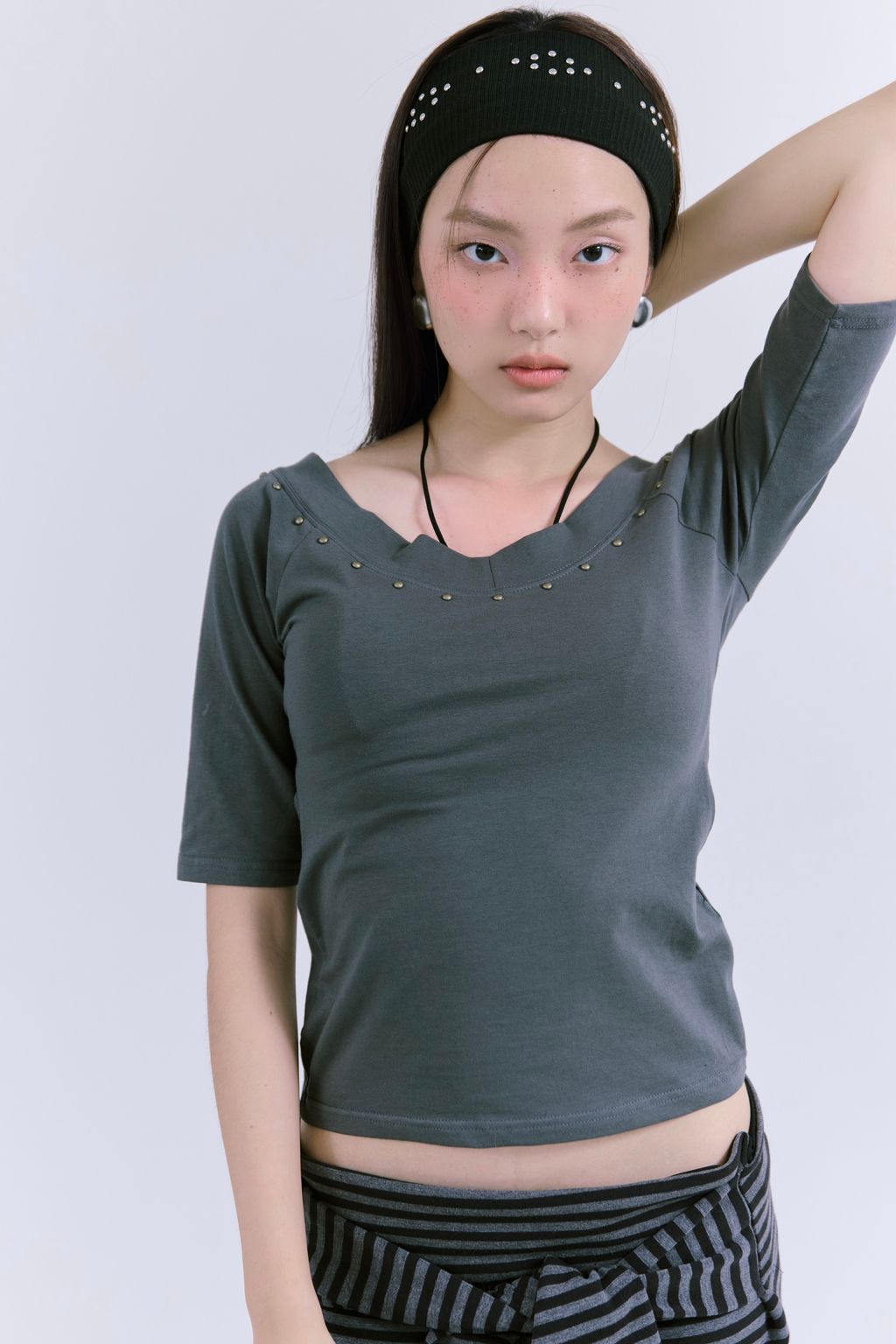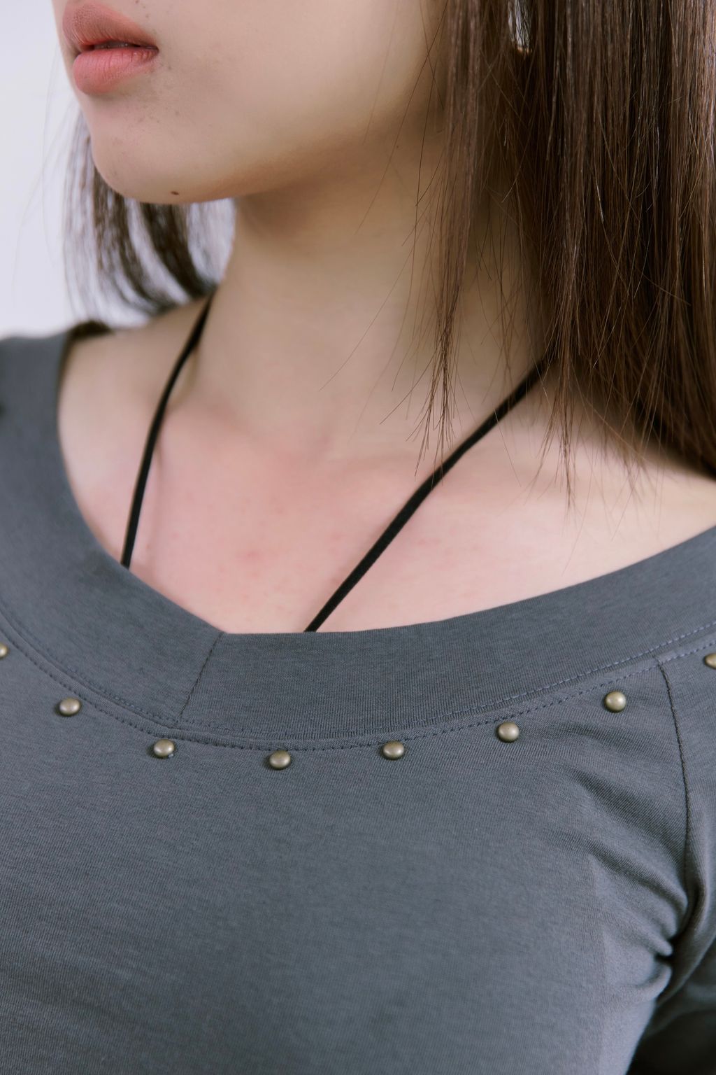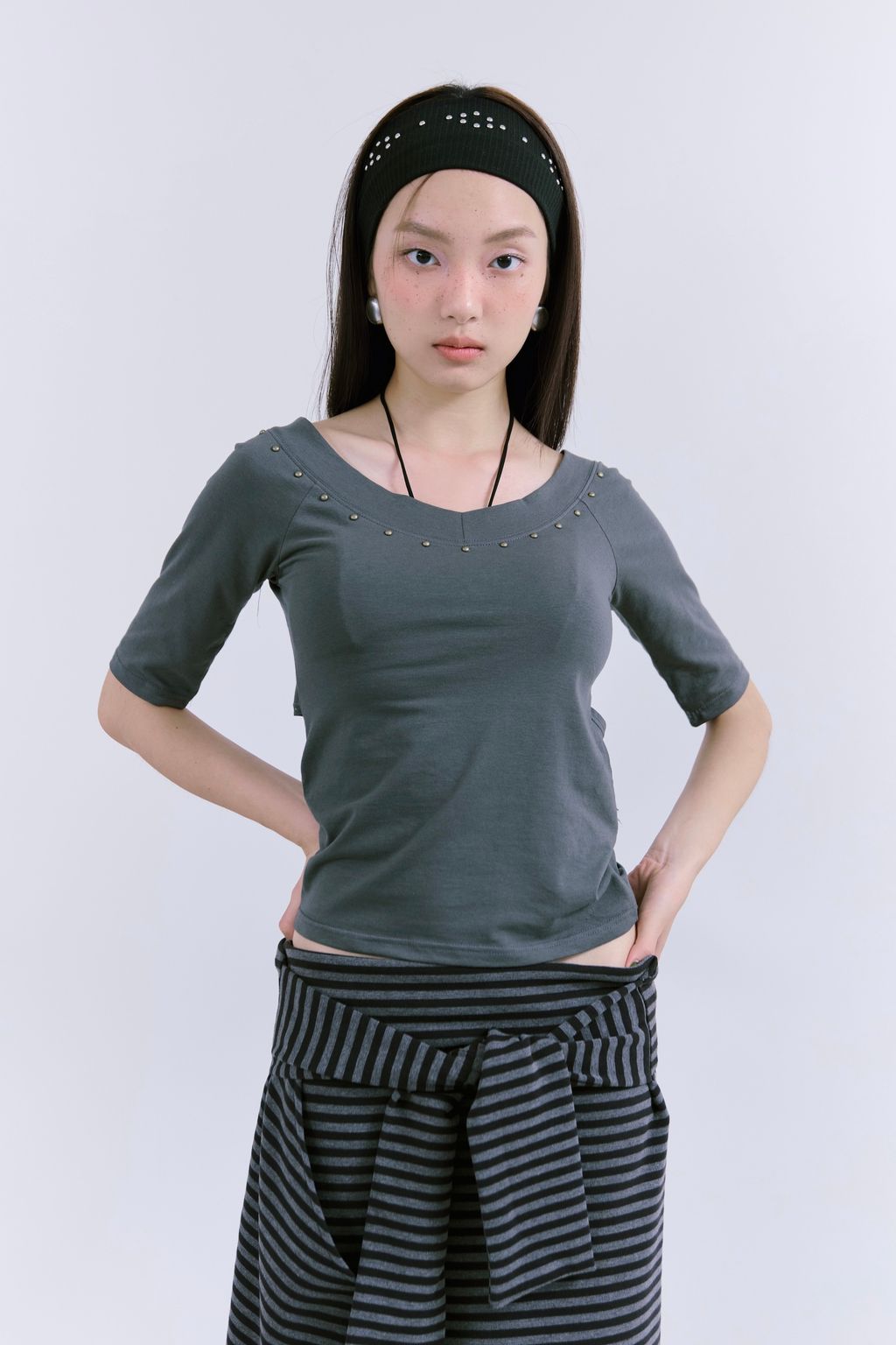 / 韓國設計師品牌 / 鉚釘設計後挖背上衣 - 淺灰 / 深灰