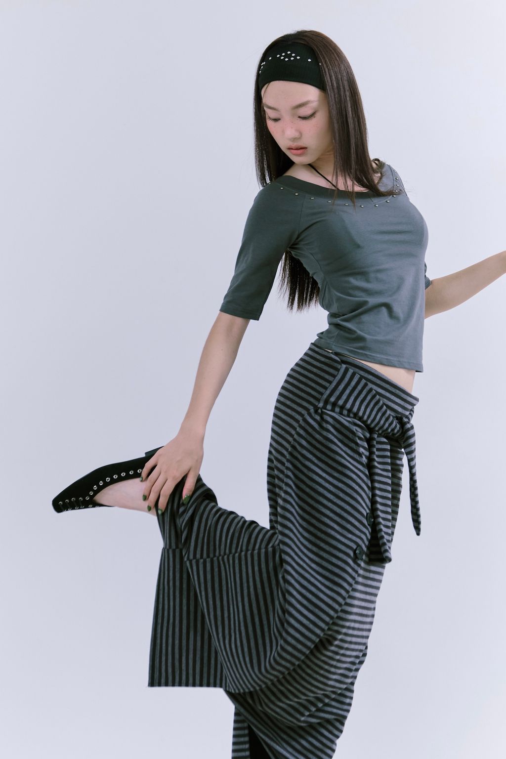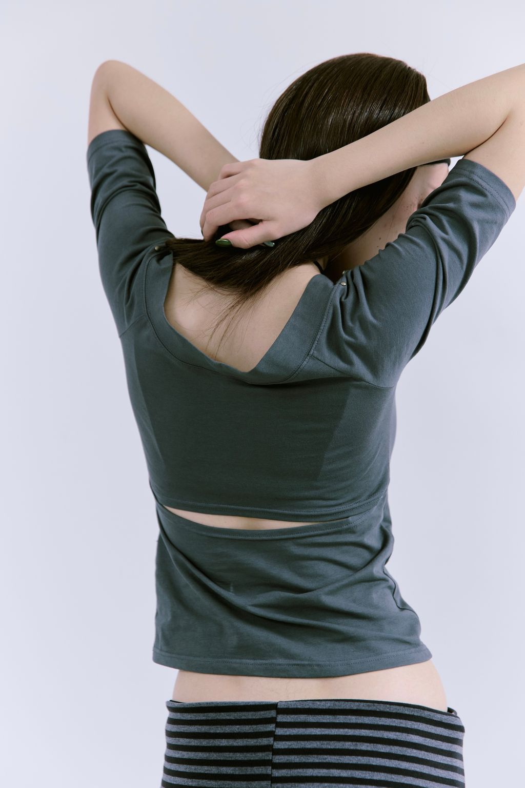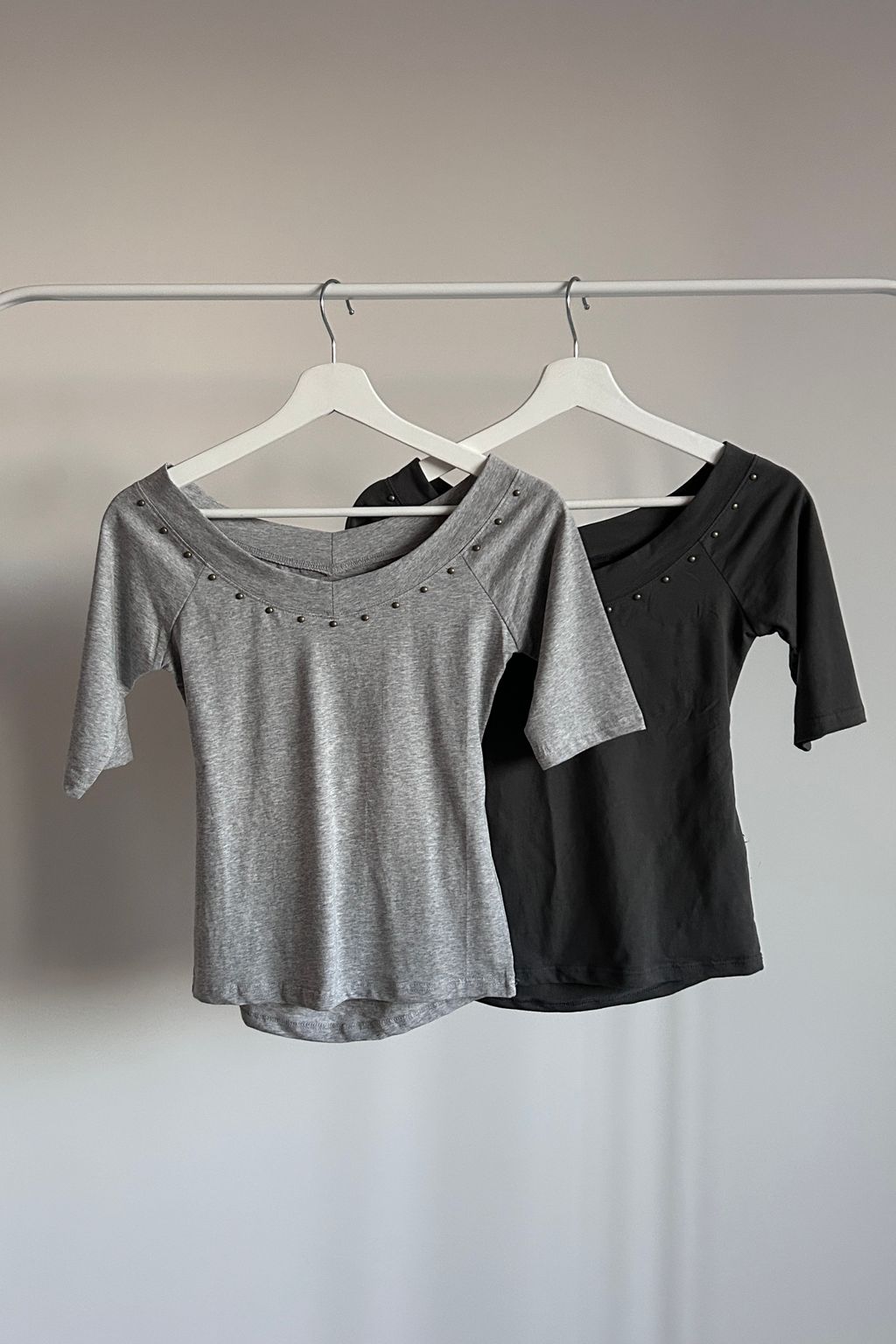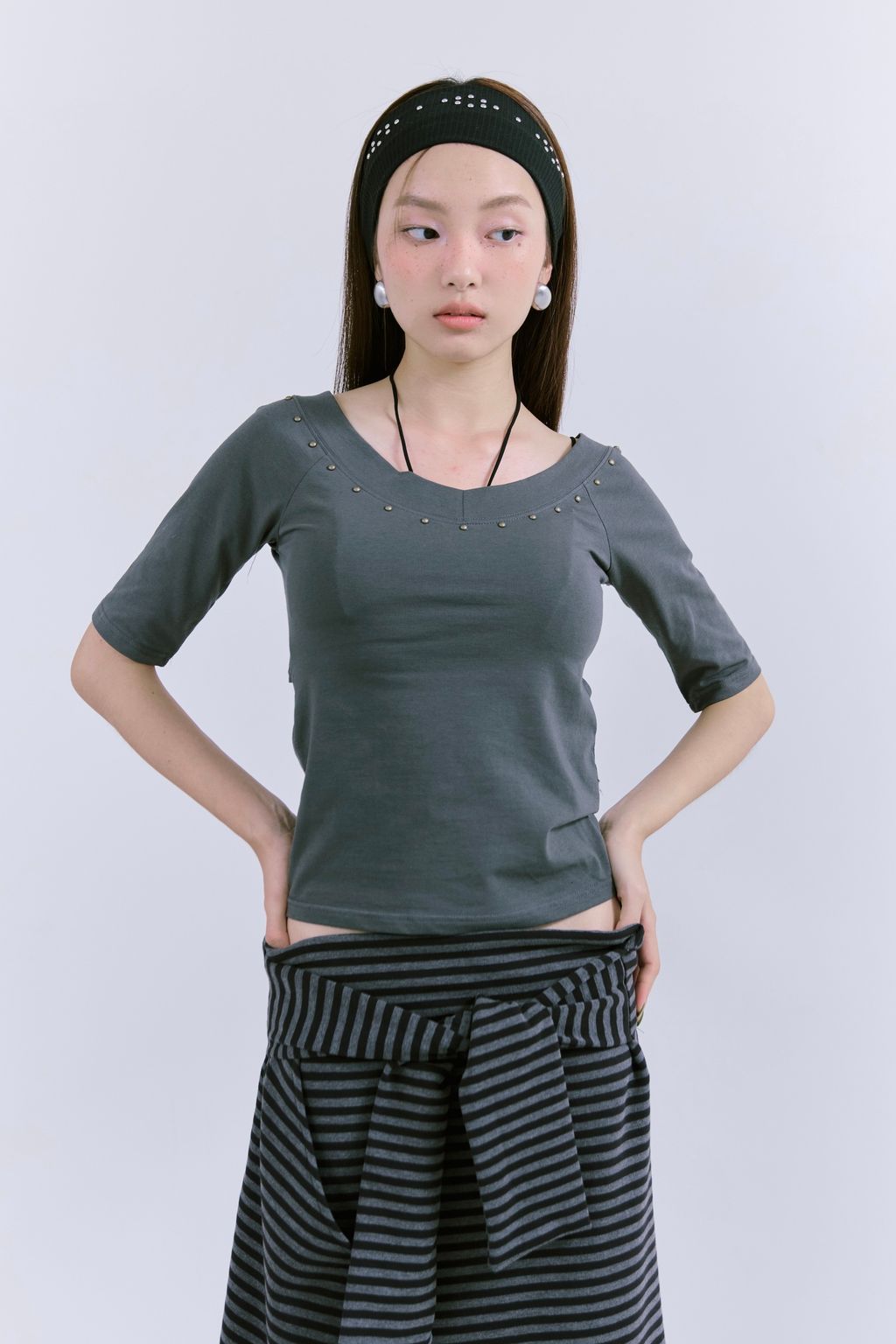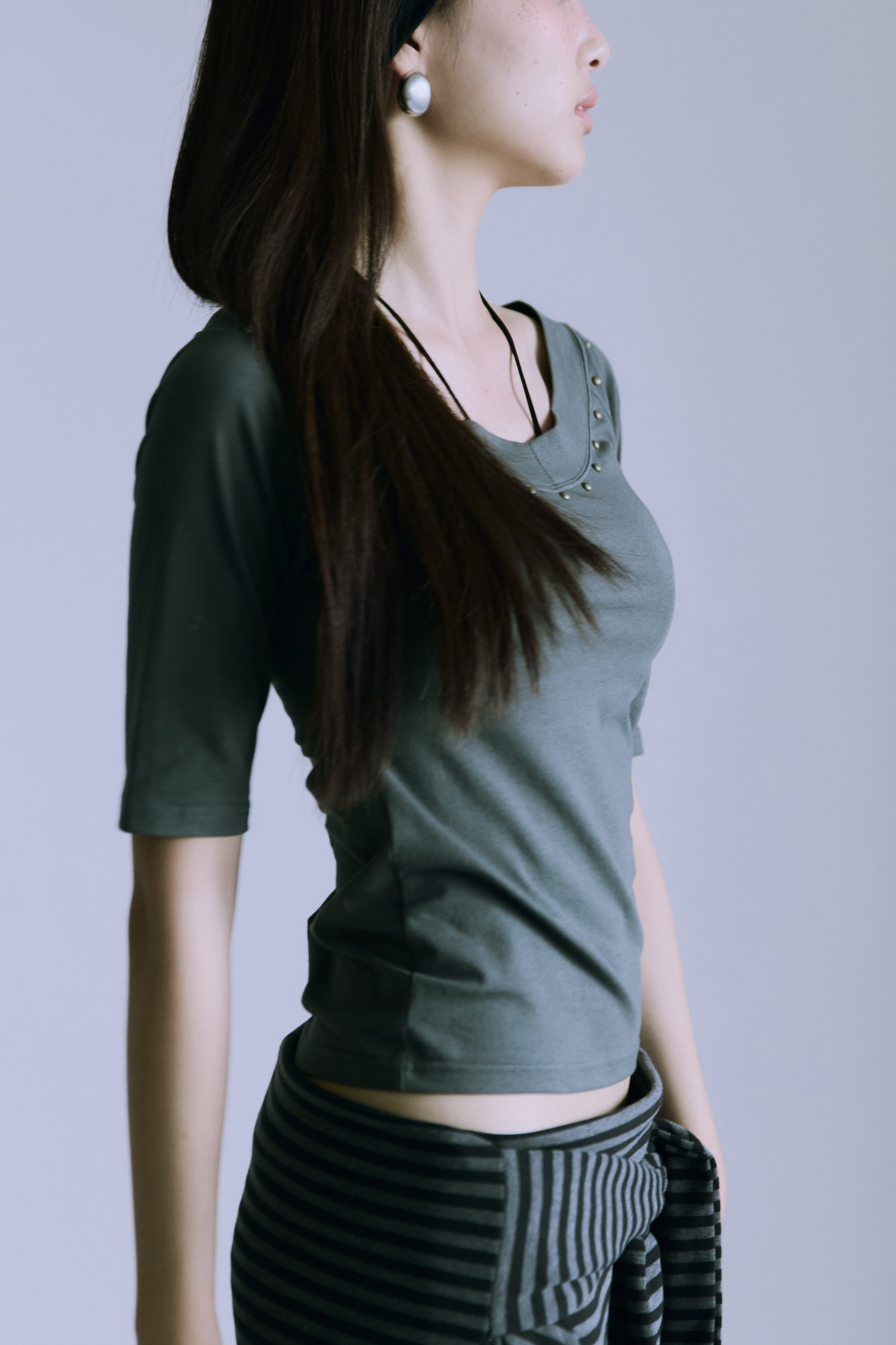 / 韓國設計師品牌 / 鉚釘設計後挖背上衣 - 淺灰 / 深灰
