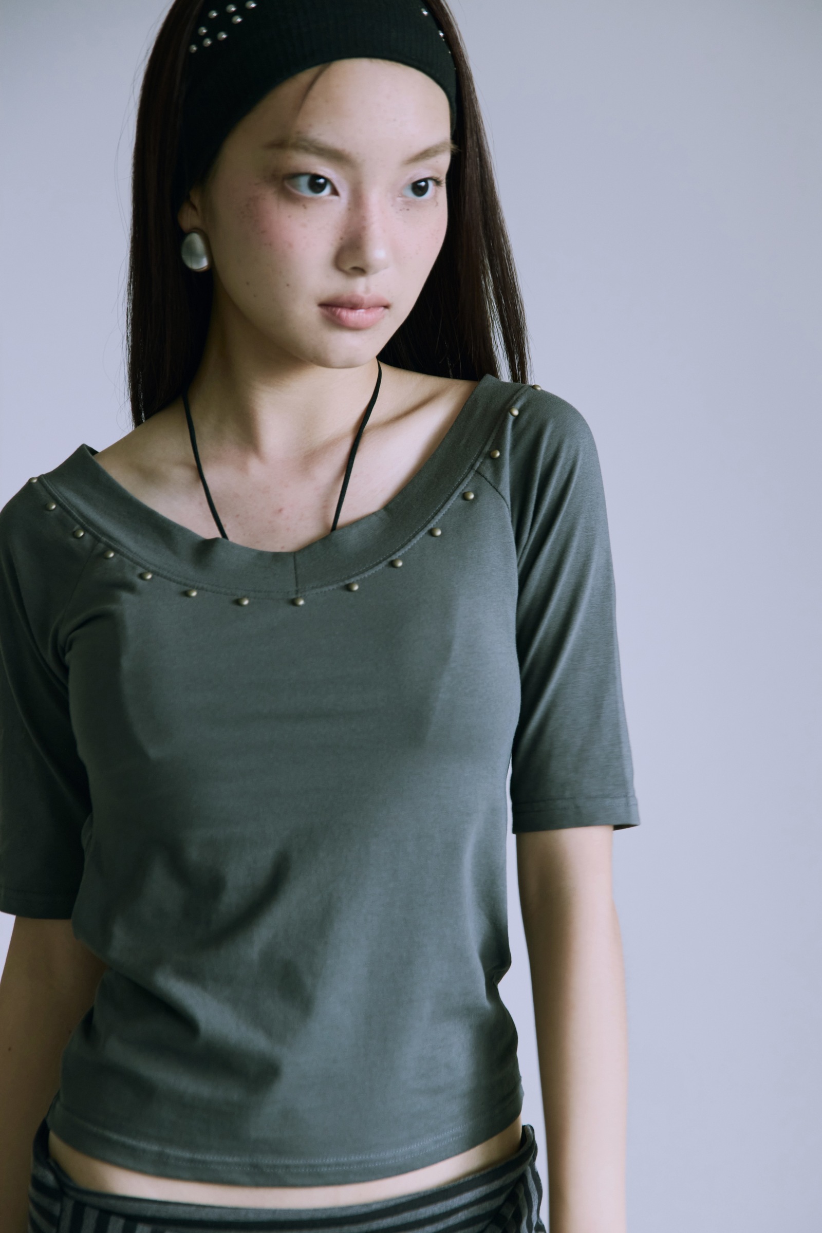 ( 2Colors!!! ) Rivet Design Cut-Back Top