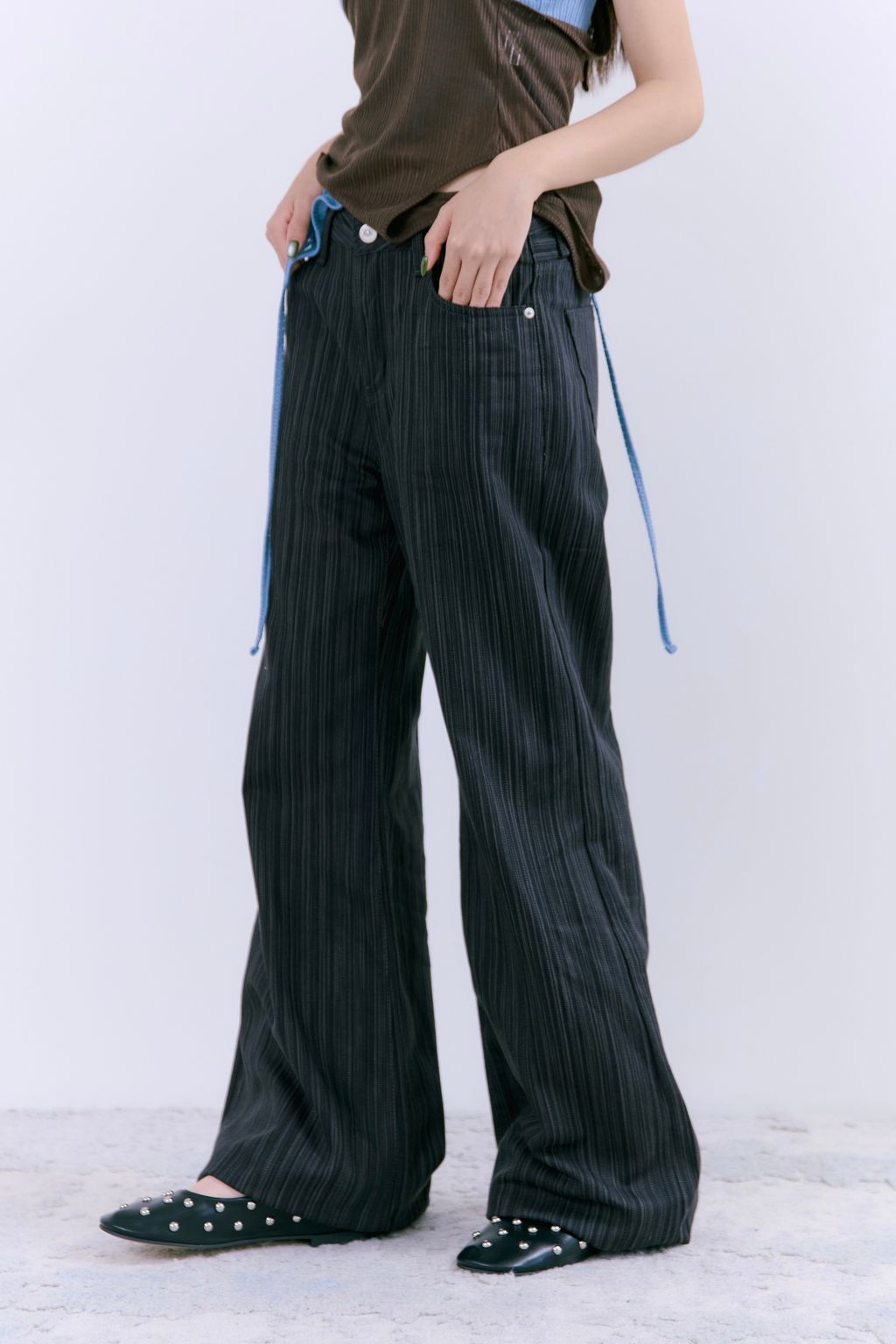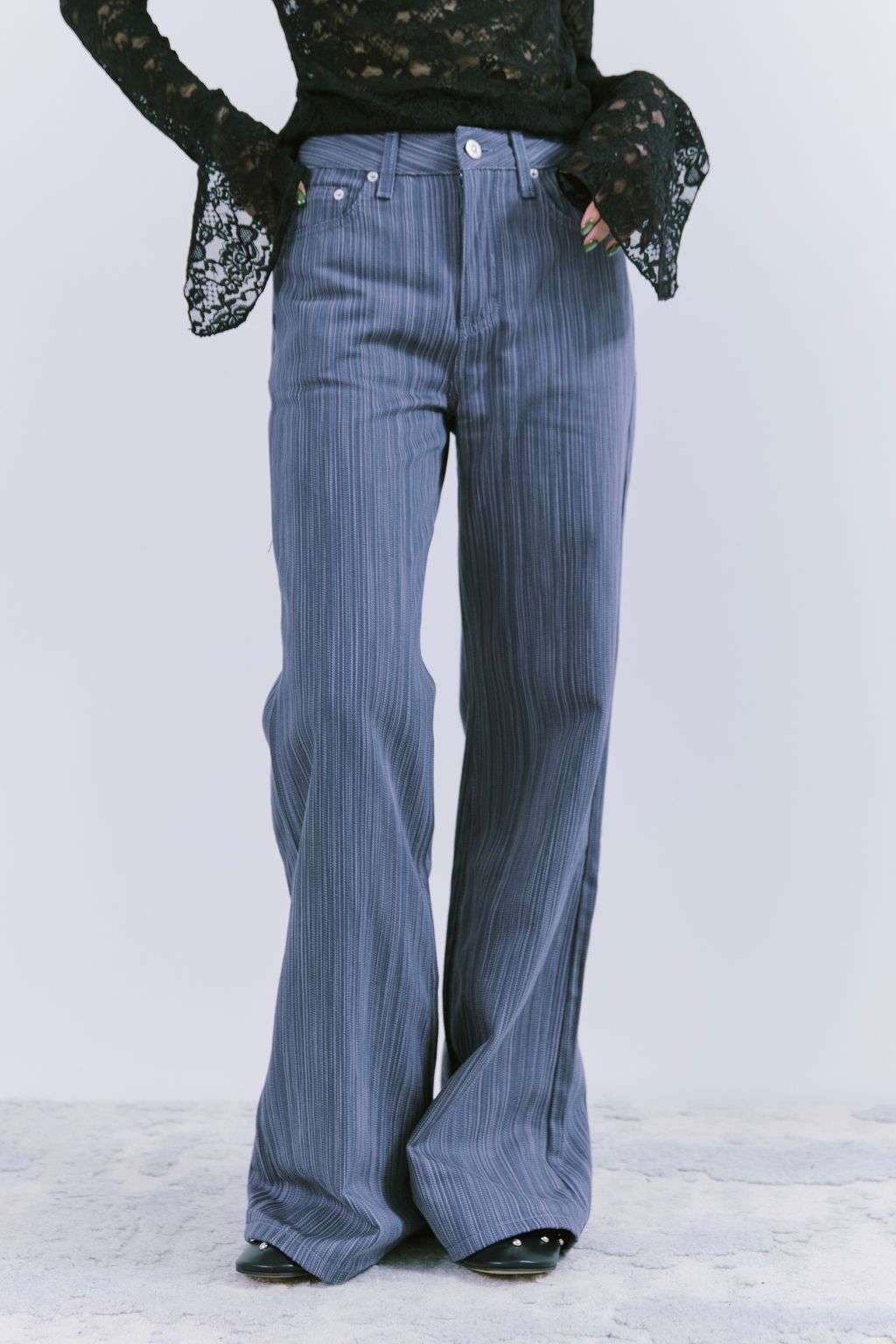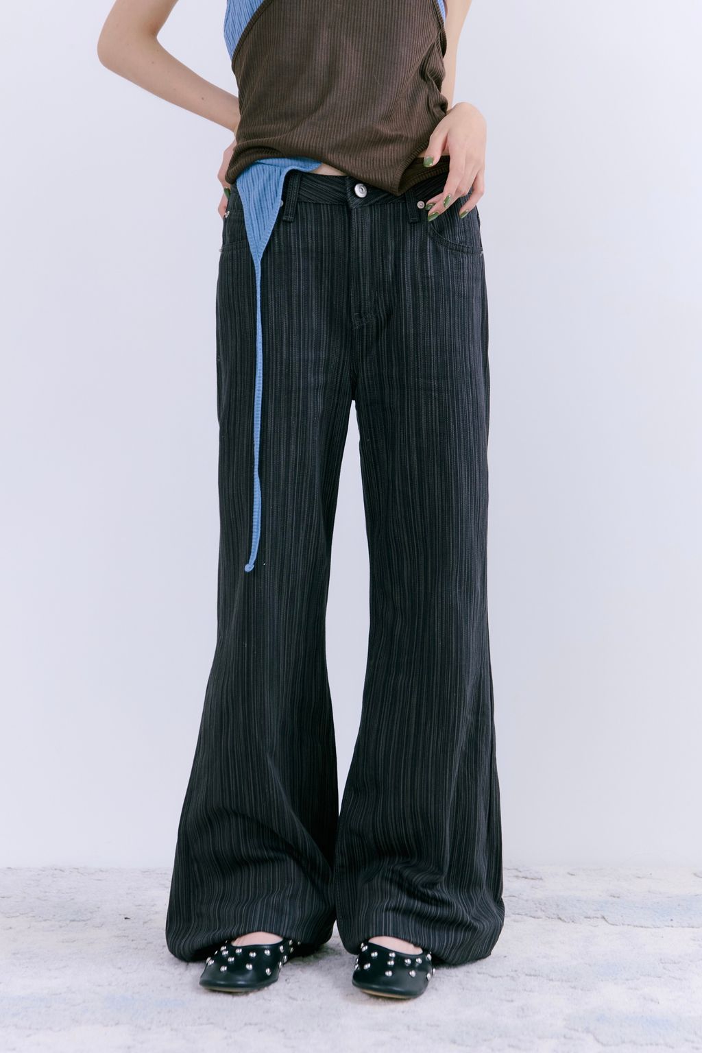/ 韓國設計師品牌 / 直條修身牛仔喇叭褲 - 藍 / 黑