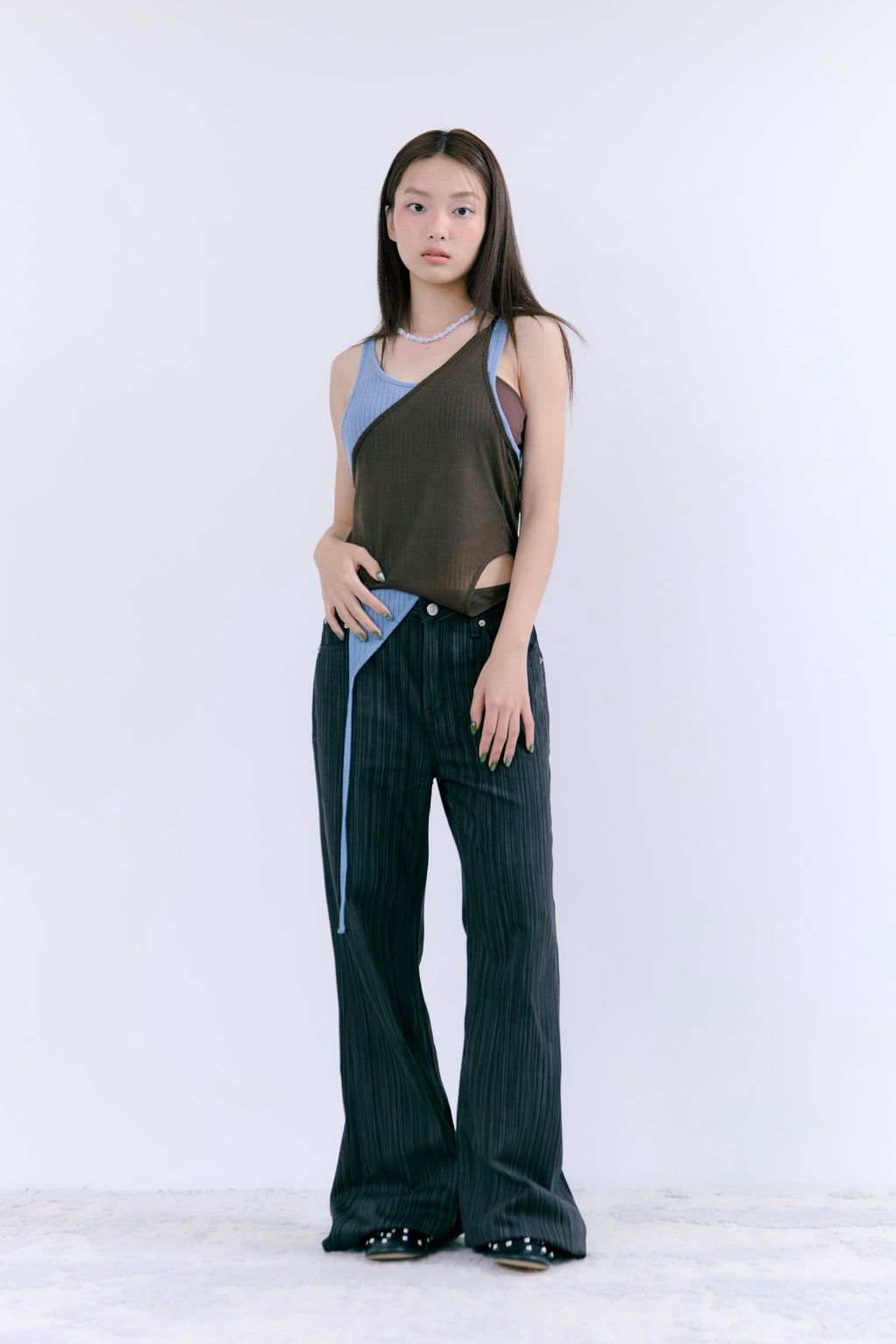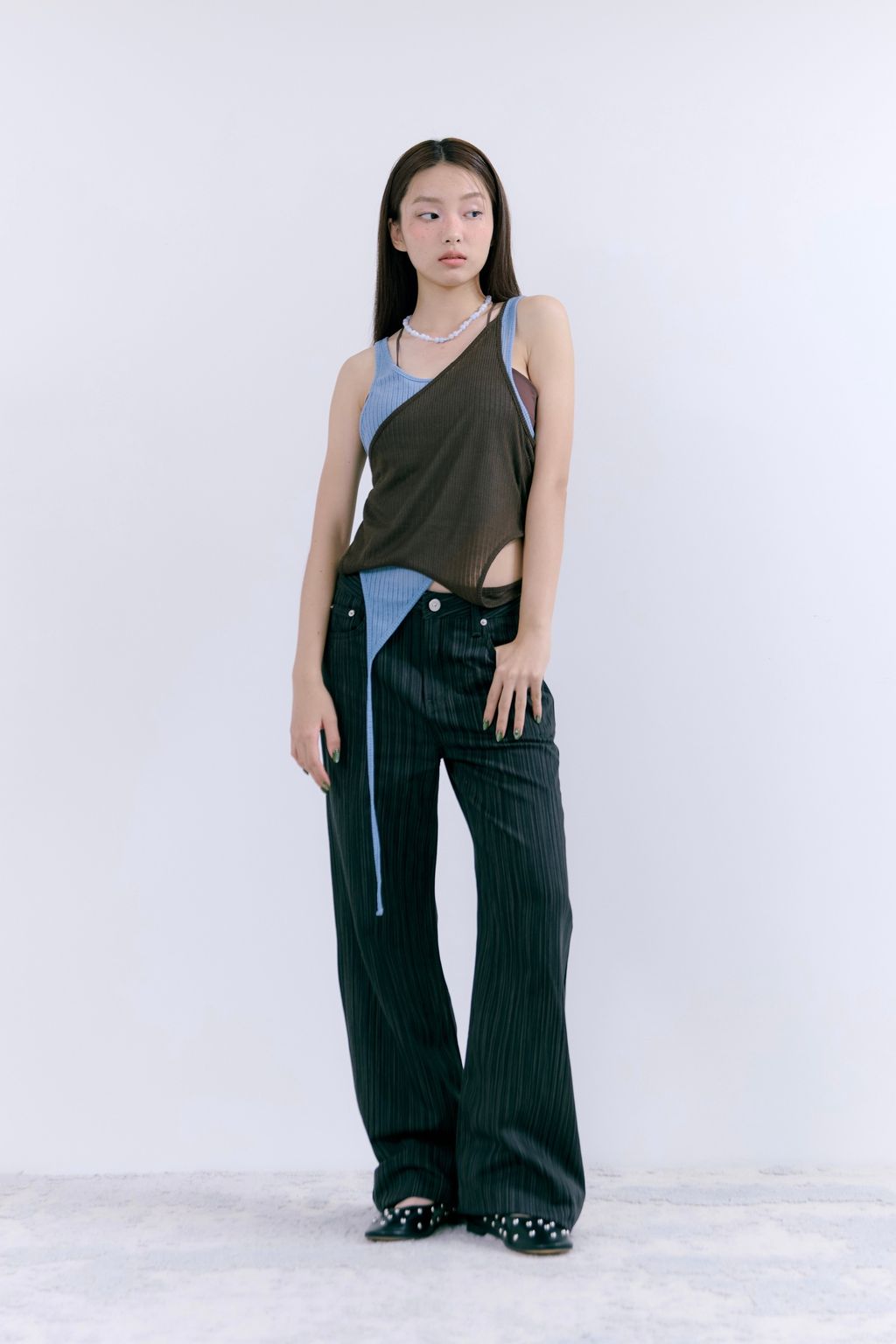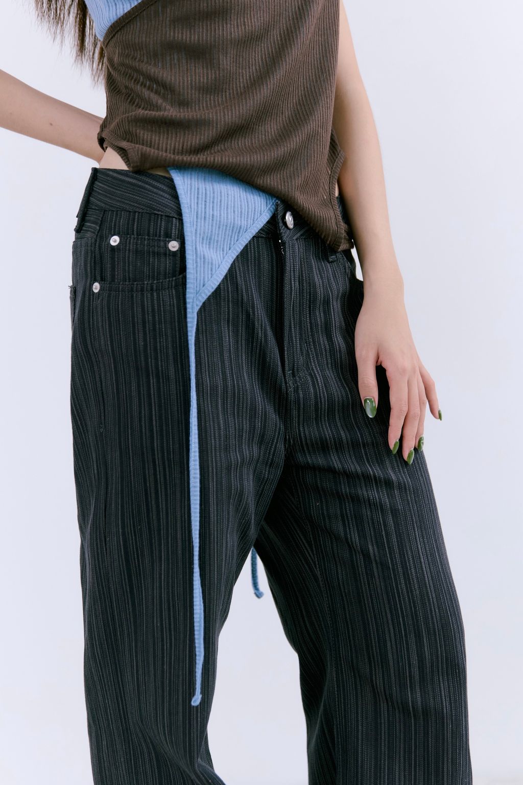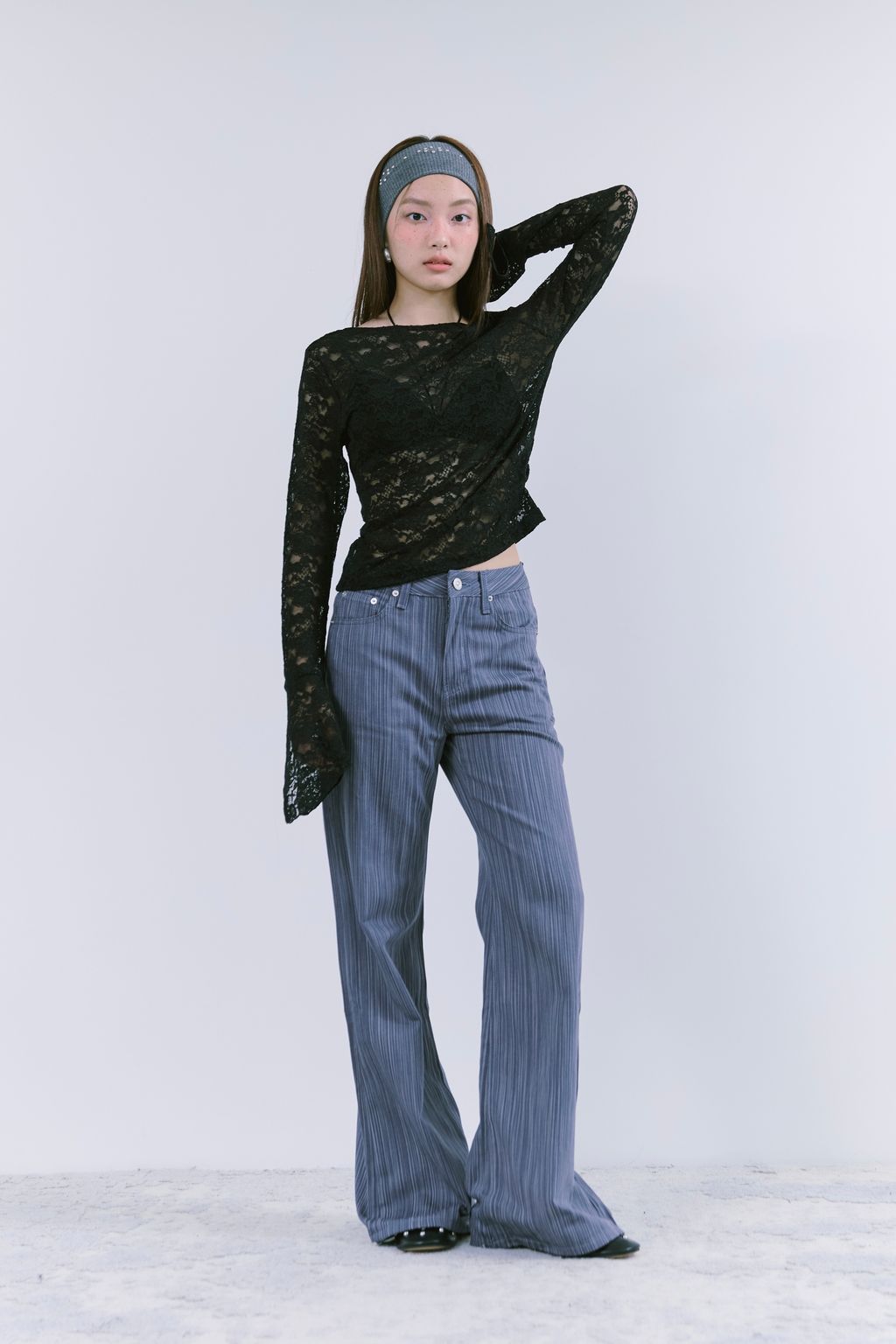 / 韓國設計師品牌 / 直條修身牛仔喇叭褲 - 藍 / 黑