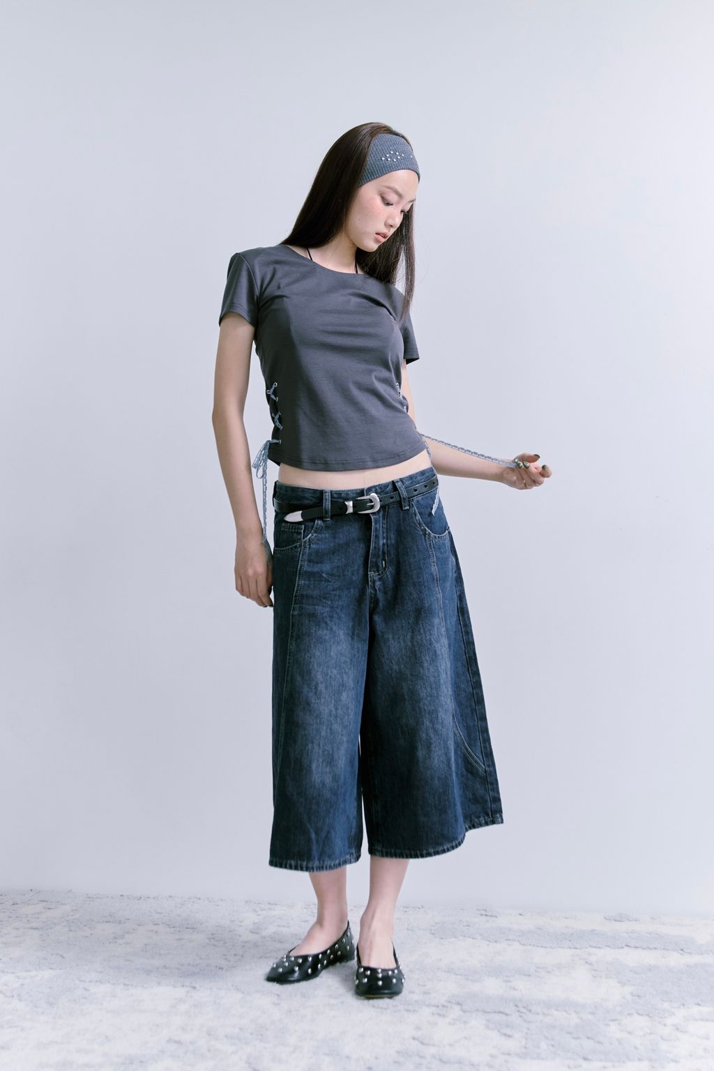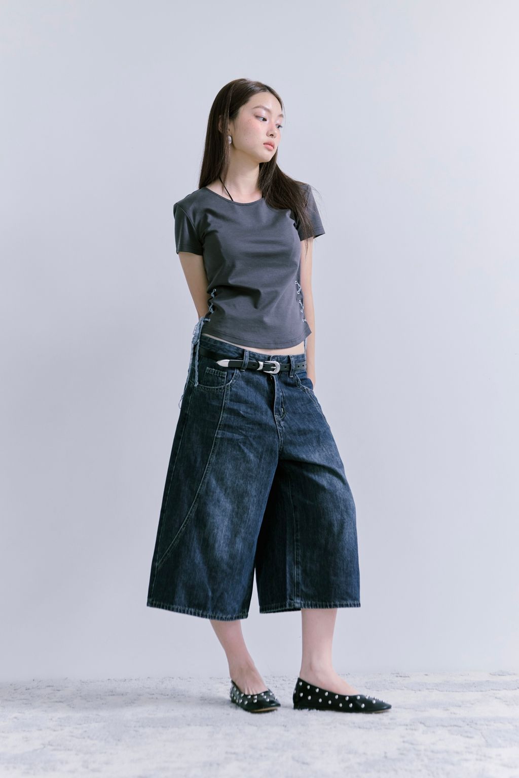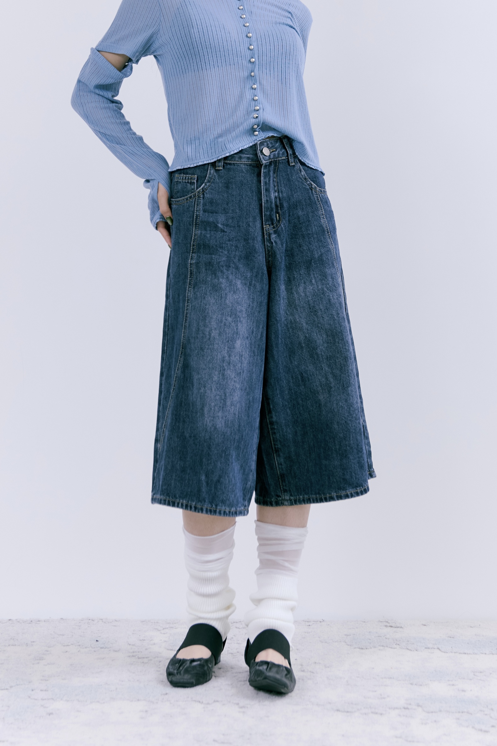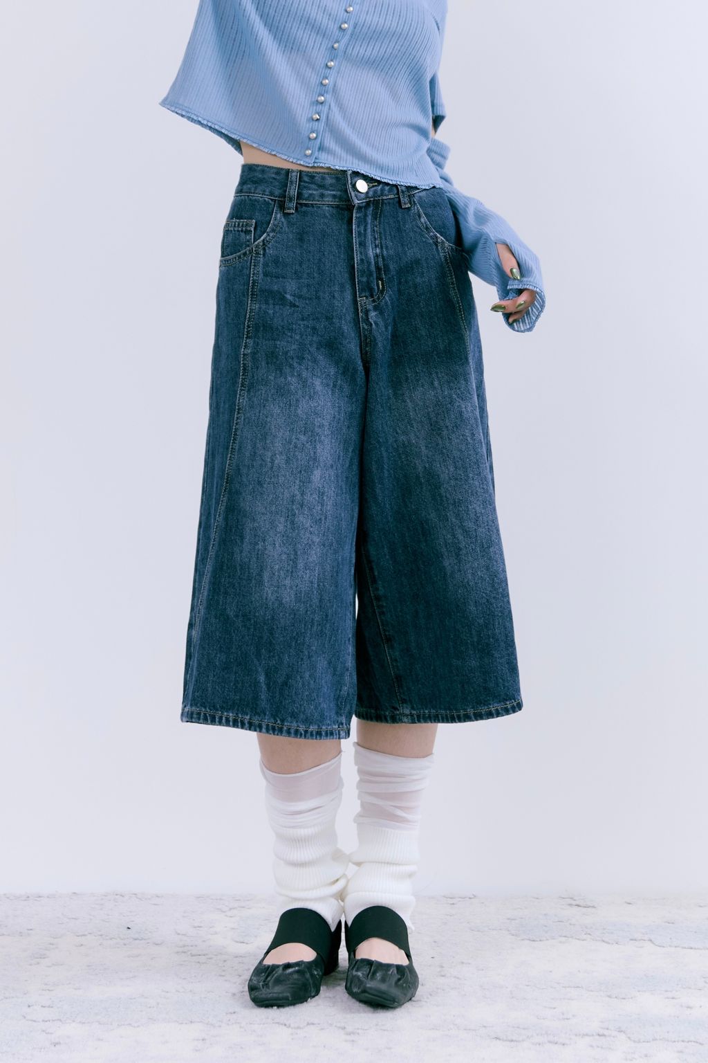/ 韓國設計師品牌 / 復古刷色牛仔七分褲