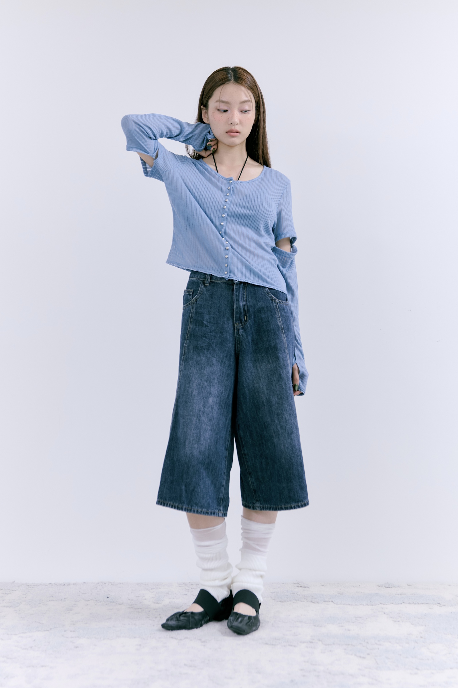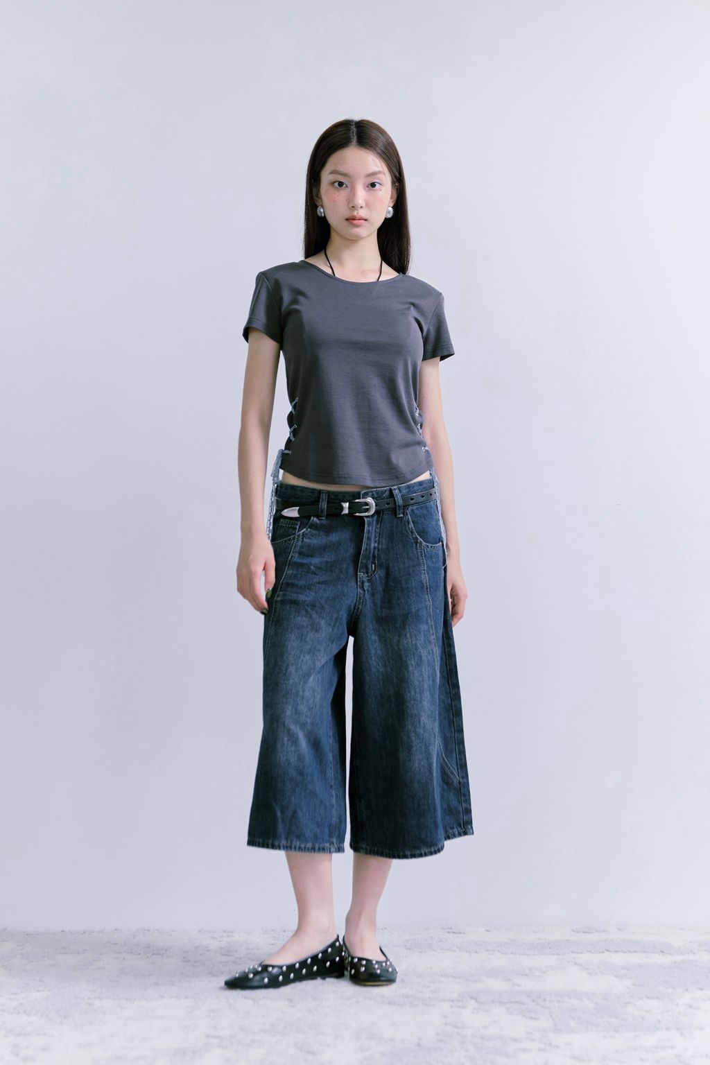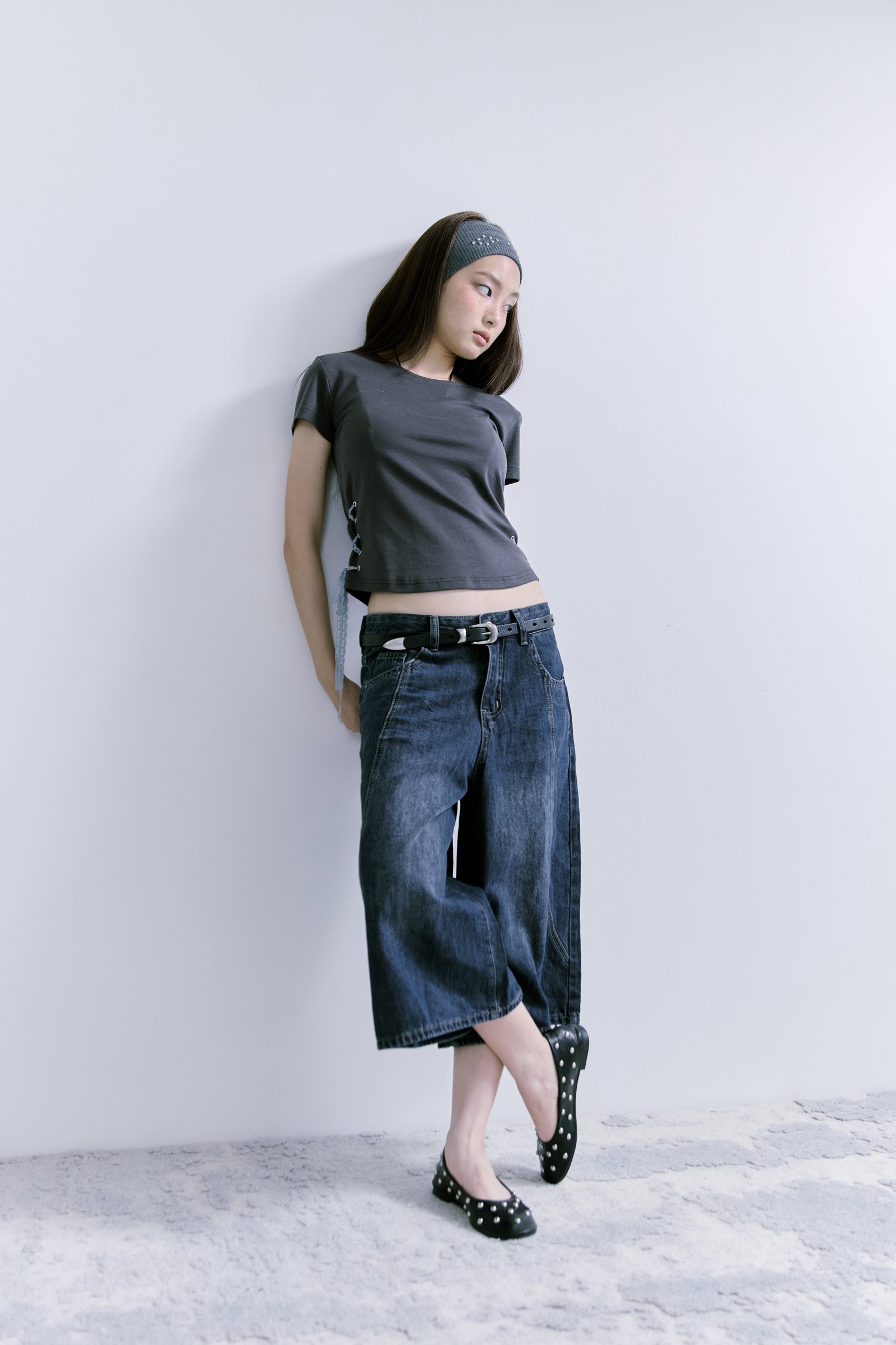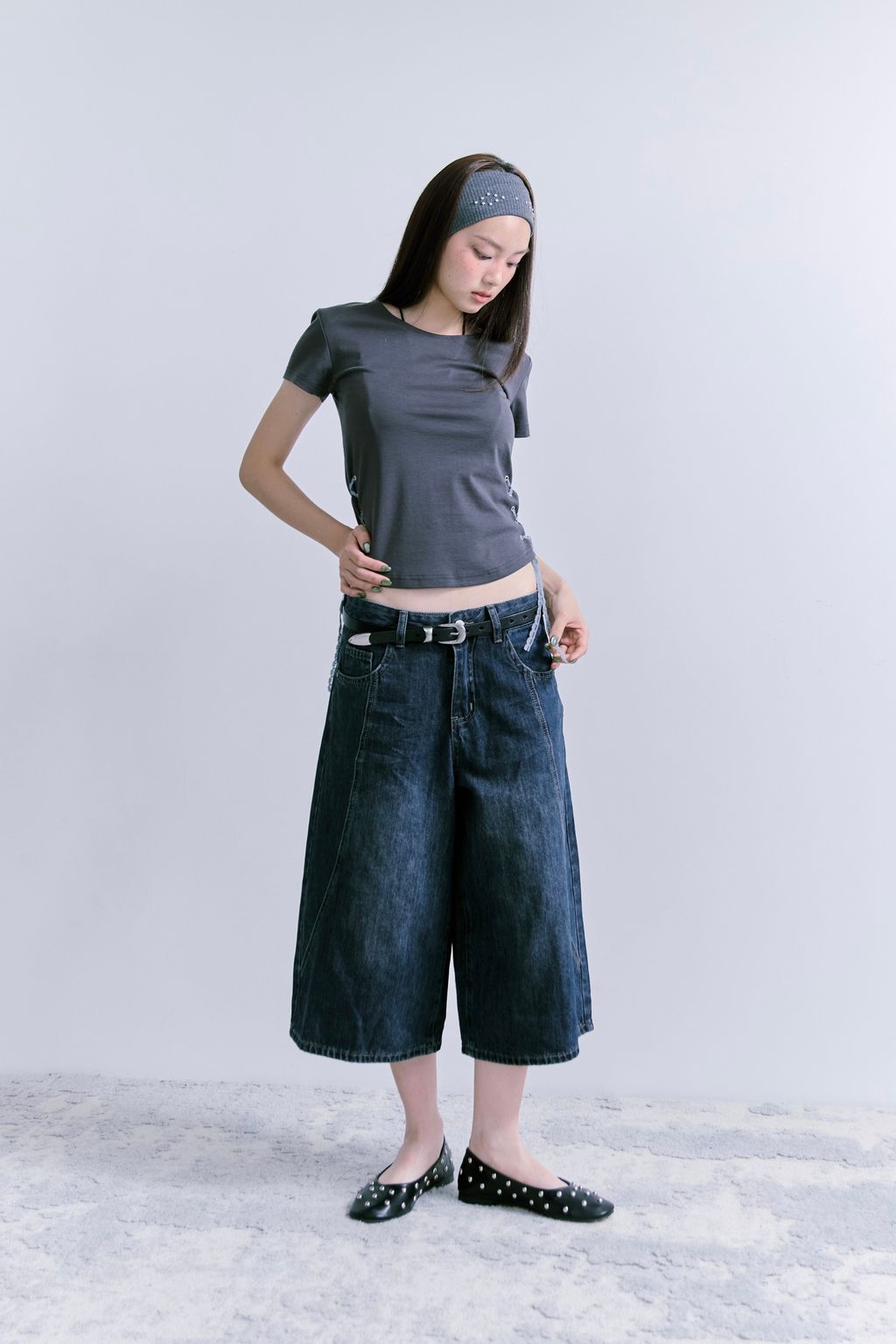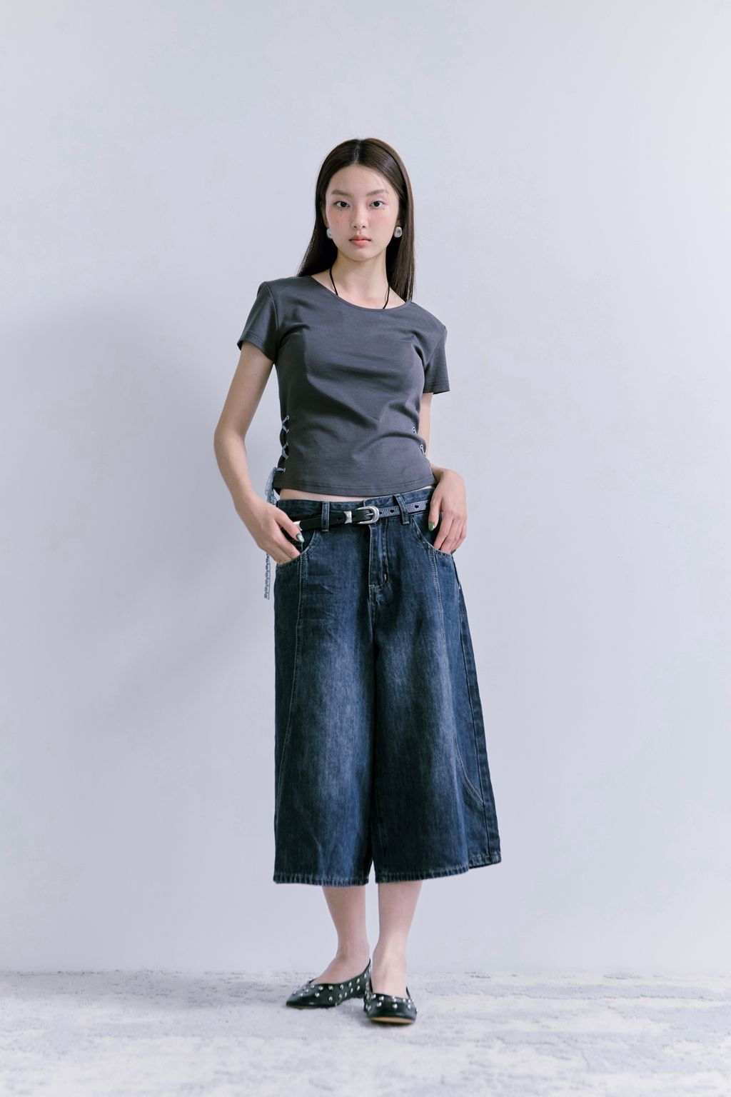 / 韓國設計師品牌 / 復古刷色牛仔七分褲
