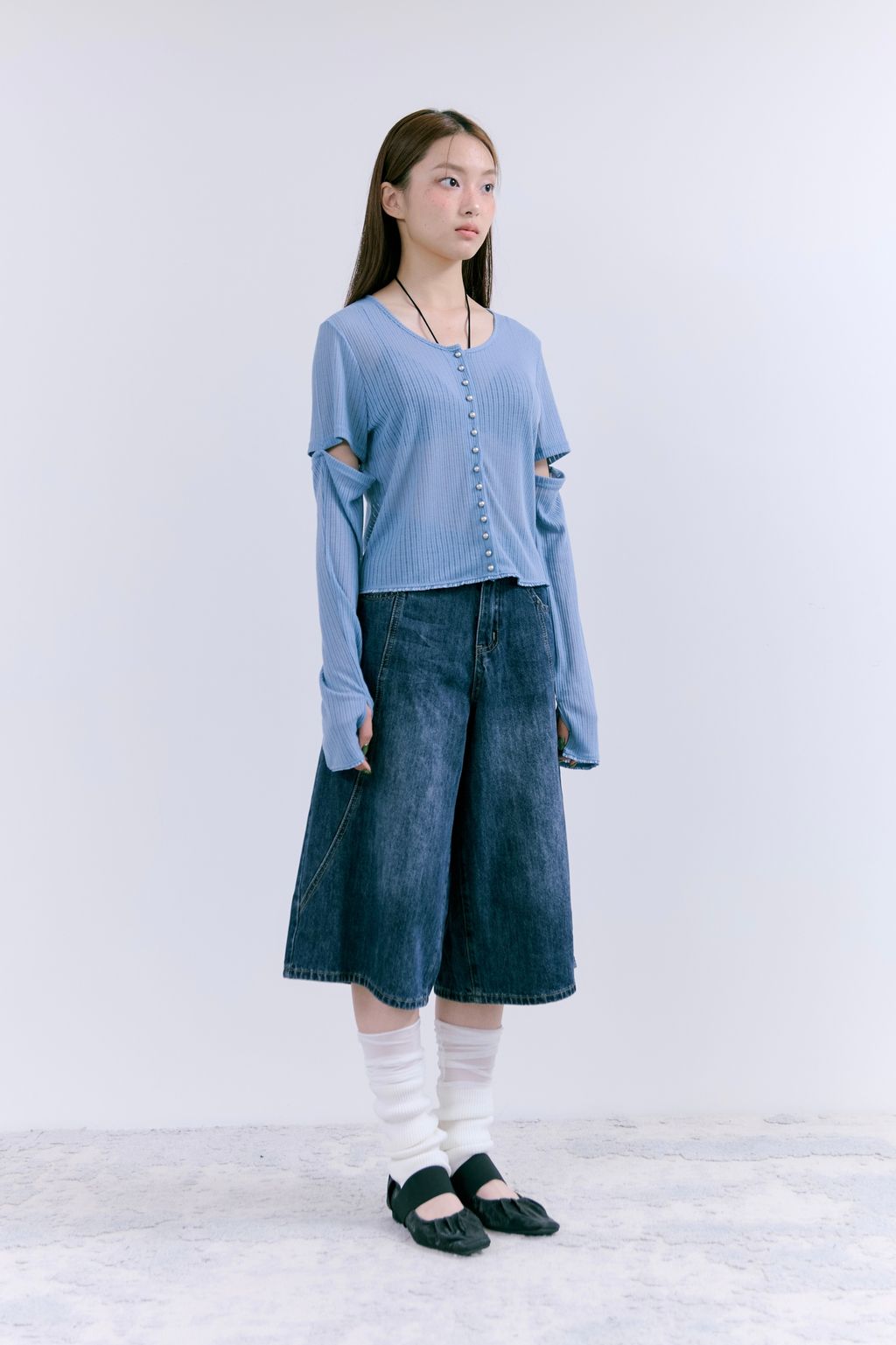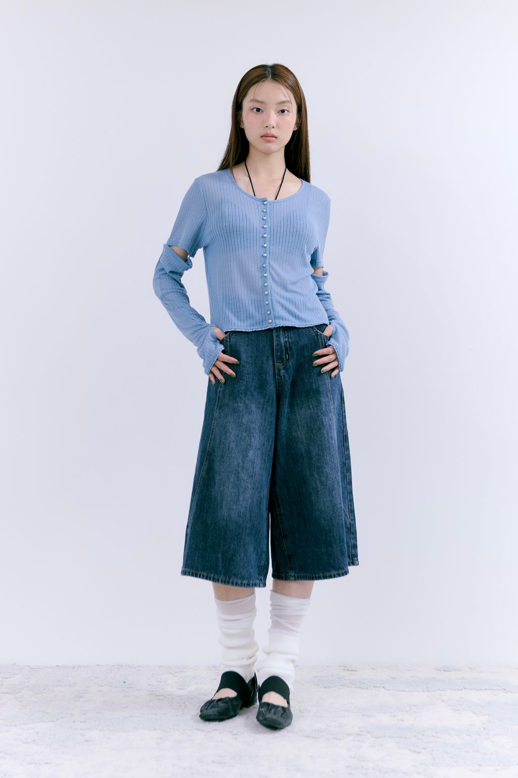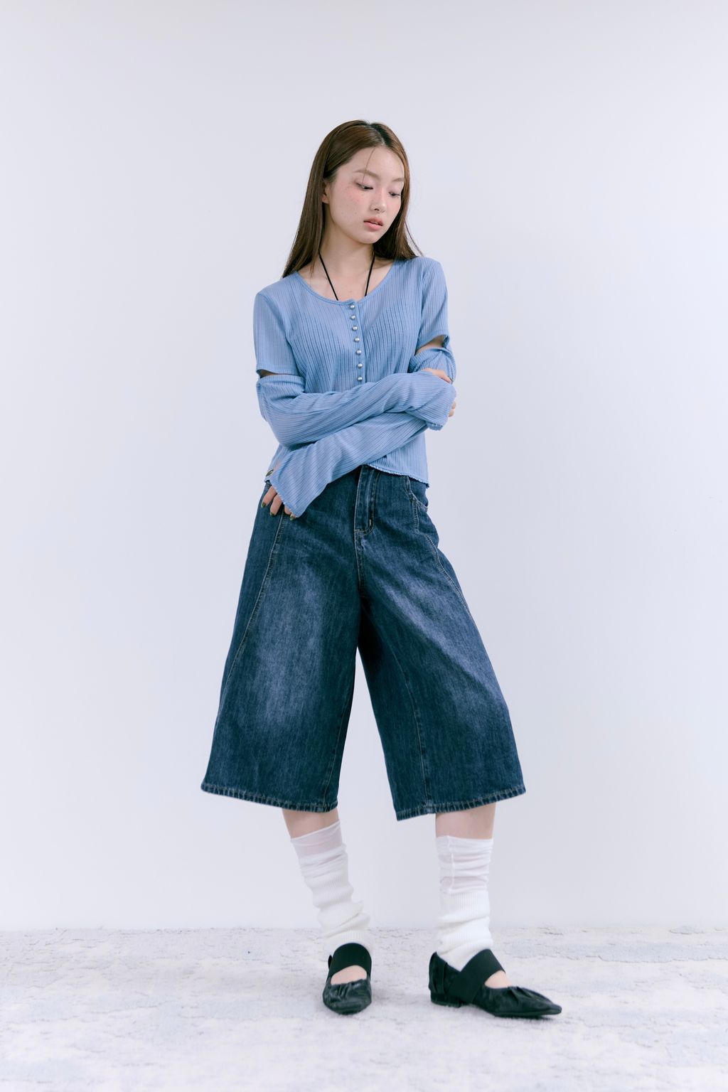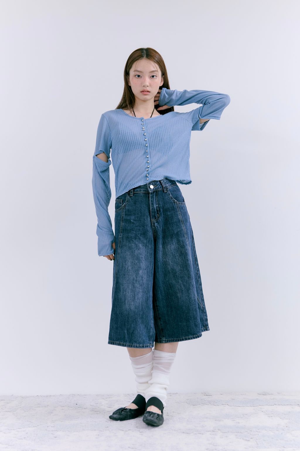 / 韓國設計師品牌 / 復古刷色牛仔七分褲