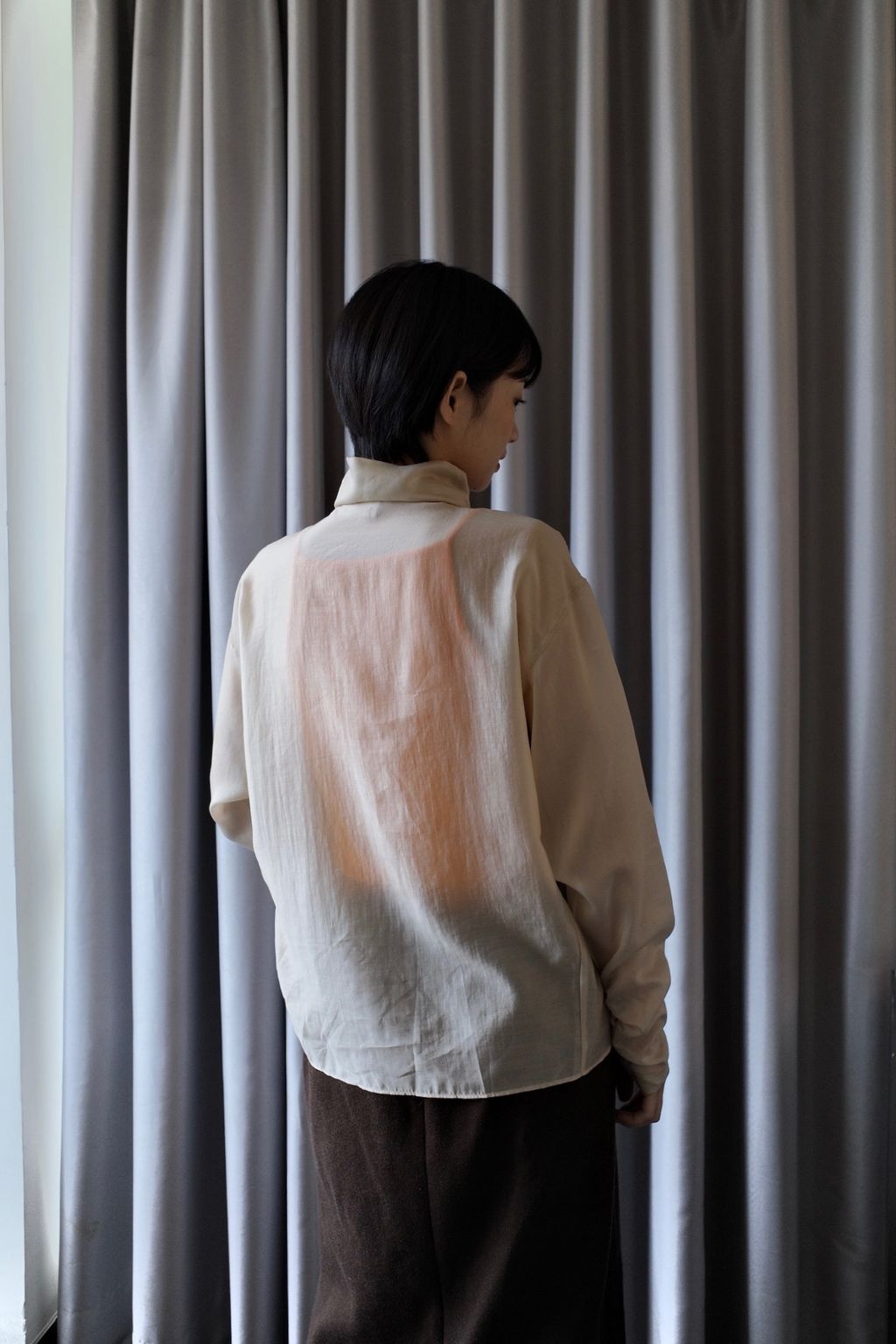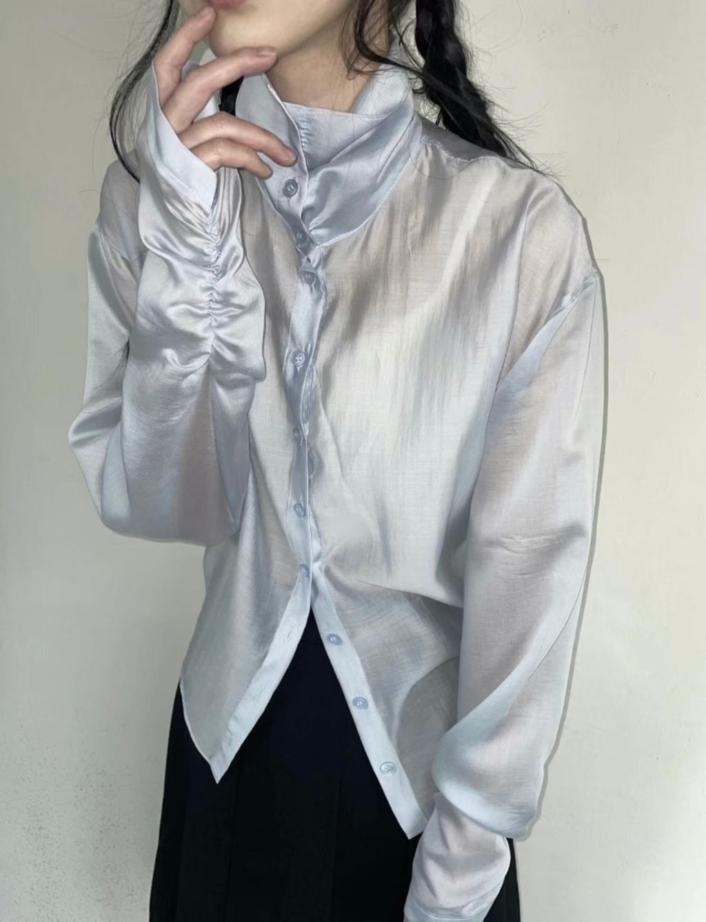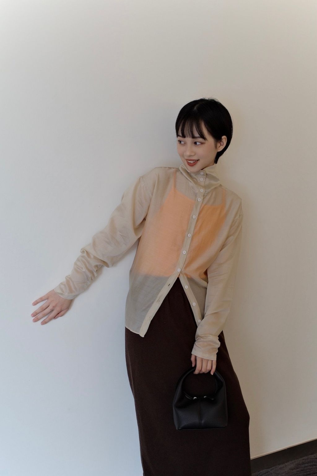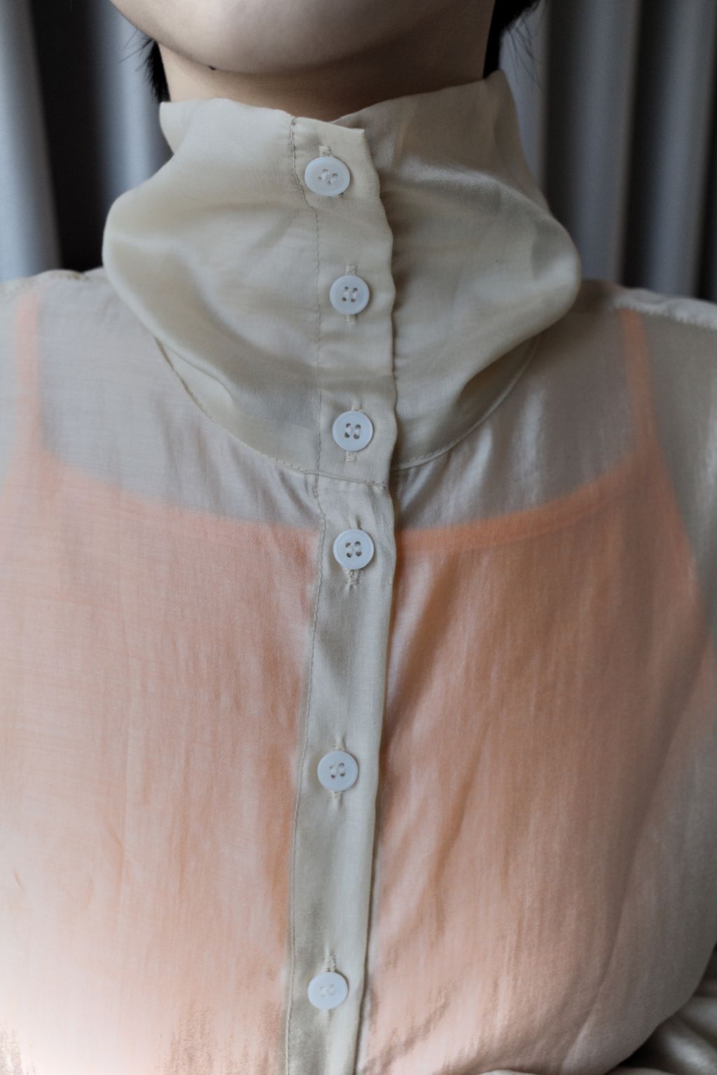 高領透膚微光兩穿襯衫 - 杏 / 藍