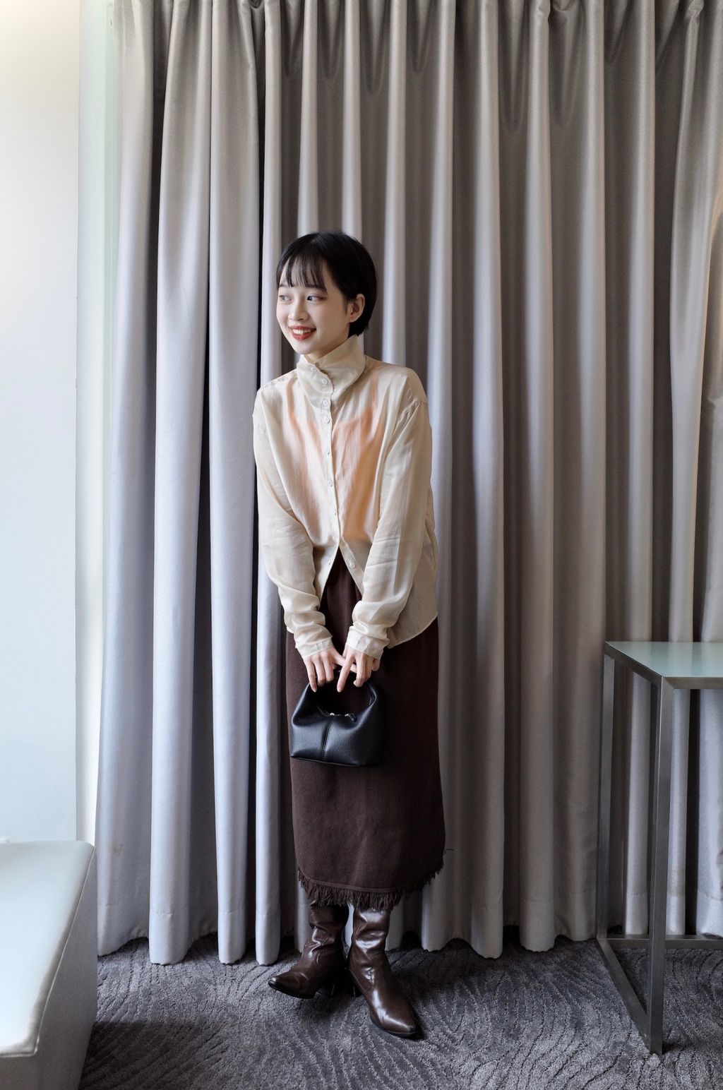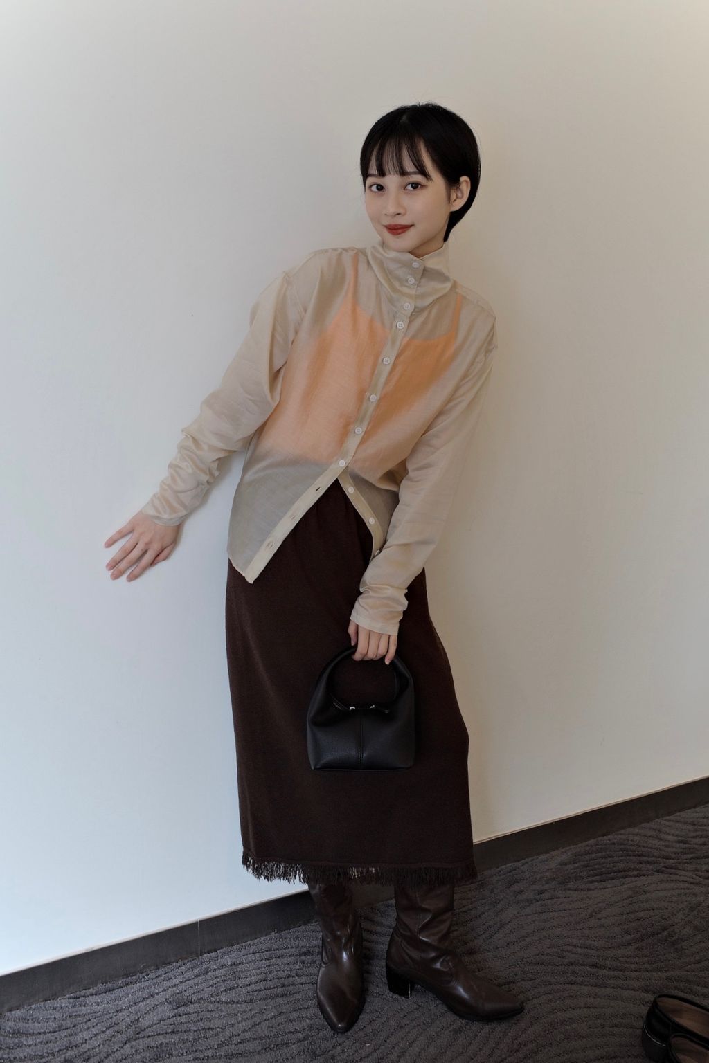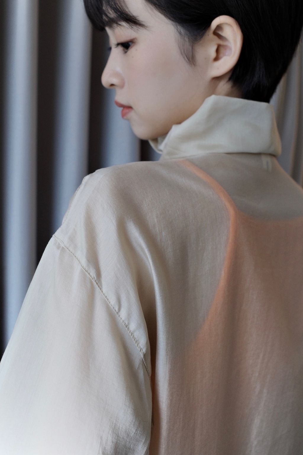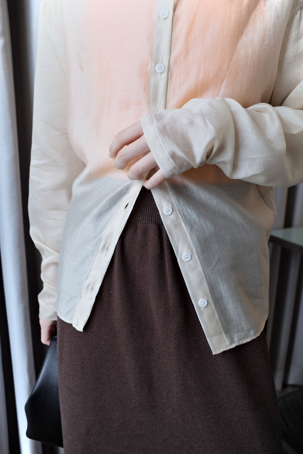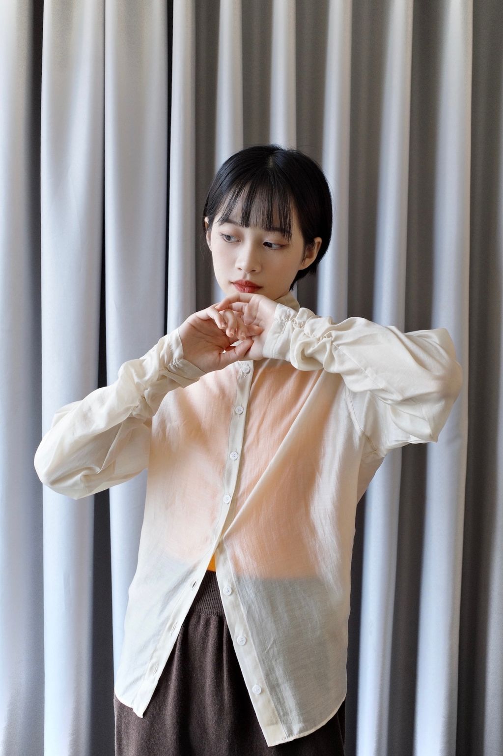 高領透膚微光兩穿襯衫 - 杏 / 藍