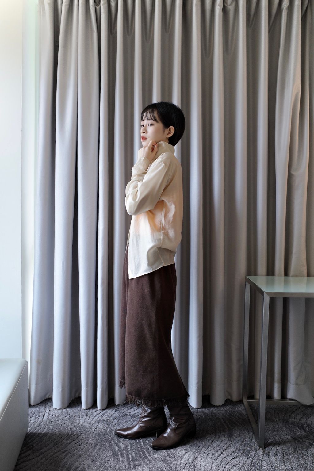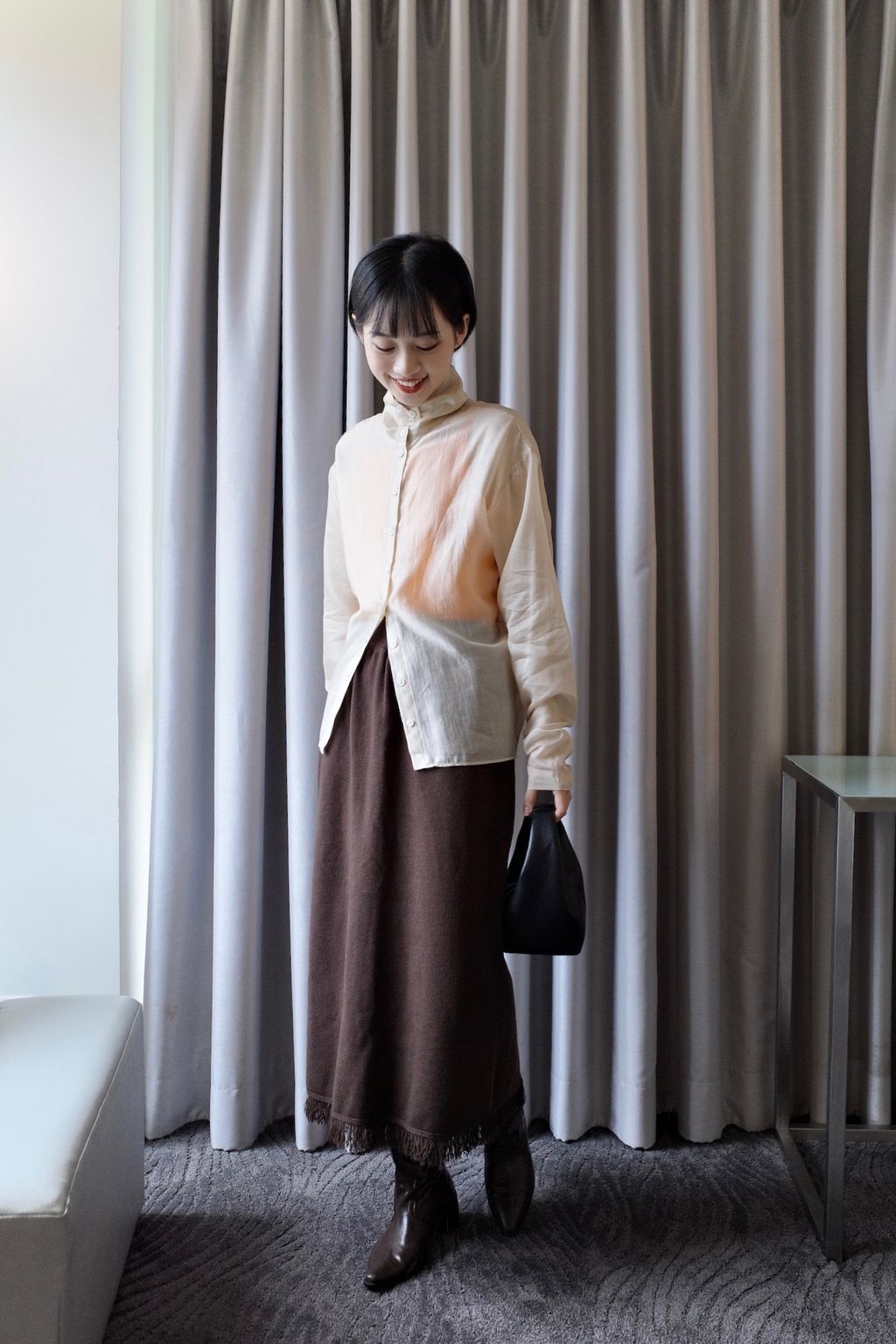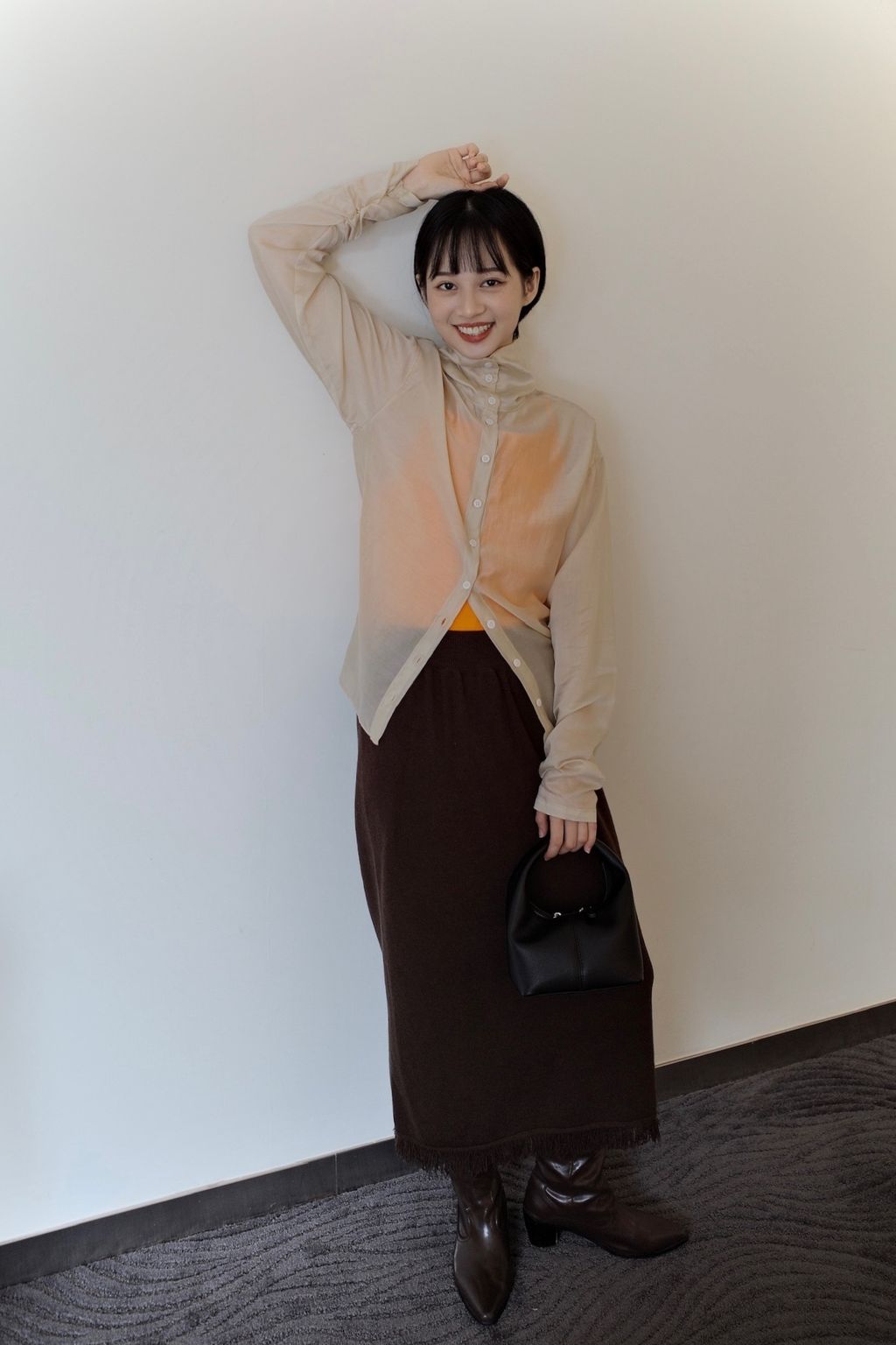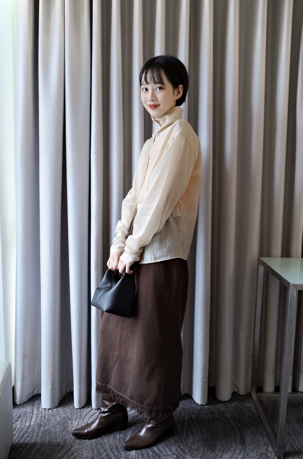 高領透膚微光兩穿襯衫 - 杏 / 藍