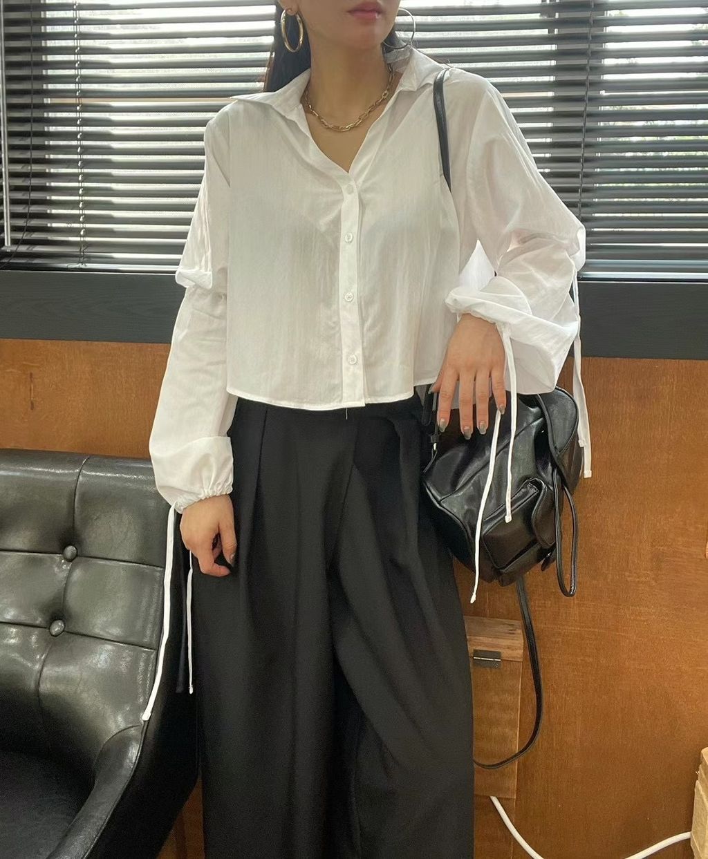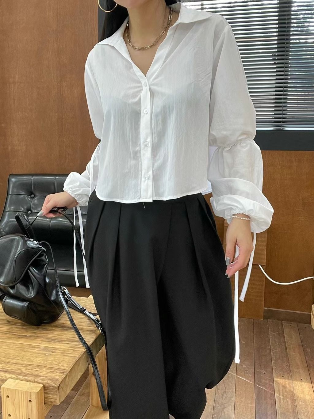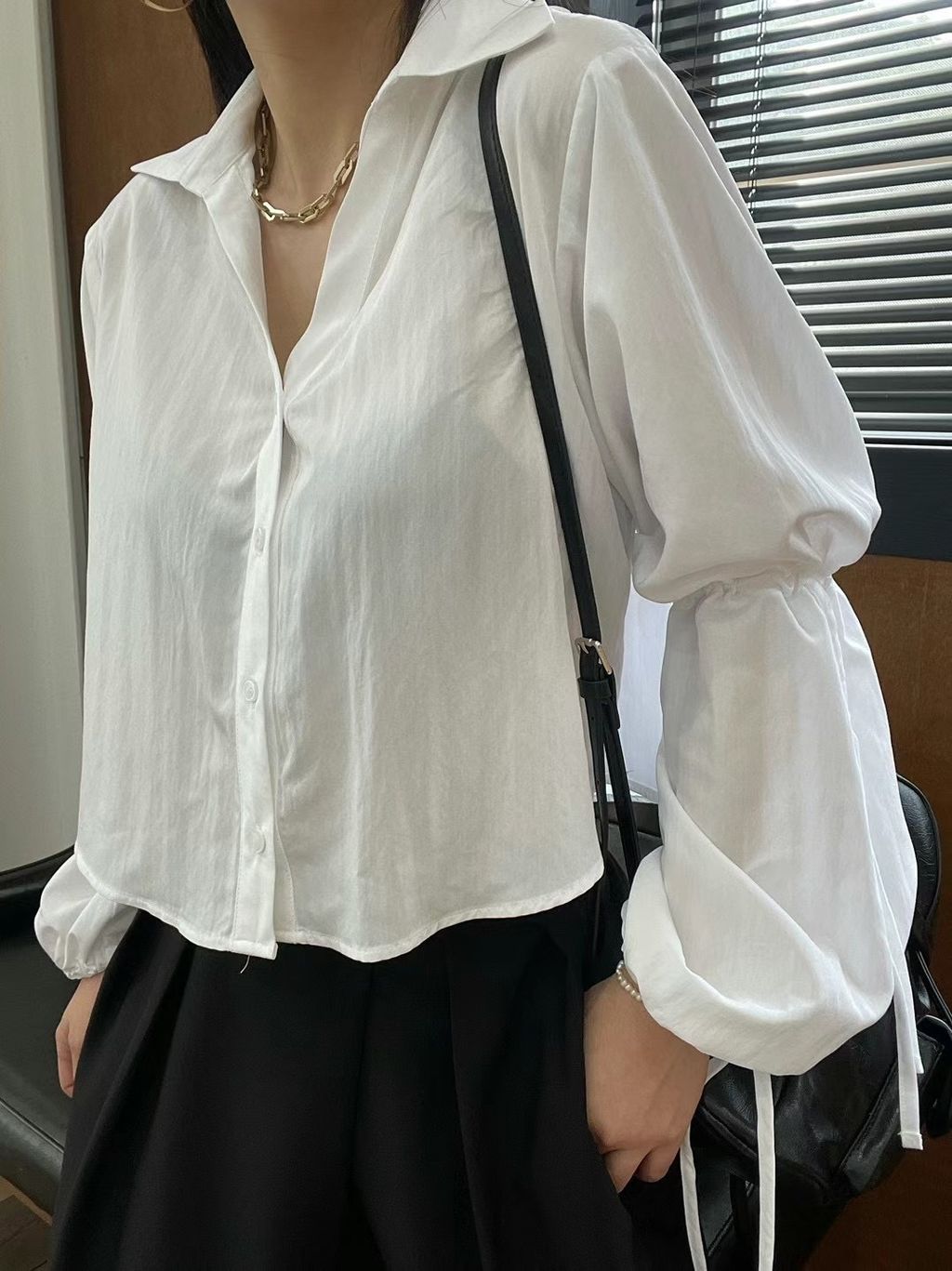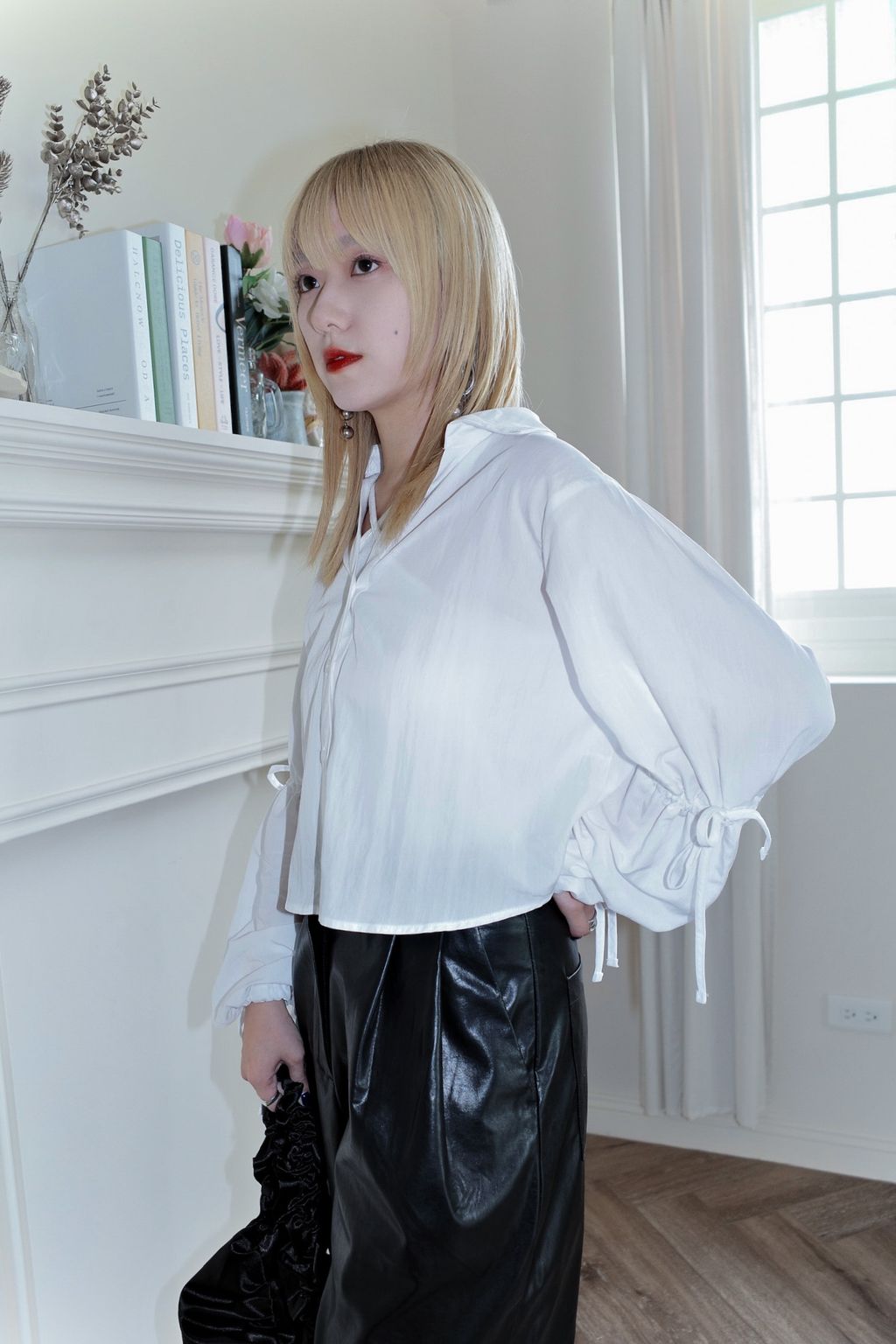 / 韓國設計師品牌 / 日系袖口綁帶襯衫-白/黑