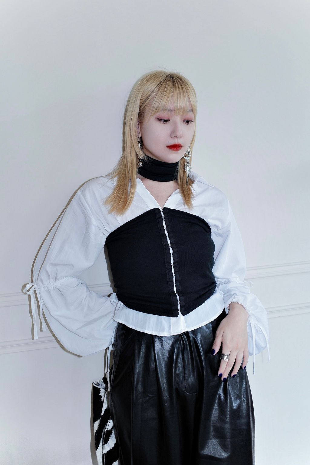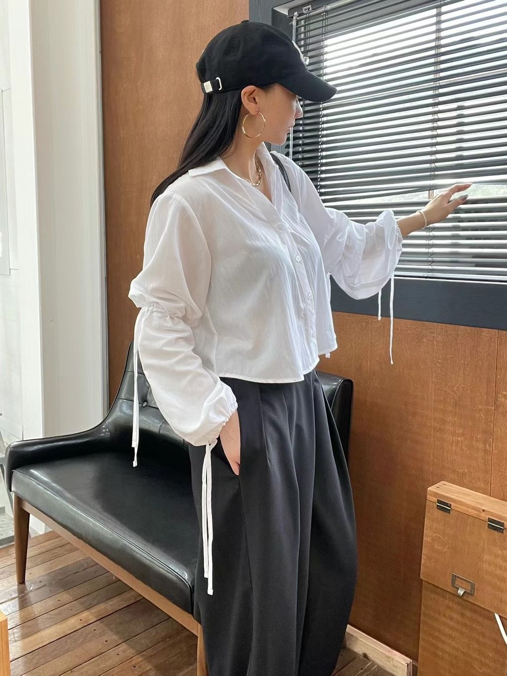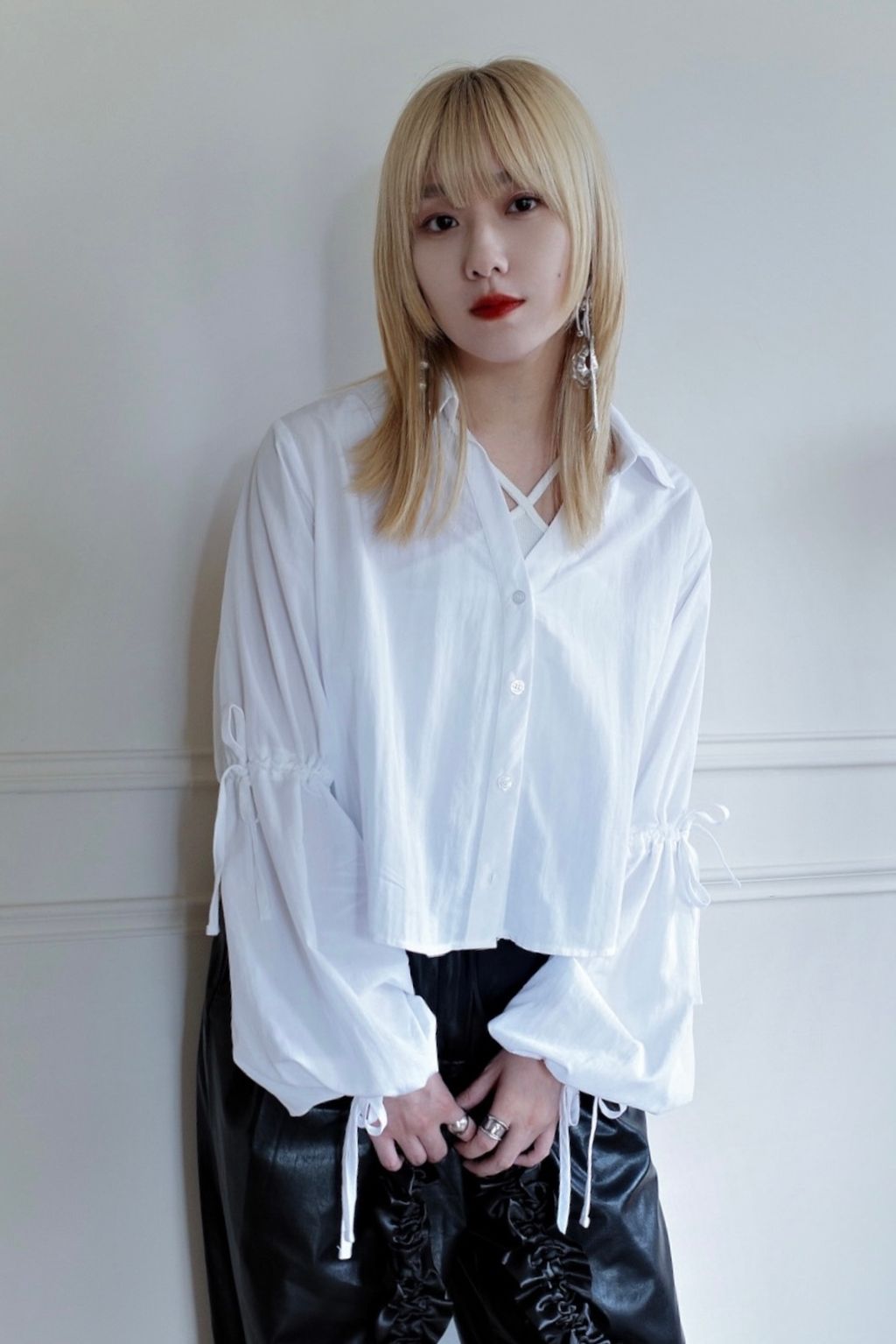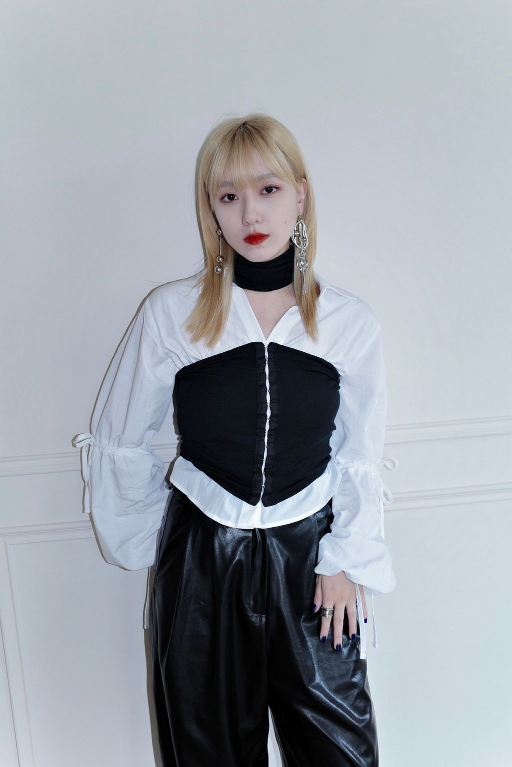/ 韓國設計師品牌 / 日系袖口綁帶襯衫-白/黑
