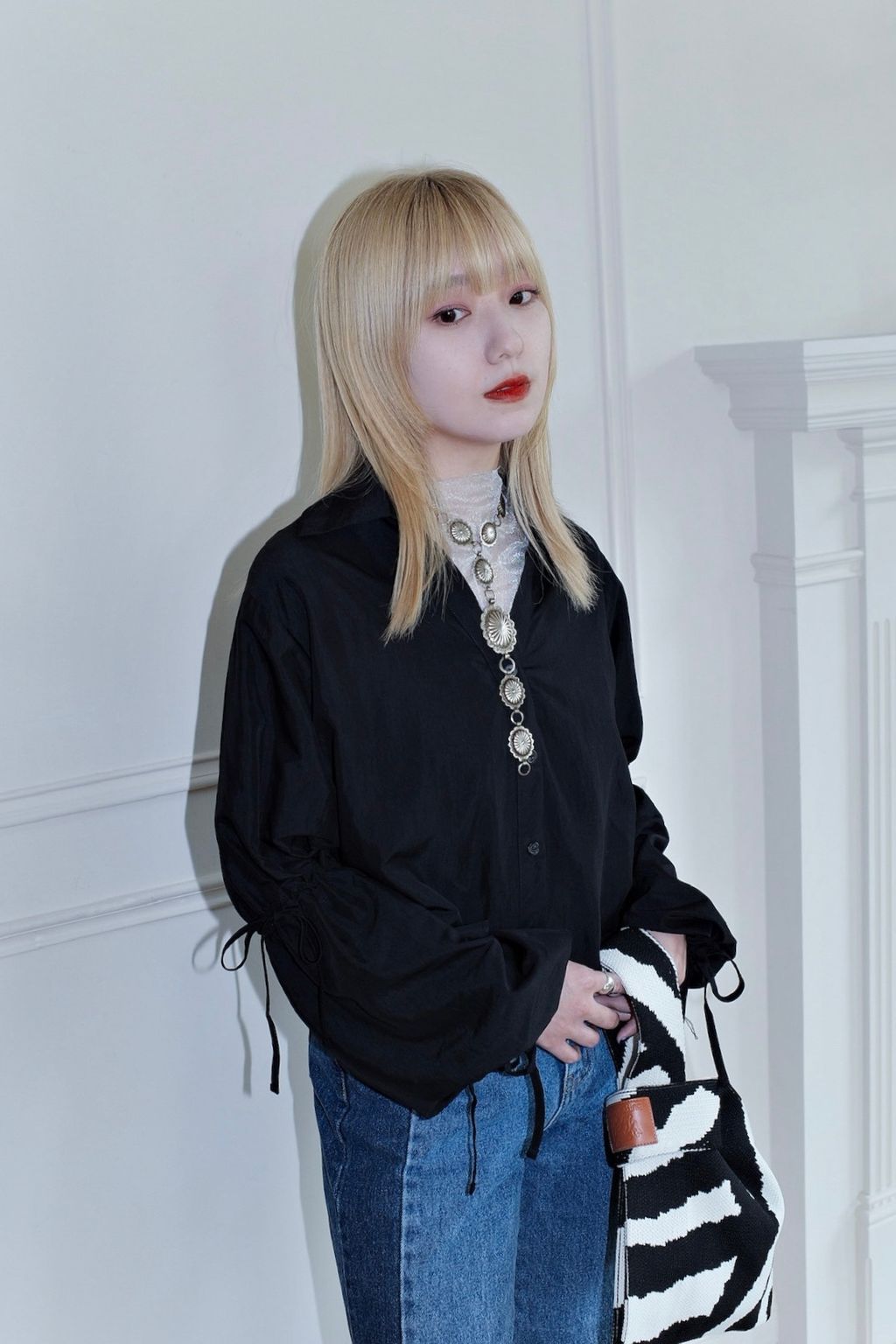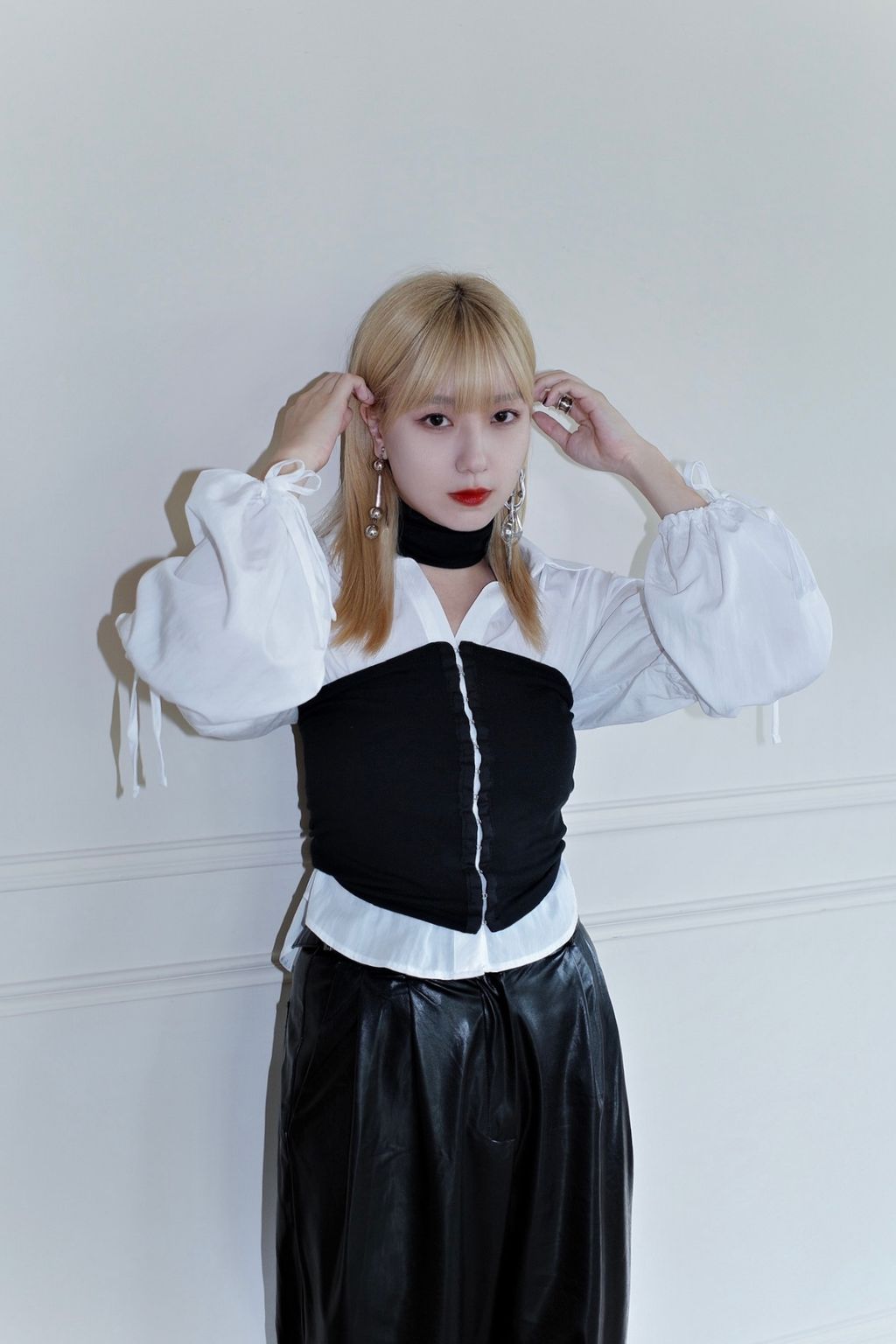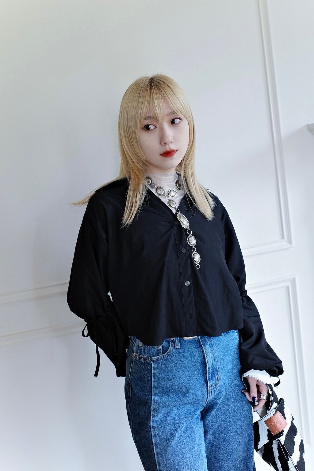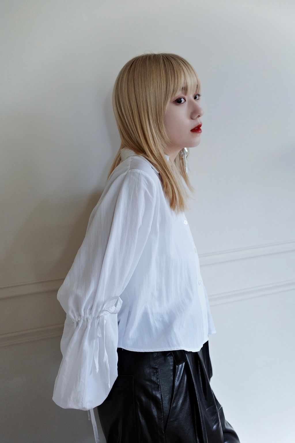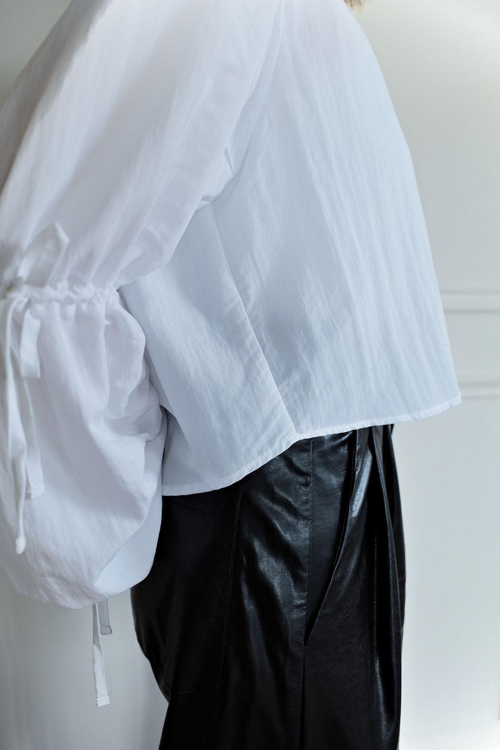 / 韓國設計師品牌 / 日系袖口綁帶襯衫-白/黑