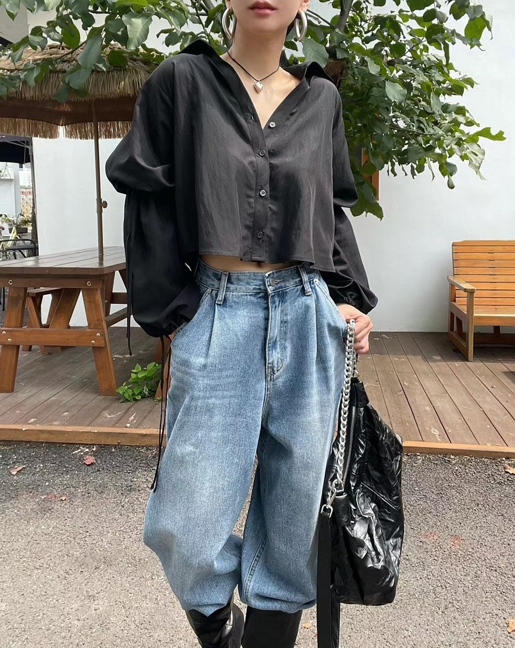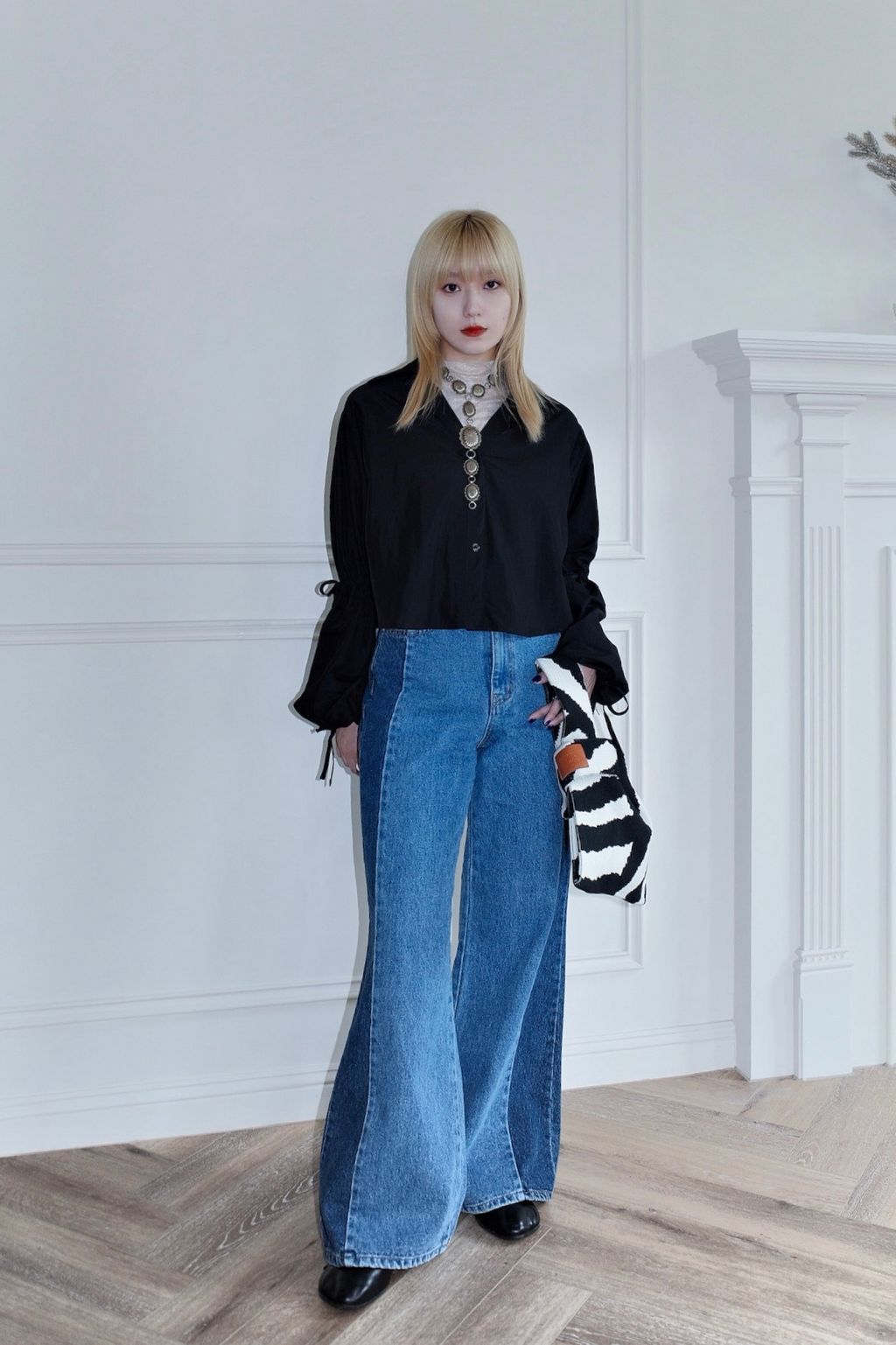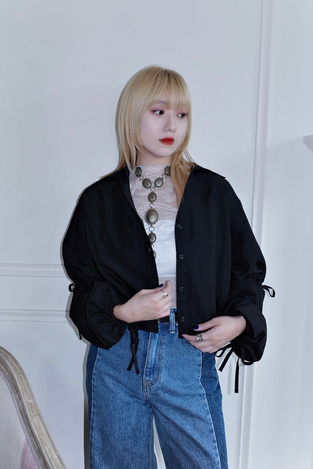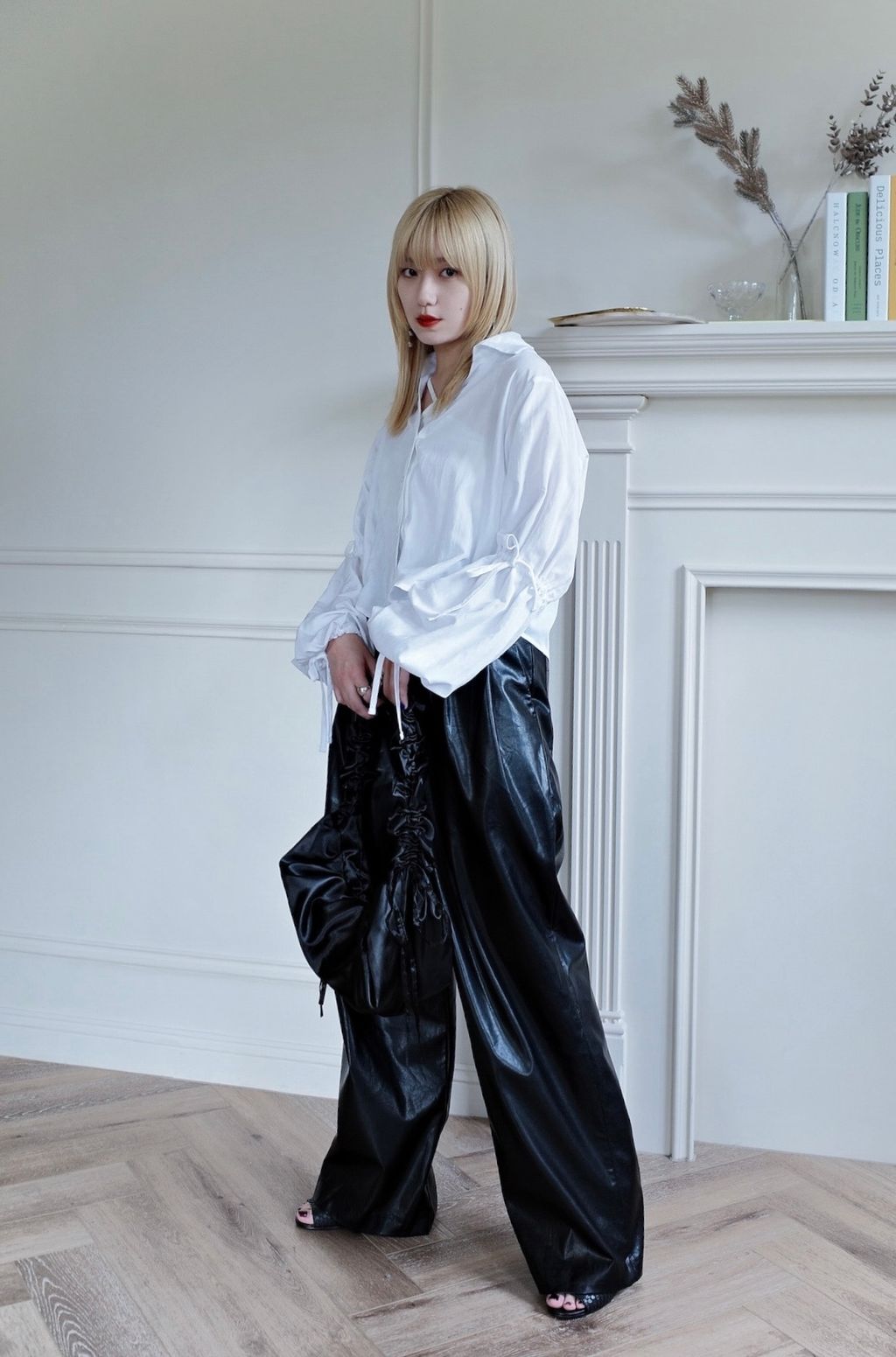 / 韓國設計師品牌 / 日系袖口綁帶襯衫-白/黑