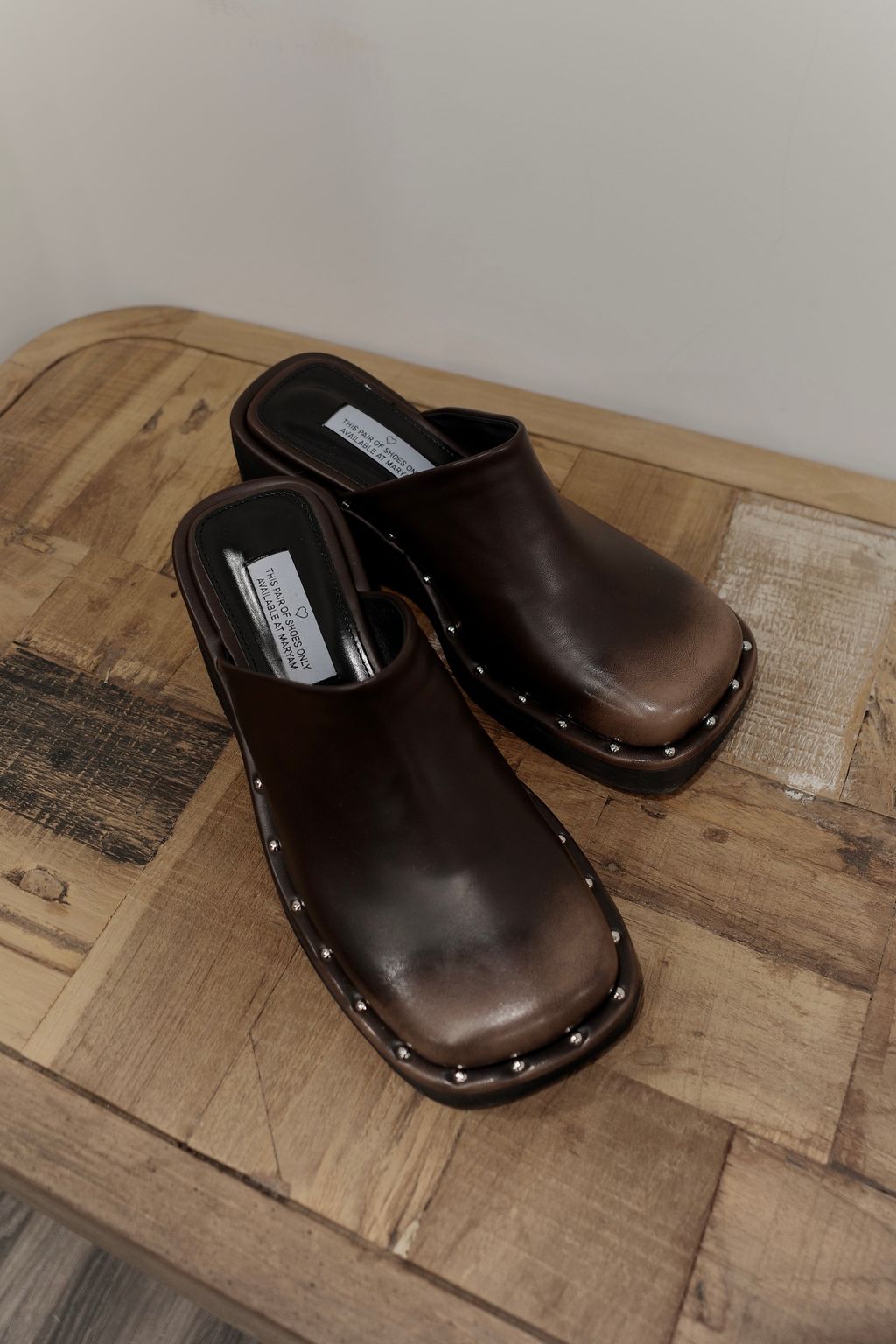 復古鉚釘粗跟鞋 - 棕色 / 黑色