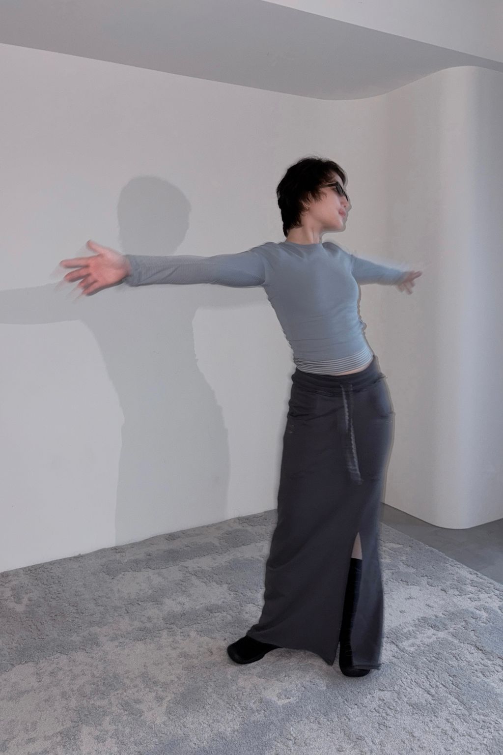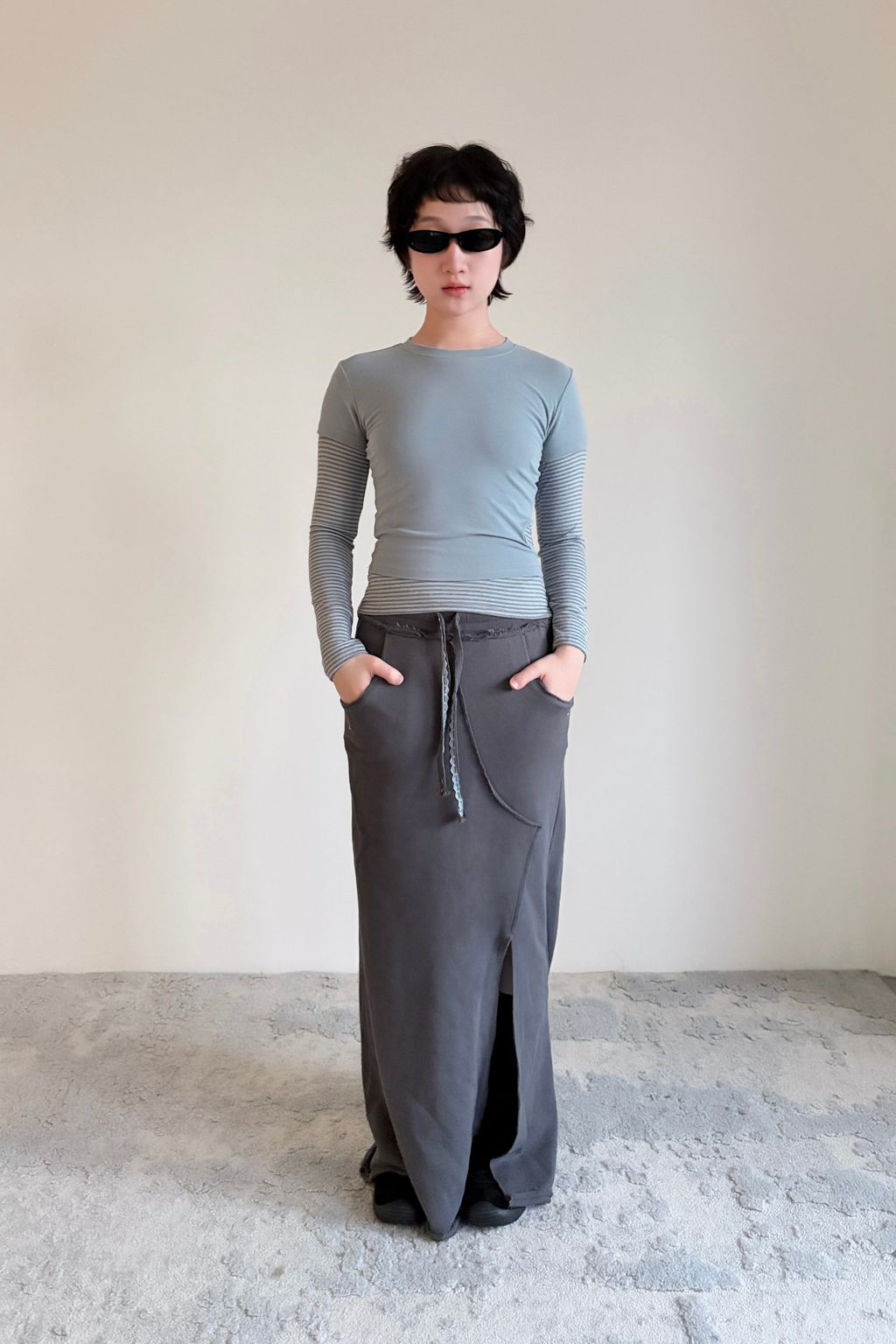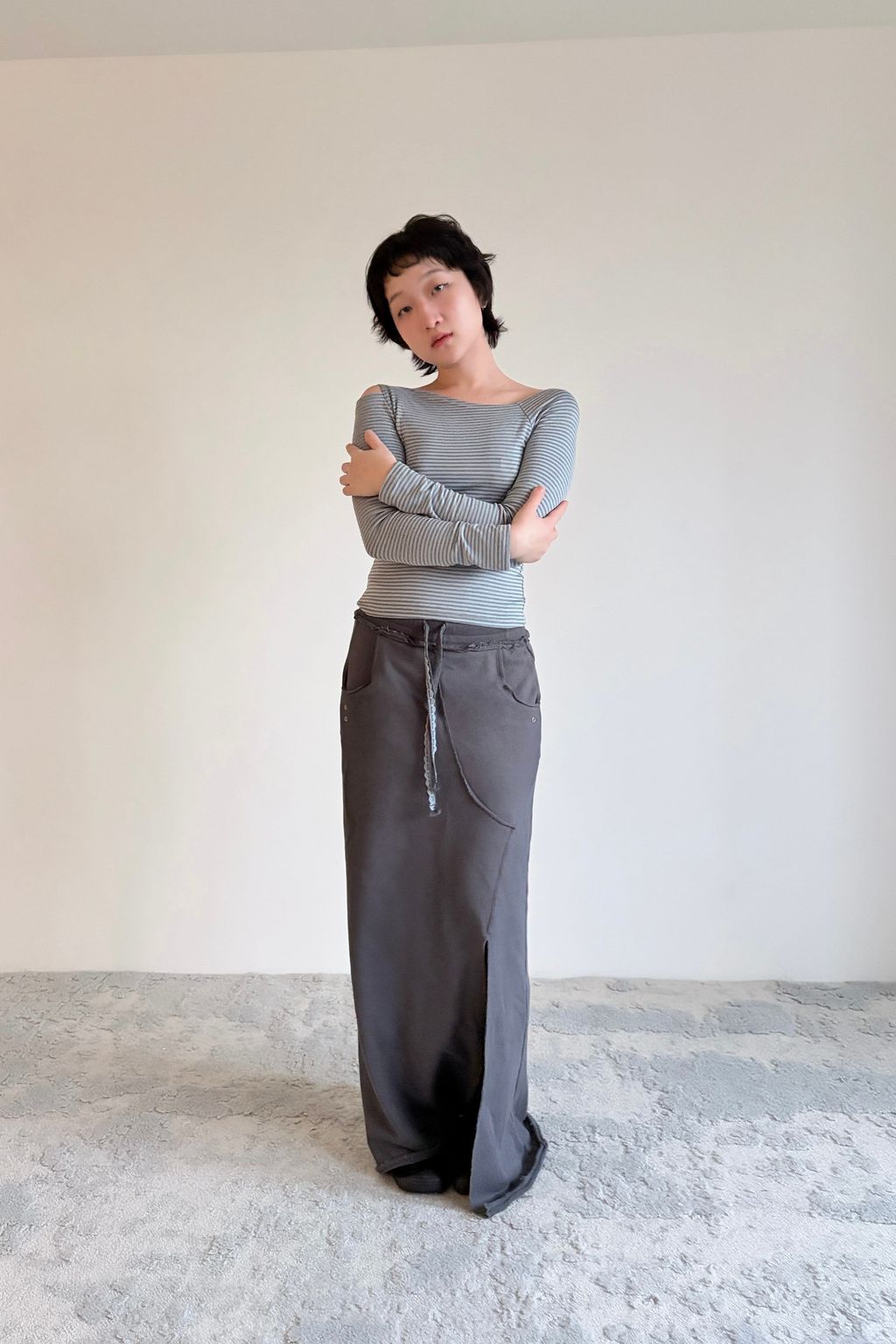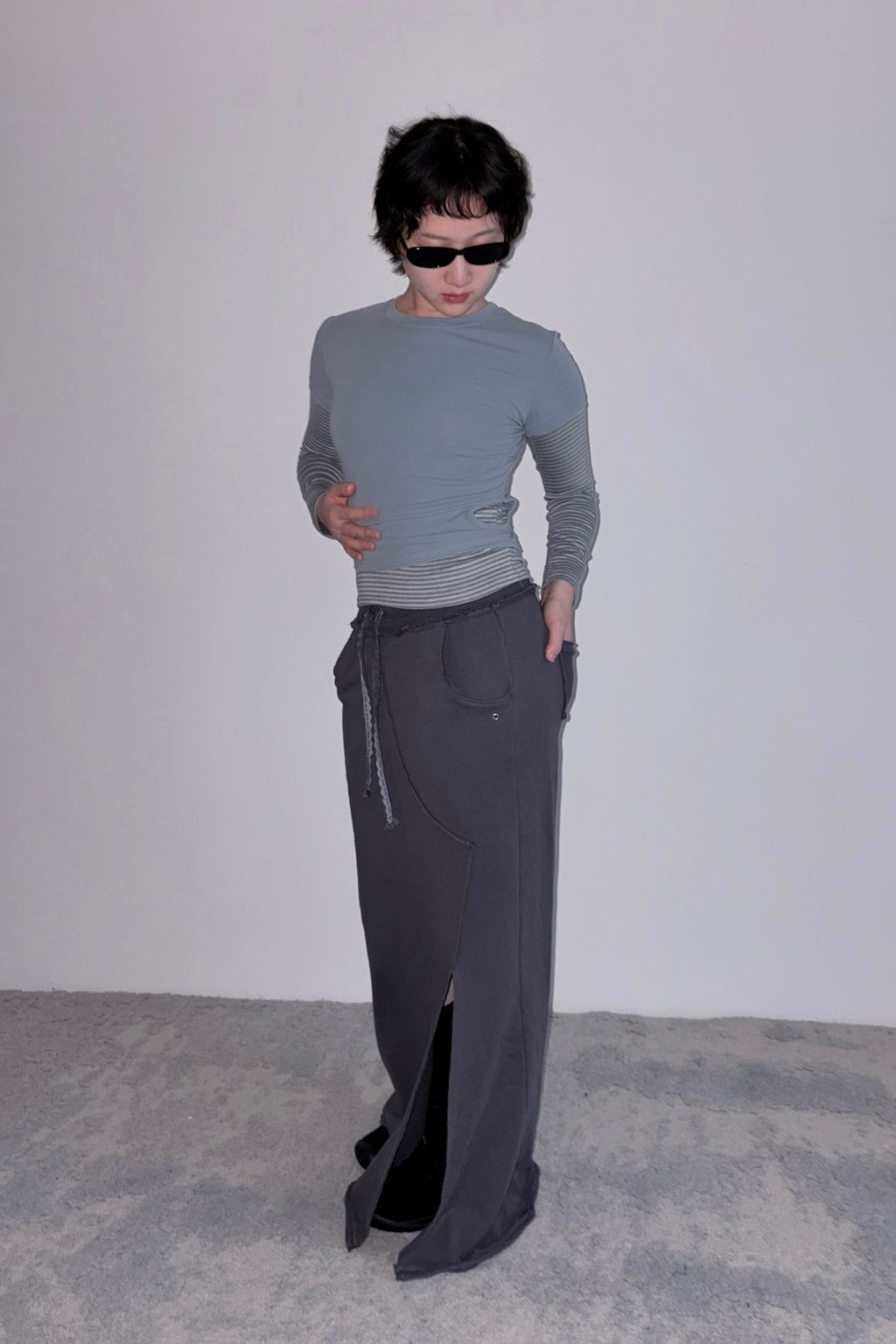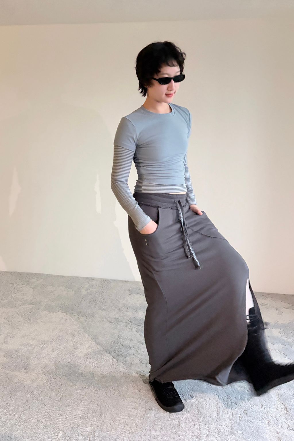 / BB.MADE / 設計不規則開衩休閒長裙 - 灰藍 / 深灰
