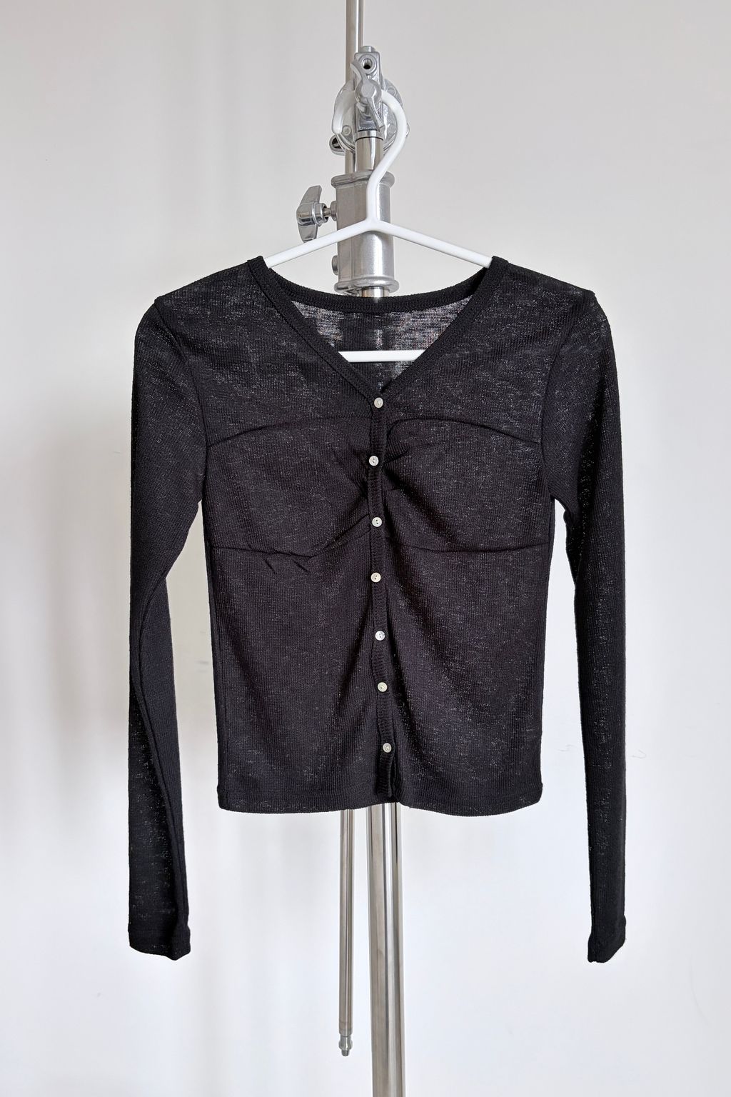 / 韓國設計師品牌 / 抓皺設計透膚上衣小外套 - 白 / 黑