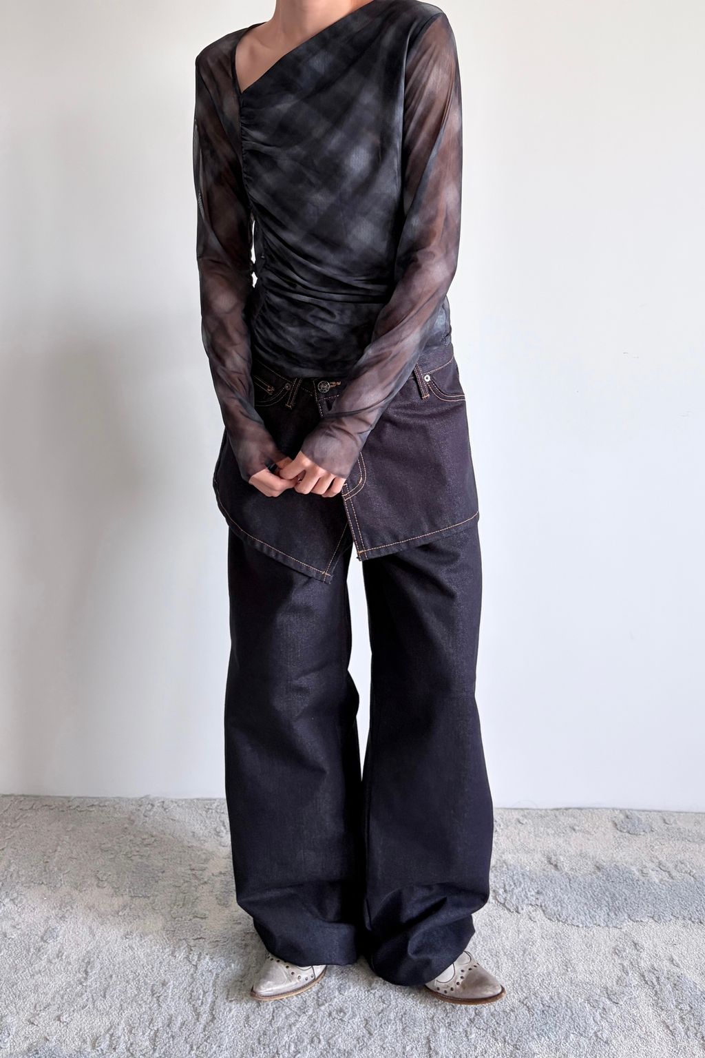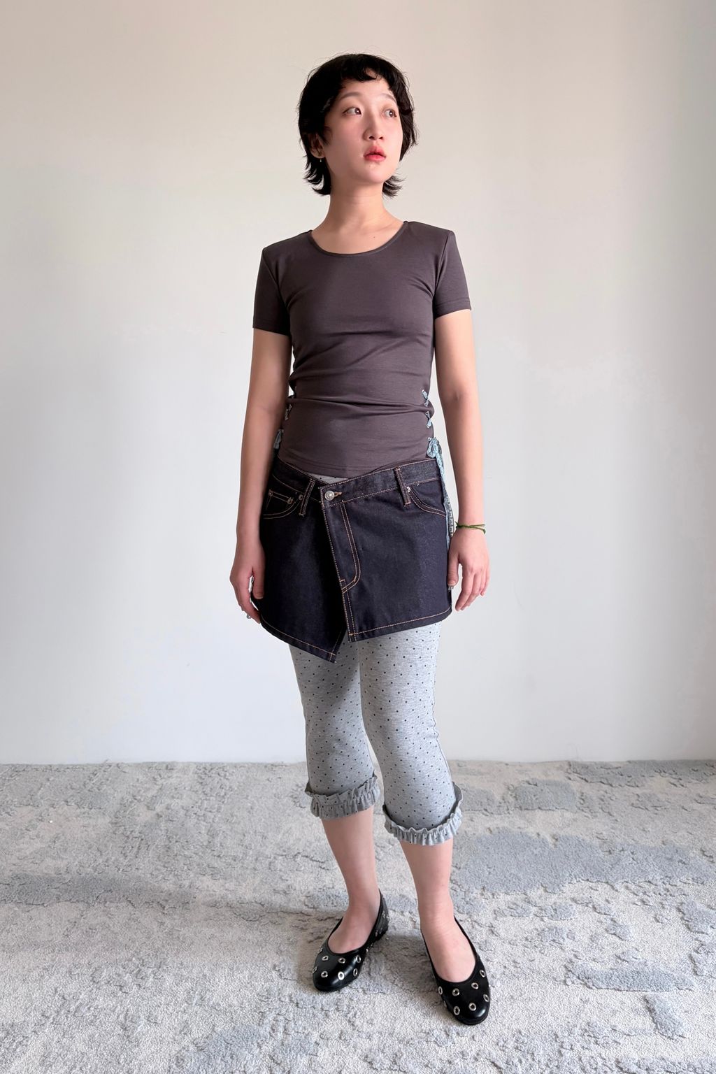 / 韓國設計師品牌 / 抽繩設計修身牛仔長褲&牛仔裙 ( Set )