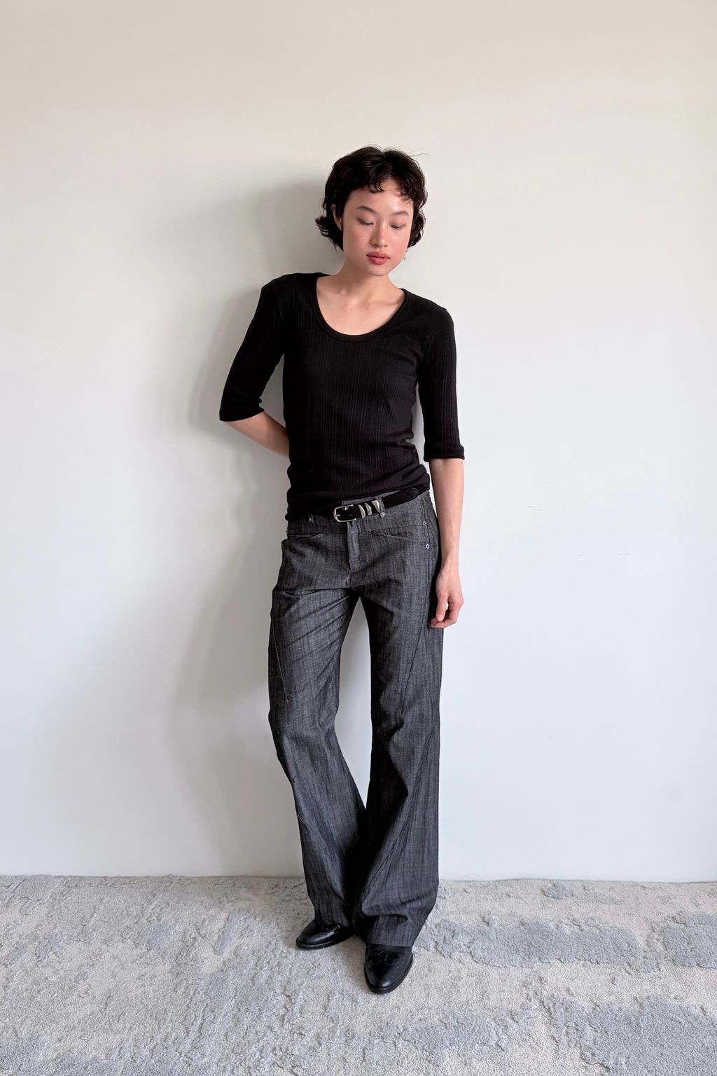 / 韓國設計師品牌 / 不規則銀塊設計皮帶