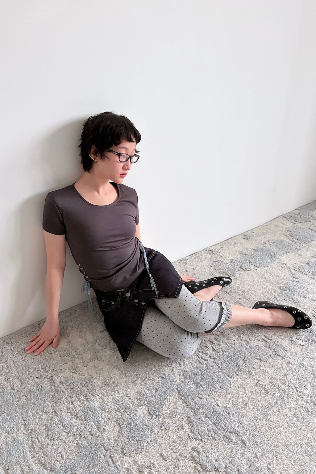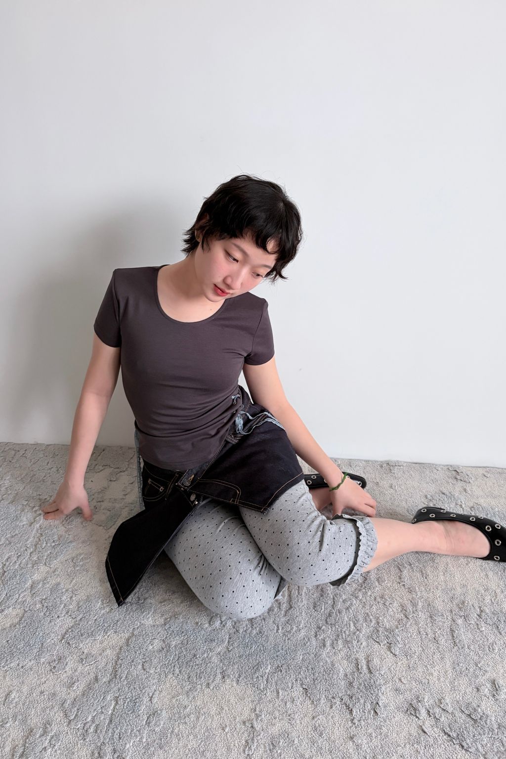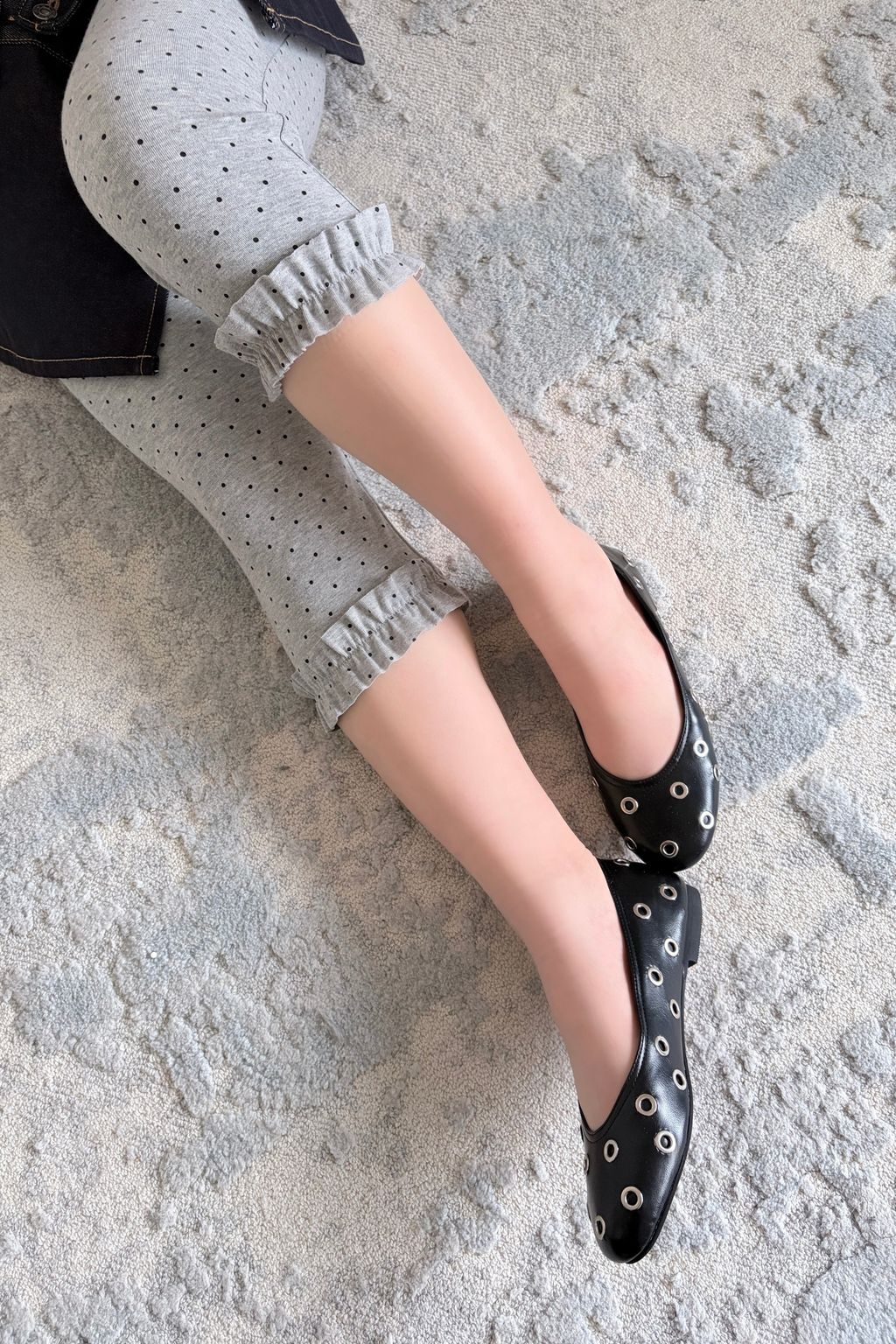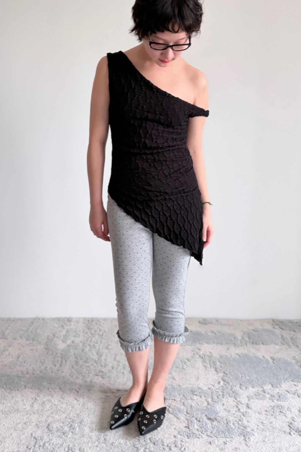 / 韓國設計師品牌 / 捲邊七分休閒褲 - 黑色 / 灰底黑點點