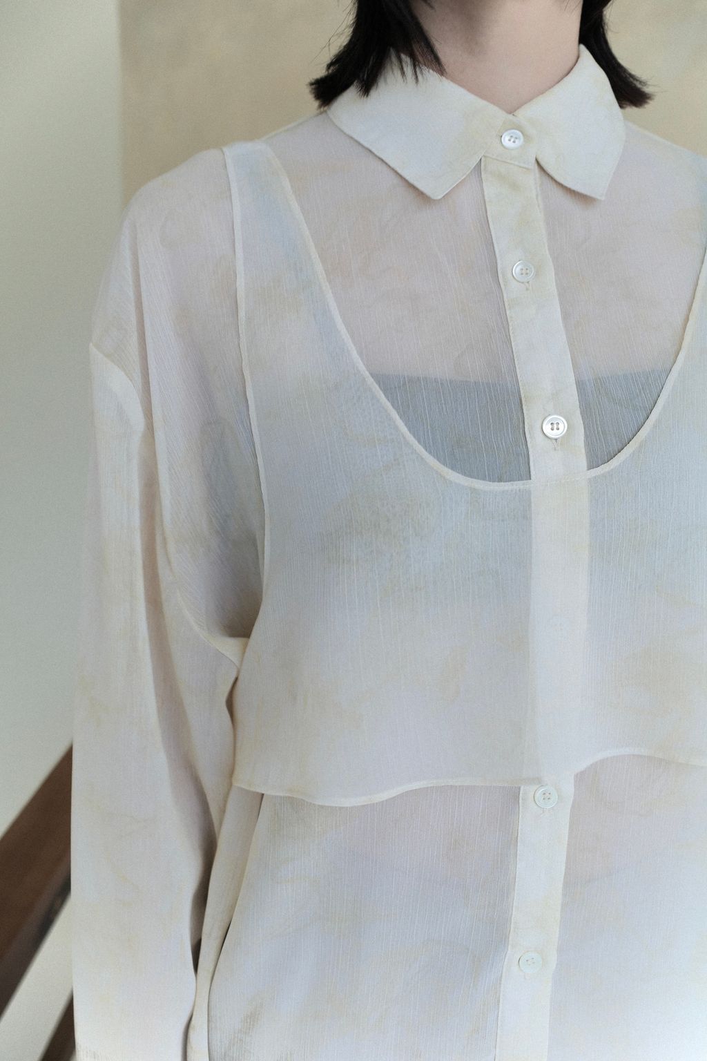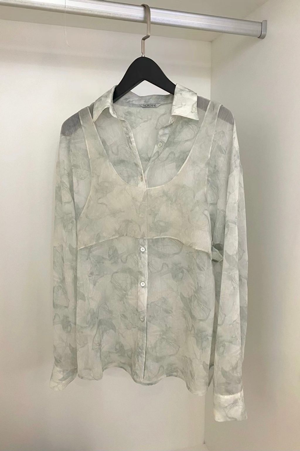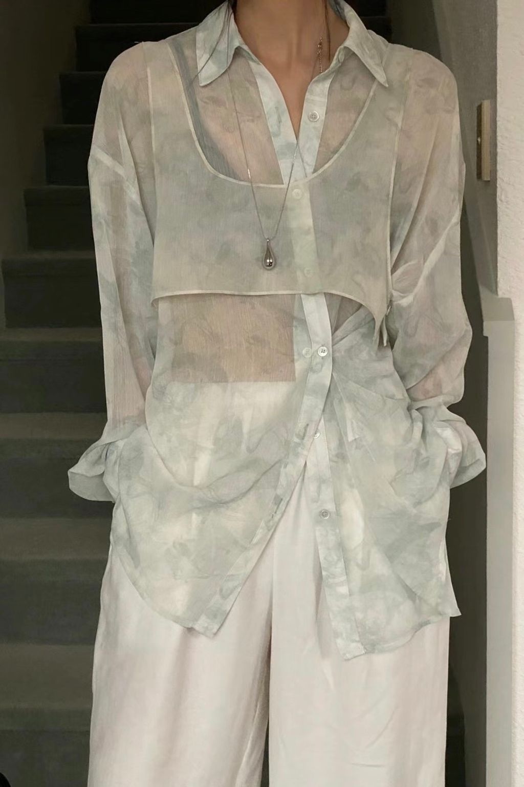 / 韓國設計師品牌 / 兩件式暈染透膚襯衫 - 鵝黃色 / 青花瓷綠